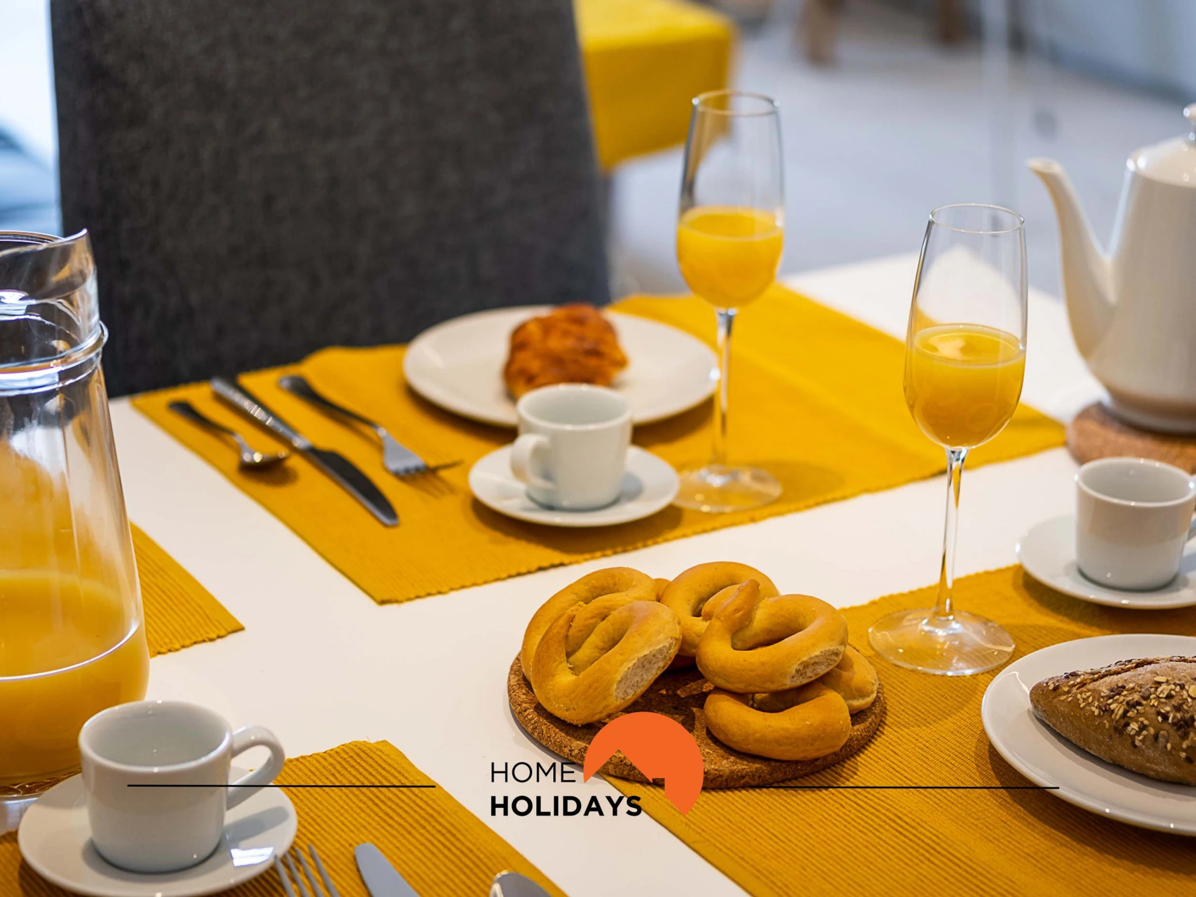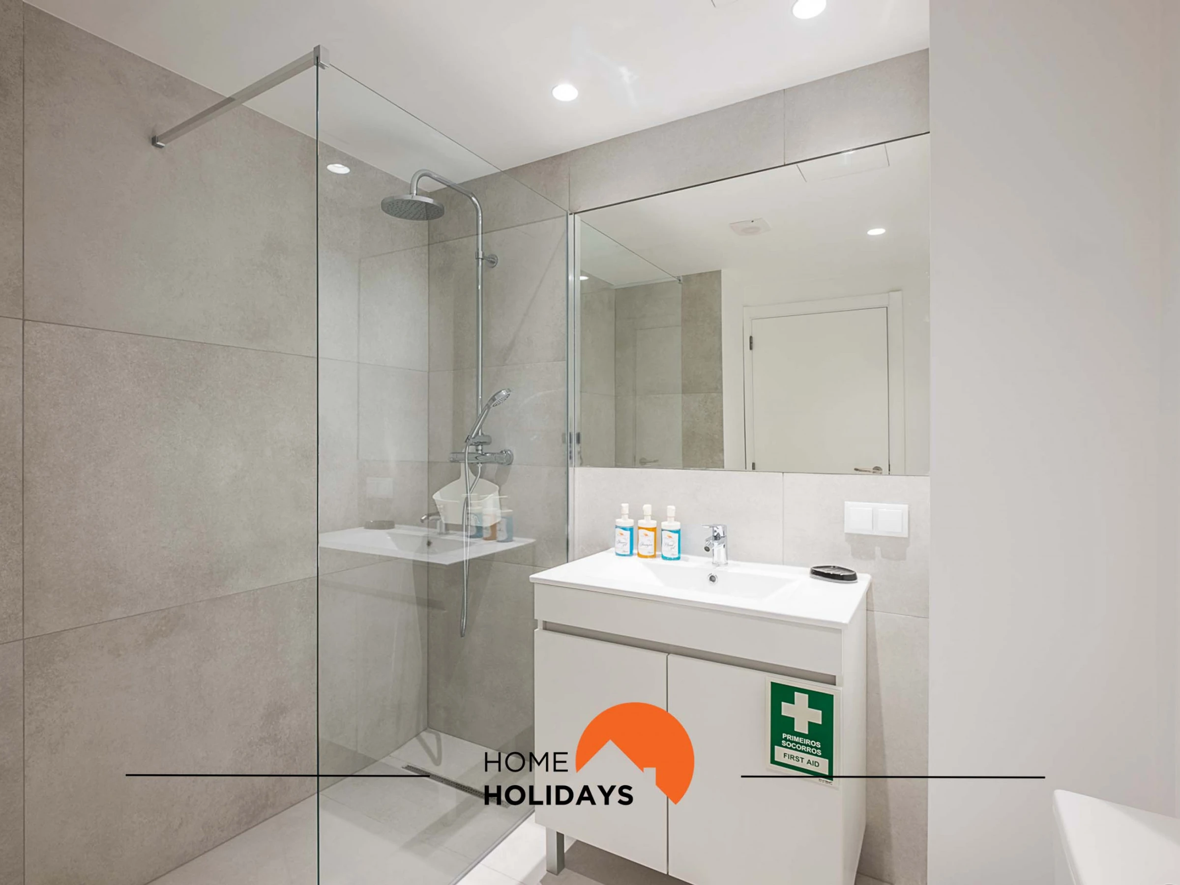 Sleeping up to 4 people, the flat has 1 bright bedroom with a double bed, an open-plan kitchen equipped with a microwave, coffee machine and essential utensils. Air conditioning and free Wi-Fi are available, ensuring comfort and convenience. The spacious living/dining room offers a relaxing spot with comfortable sofa, TV and an inviting balcony with outdoor furniture, ideal for meals and moments in the sun.