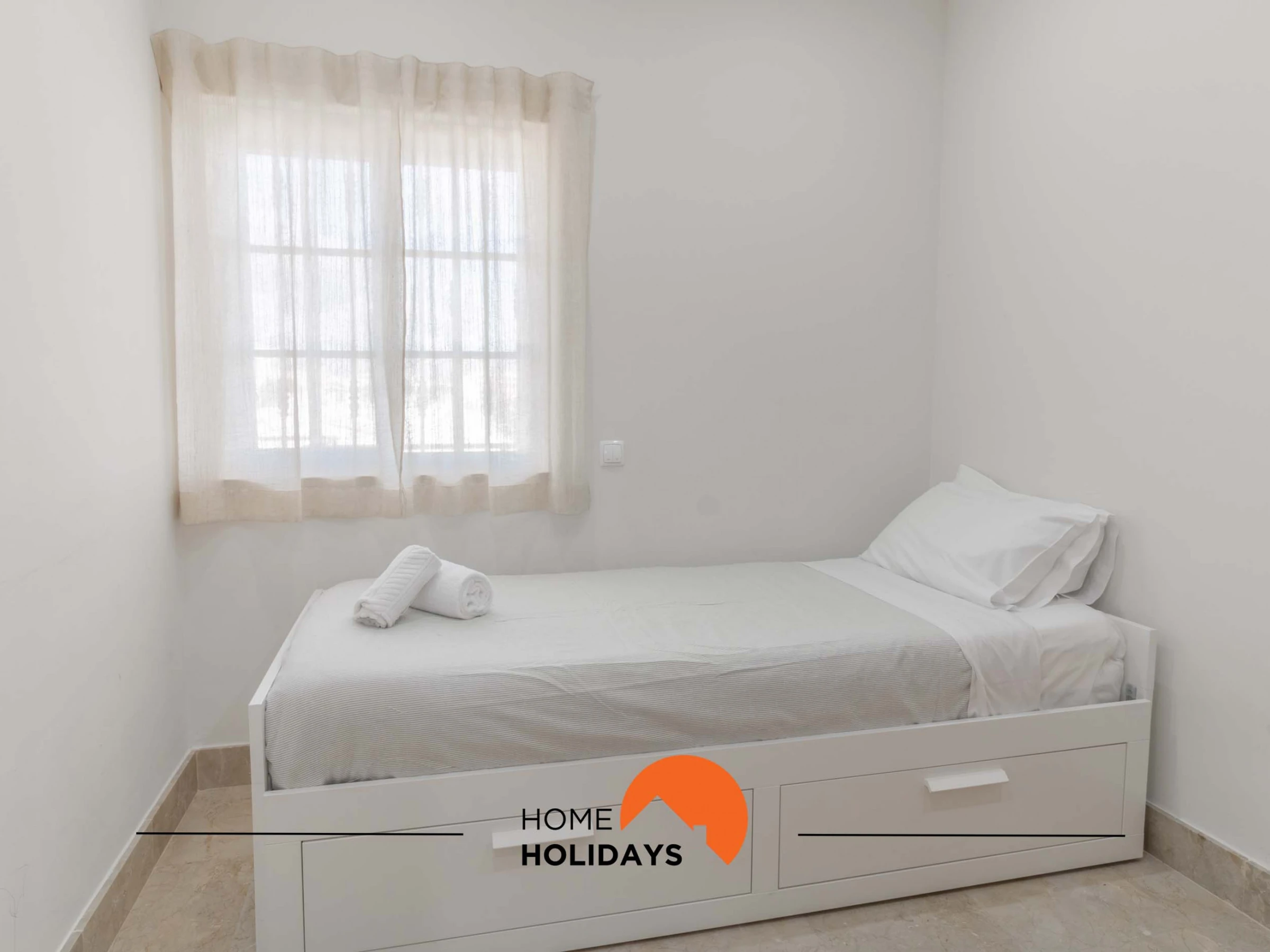 The living room has a TV, free Wi-Fi, dining area and air conditioning. With capacity for 4 people, the flat offers two bedrooms, one with a double bed, the other with a single bed and a sofa bed.