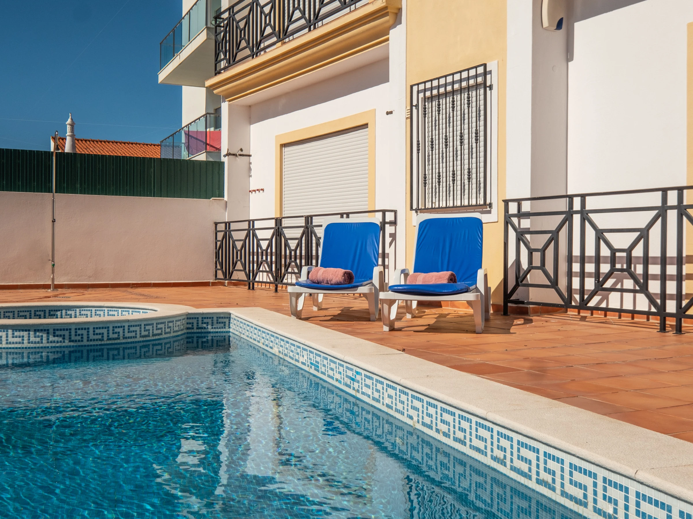 We present a magnificent flat on "Rua Almeida Garrett, 19" in Albufeira, with swimming pool, just a few steps from the beach and the lively Rua da Oura. Just 20 minutes walk from the city centre, where you will find several shops, restaurants and bars with live music.
