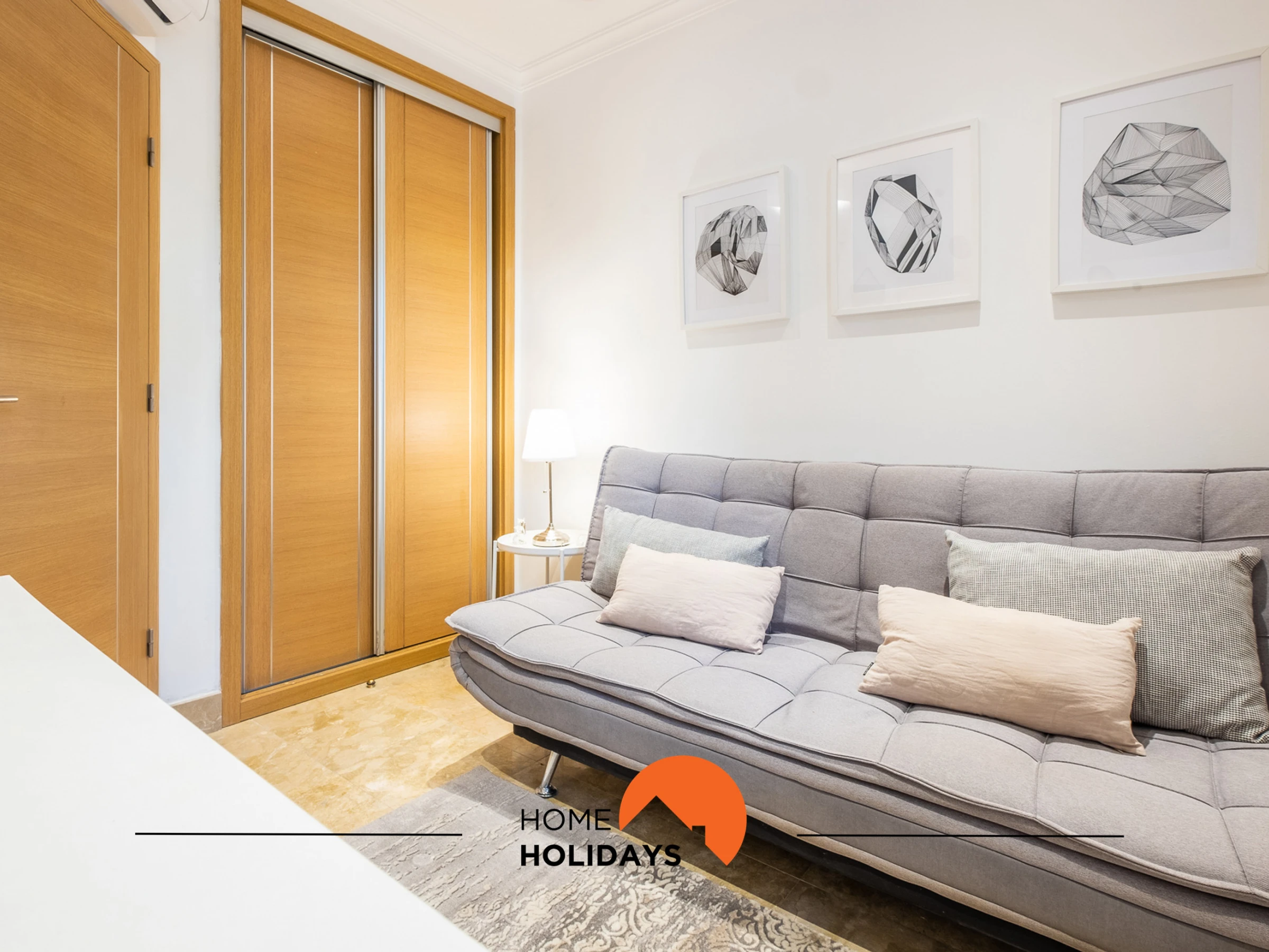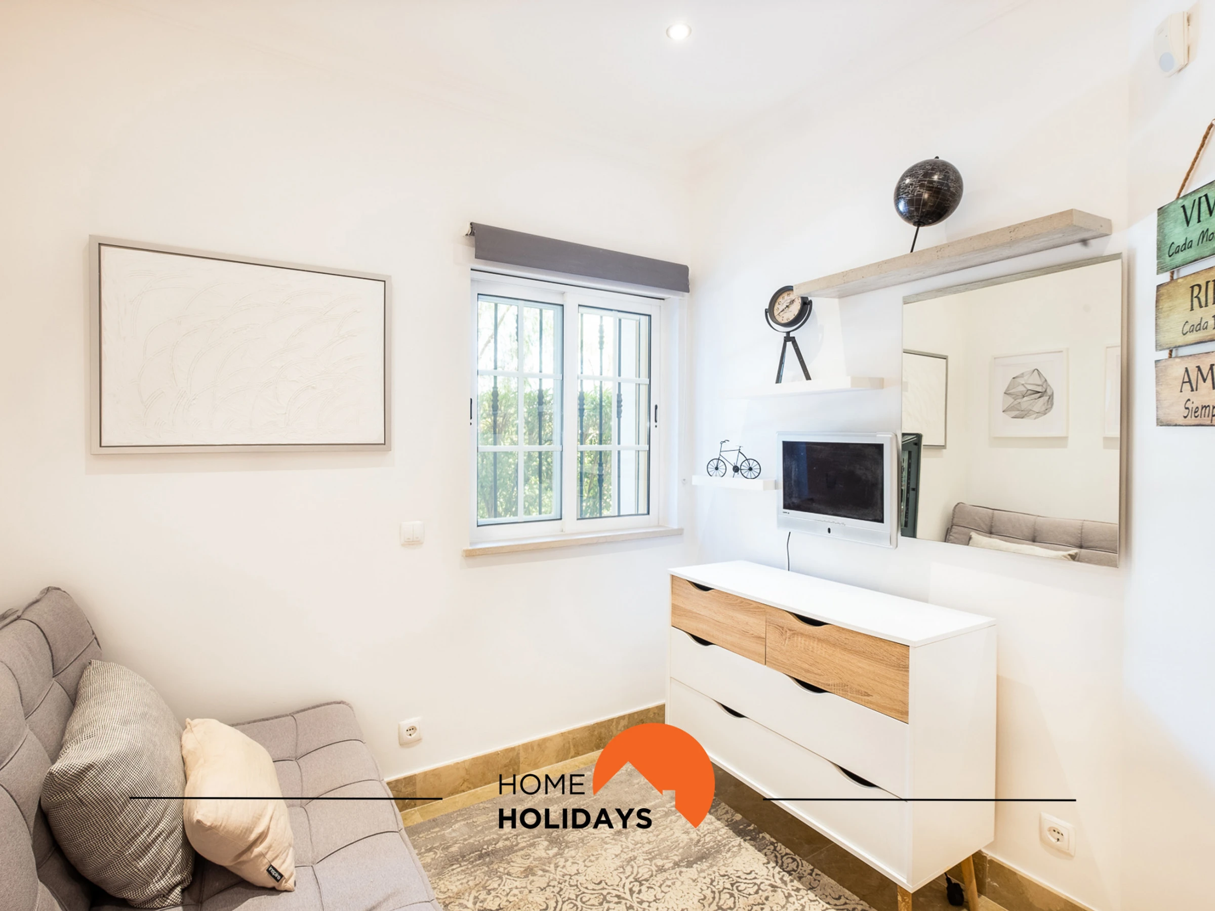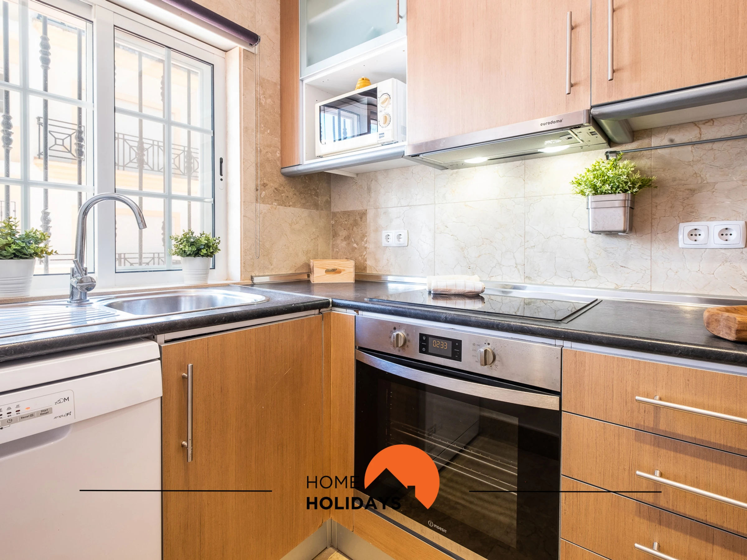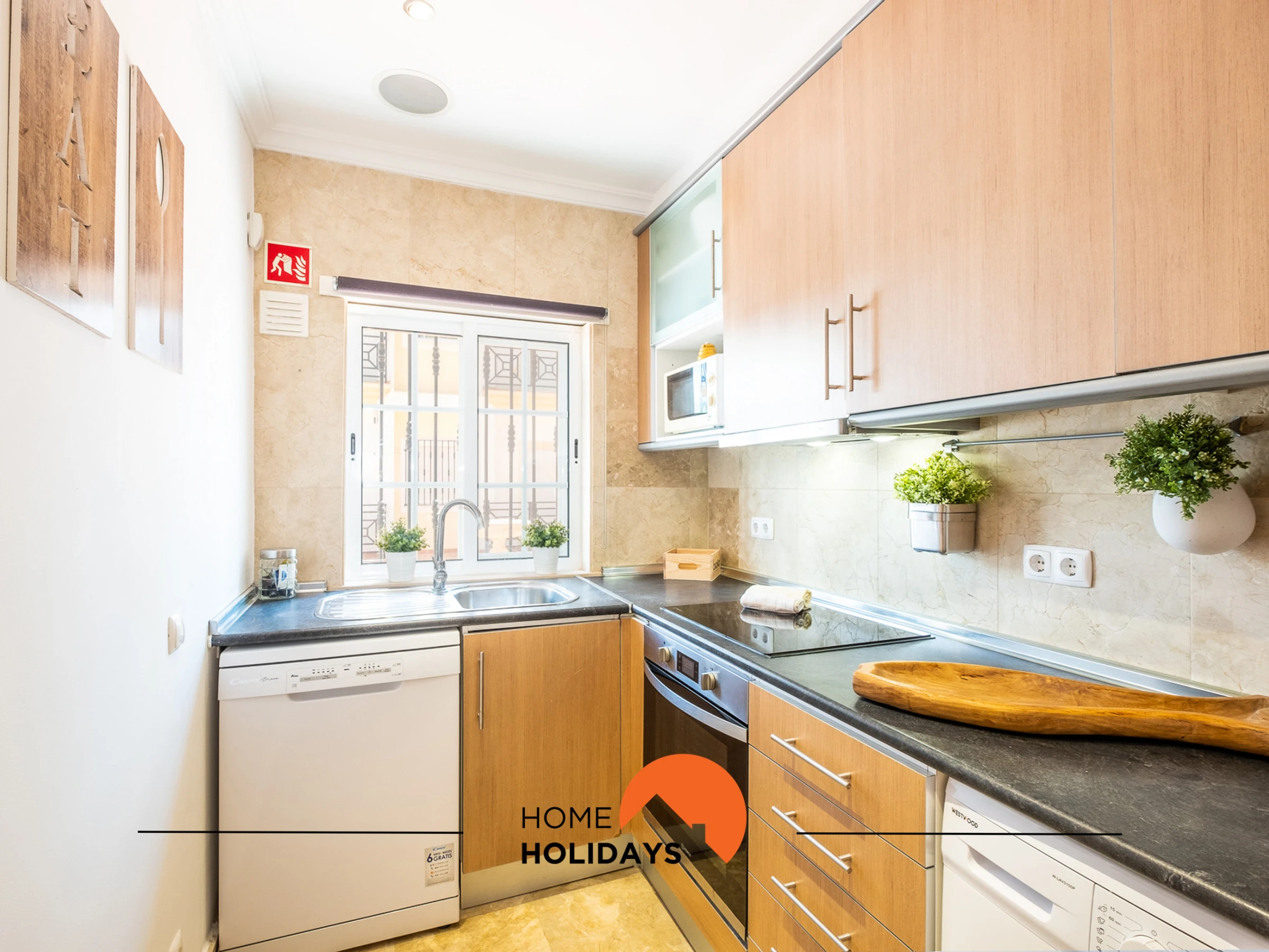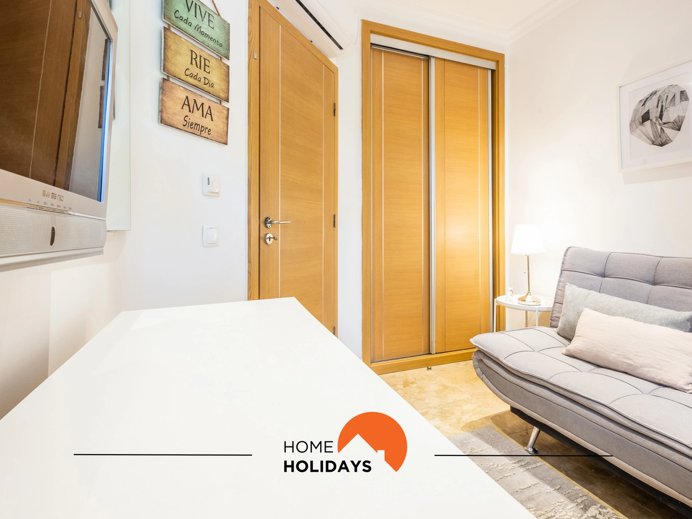The fully equipped kitchen includes washing machine, dishwasher, oven, hob and all necessary utensils. The spacious living room has a TV, free Wi-Fi, dining area and air conditioning. With capacity for 4 people, the flat has a bedroom with a double bed and another with a double sofa bed.