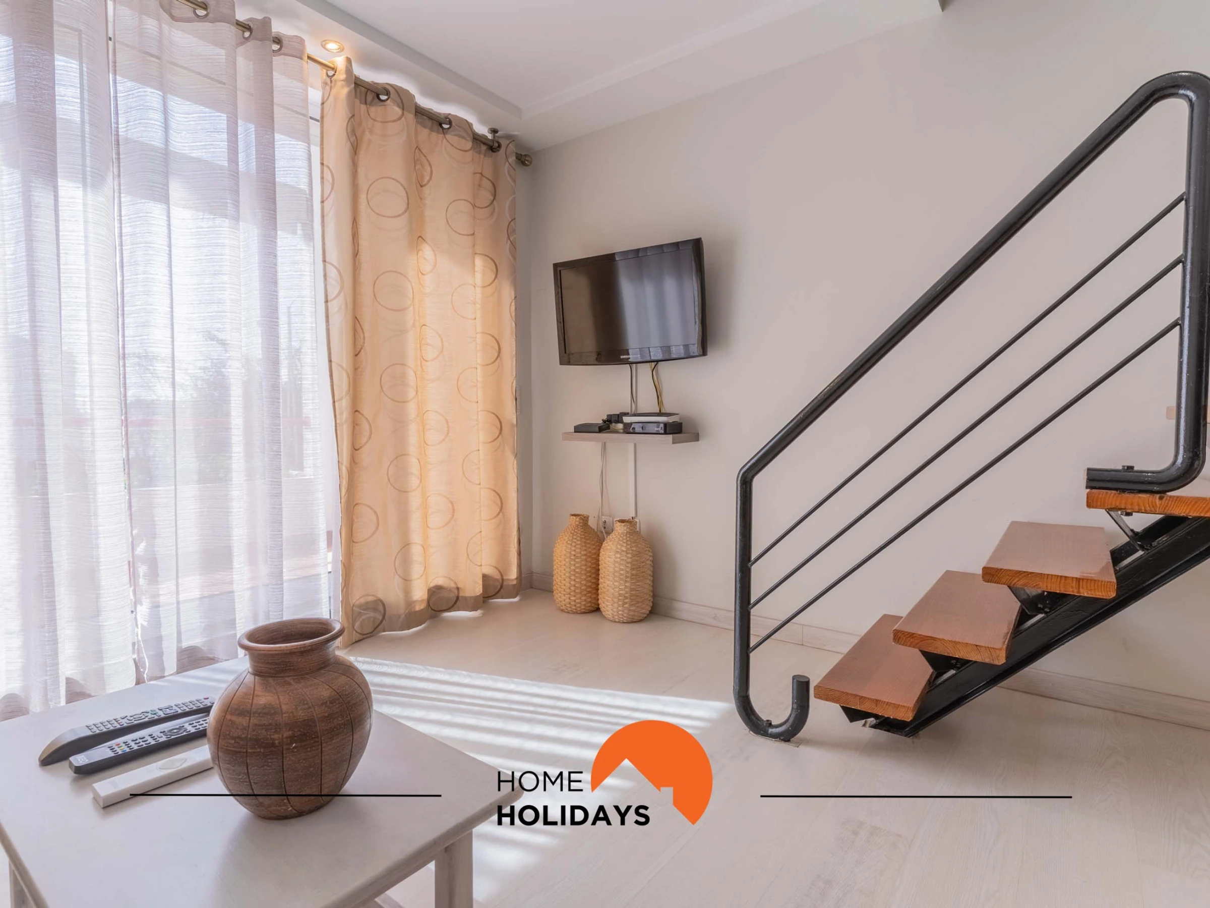 The kitchen is equipped and the living room has a TV, dining area and free Wi-Fi. With 2 bathrooms with shower and a spacious furnished balcony for relaxation.
