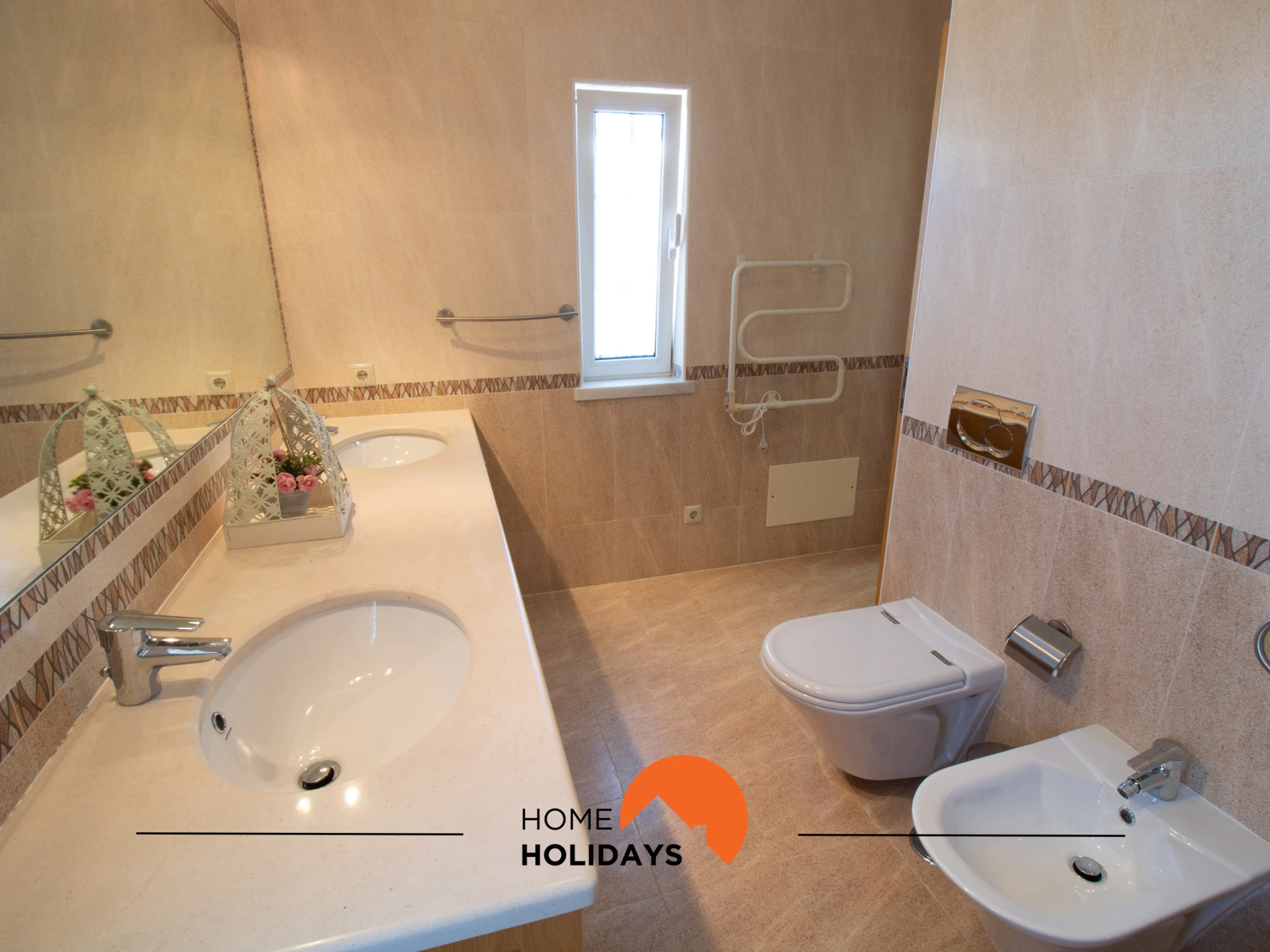 The 5 bedrooms are thoughtfully arranged, with three featuring double beds and two with twin beds, offering maximum comfort and privacy. Three of the five bedrooms are equipped with air conditioning. The villa has 4 bathrooms—two with bathtubs and two with showers—providing a variety of options for your comfort and well-being.