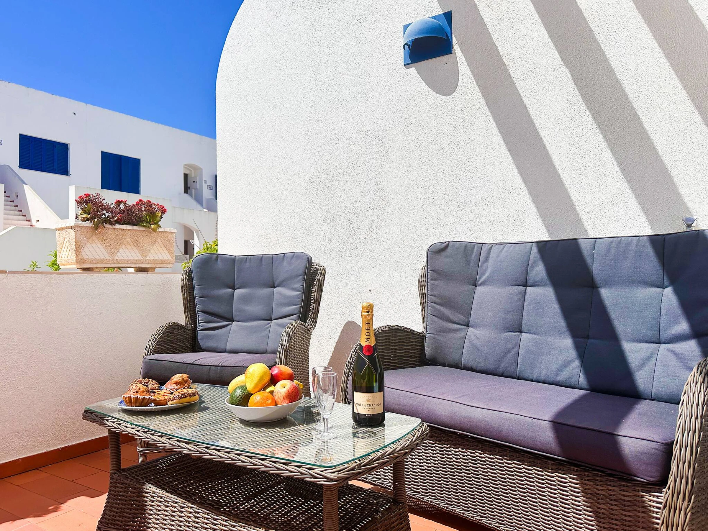 Nicely furnished traditional Algerian condo, with an Ocean view from the sunny terrace, providing quality accommodation, peace & privacy. The home is located in the private Alto do Moinho complex truly on top of Albufeira with Tennis & Football court, gardens, pool, own café and WindMill fine dining restaurant overlooking the Town & magnificent coastline. Utilities, Cable TV, WiFi services are included. Albufeira Old Town, Beaches, Marina, restaurants, bars are within 8-15 minutes walk.