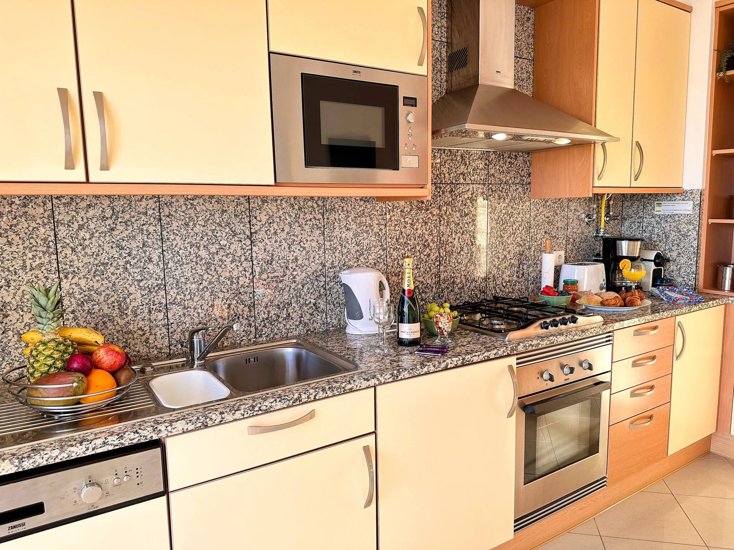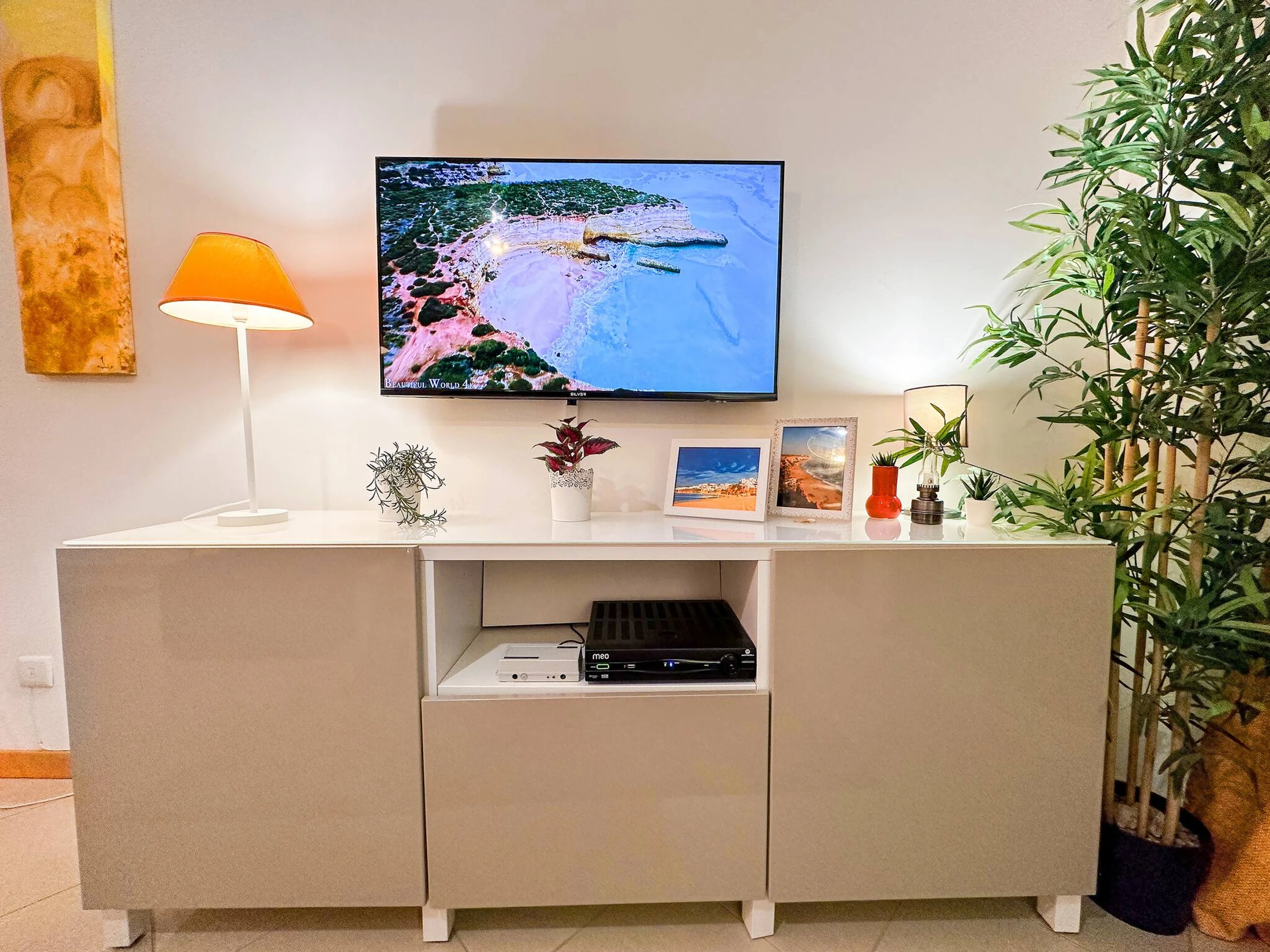The apartment is fully equipped with modern amenities, including air conditioning, cable TV, high-speed Wi-Fi, and all essential utilities. Private parking is available both in a dedicated garage and directly in front of the home within the estate.