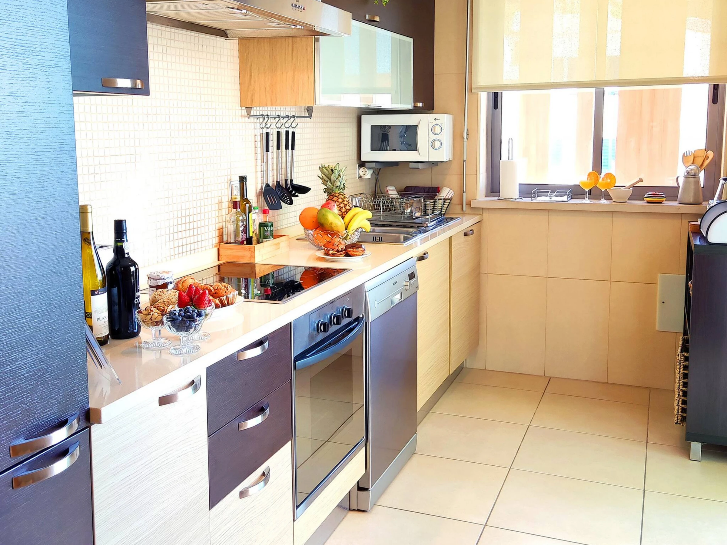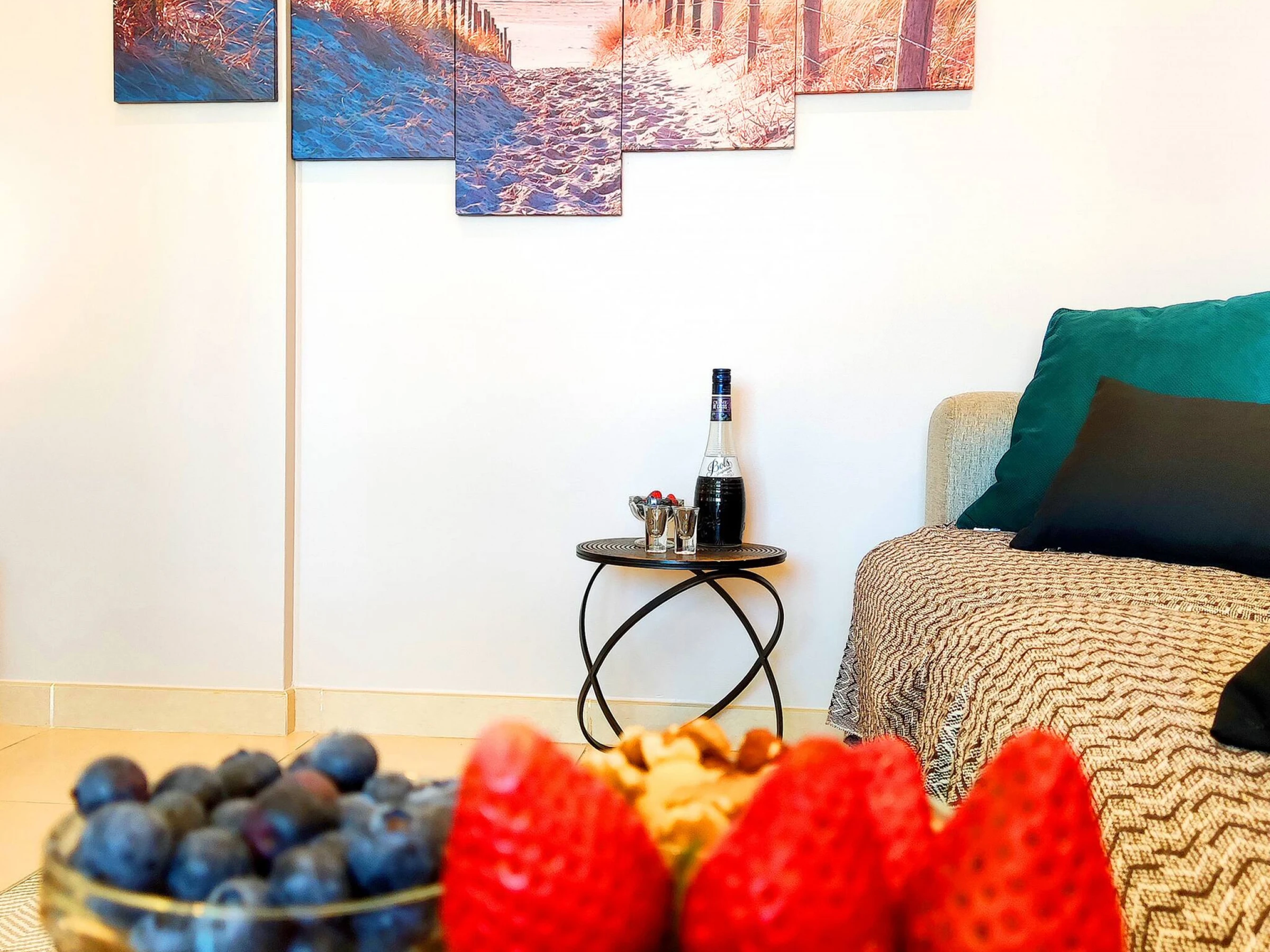 The apartment is fully air-conditioned and exquisitely equipped with a bedroom, including a double bed. The living room is spacious and has dining facilities, as well as a comfortable sofa to relax and/or use as an additional extendable bed. It has high-speed fibre optic internet, so you can stream your favourite Netflix movie on an excellent 50-inch smart TV.
