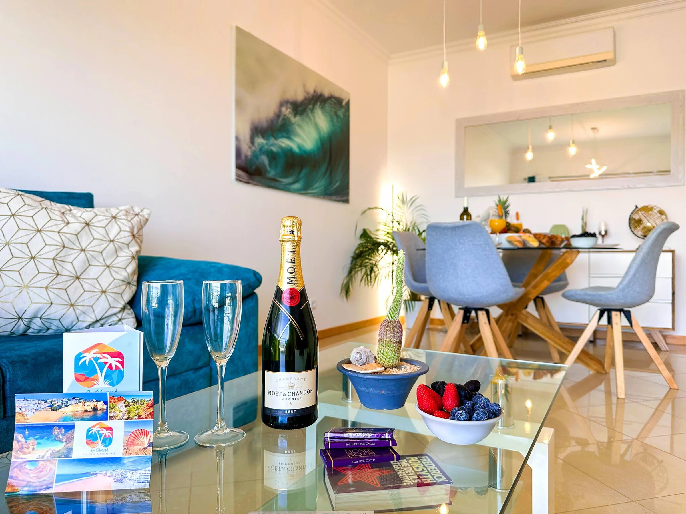 The property is a short walk (8-10 minutes) from Albufeira's Historic Centre, the Marina, Peneco Beach and a variety of shops, restaurants and bars. Despite its proximity to all the entertainment, the apartment is located in a quiet area with stunning views of the Atlantic Ocean - ideal for relaxing after a day of exploration.