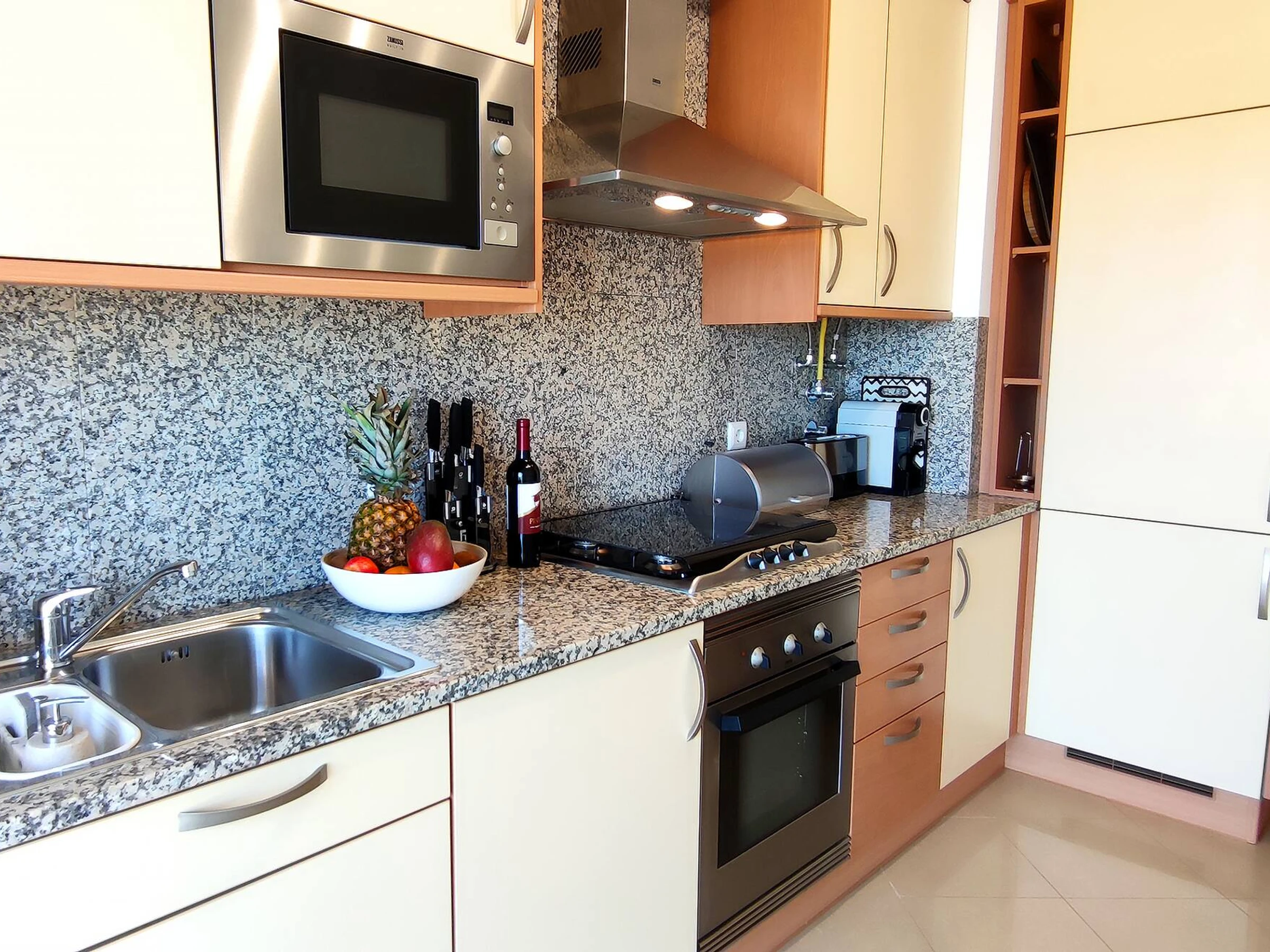 Enjoy your meals on the private balcony while appreciating the sunset and ocean views. The apartment includes private underground parking, high-speed Wi-Fi, air conditioning and all essential amenities to ensure a comfortable stay.