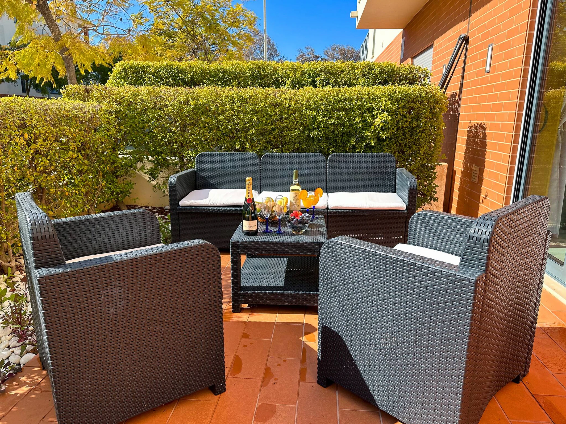 Stunning 2 bed/2 bath Luxury Ground Floor Apartment in a private and central location inside the Parque da Corcovada resort, beautifully and luxuriously furnished and equipped, large lounge/dinner, fully equipped kitchen, front and rear large patios, free cable TV, WiFi & Bluetooth speaker, direct access to pools and gardens, offers peace and privacy, short walk to several beaches, myriad of restaurants, strip, children's playground and crazy golf course.