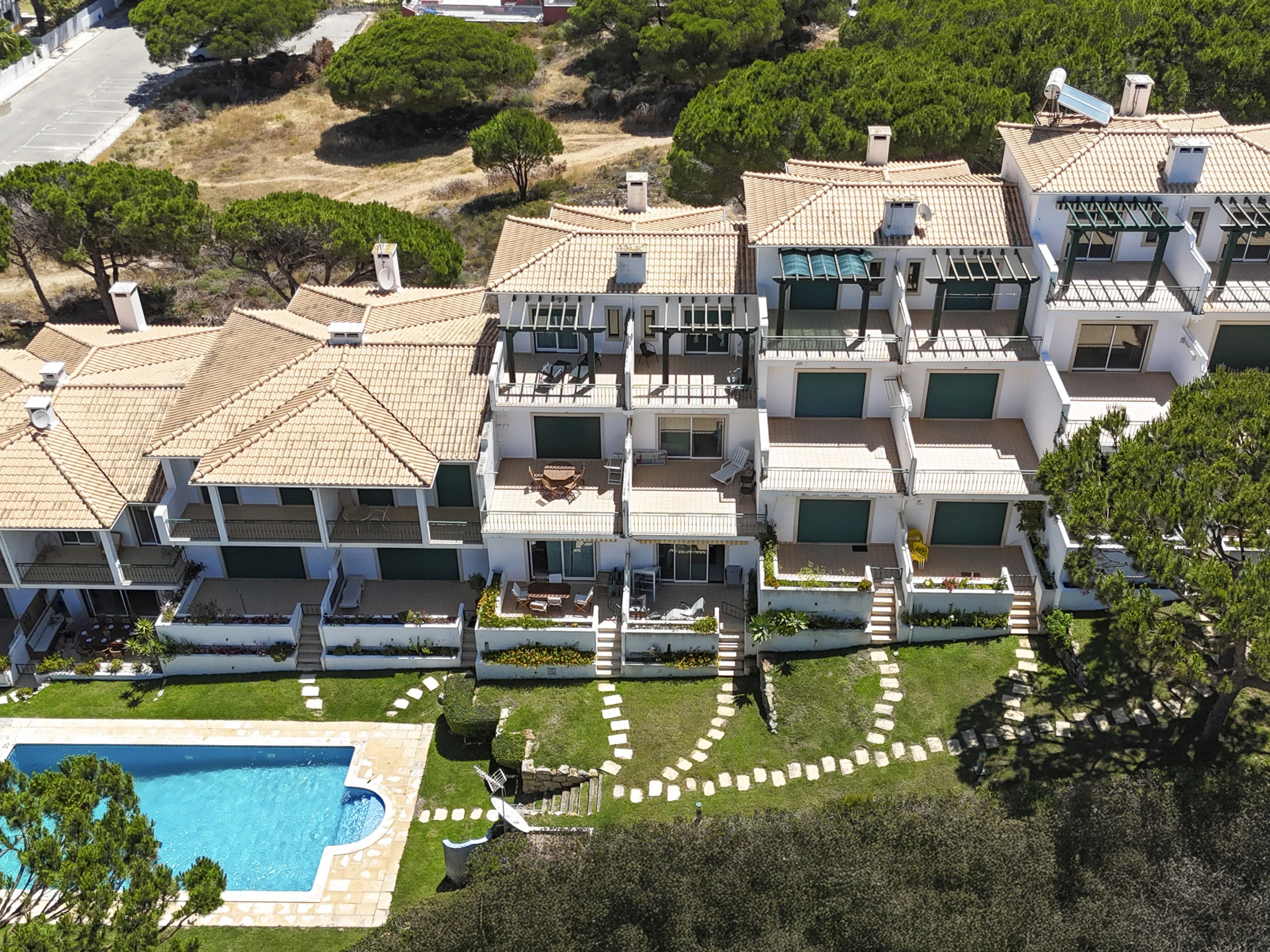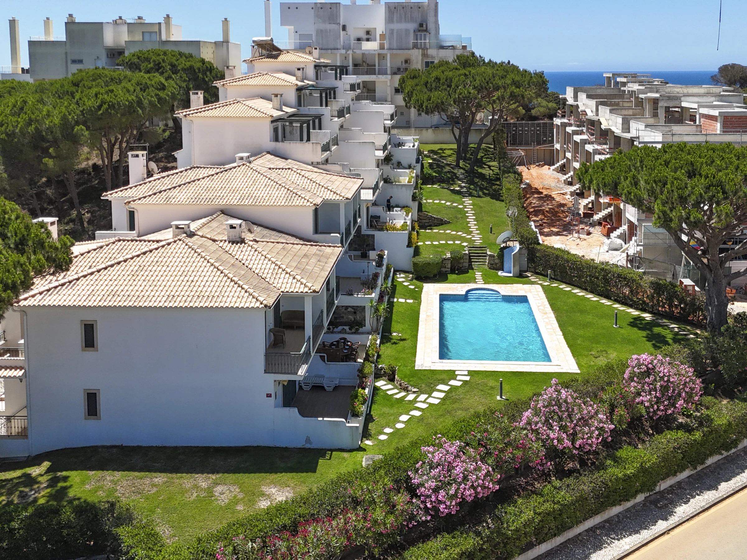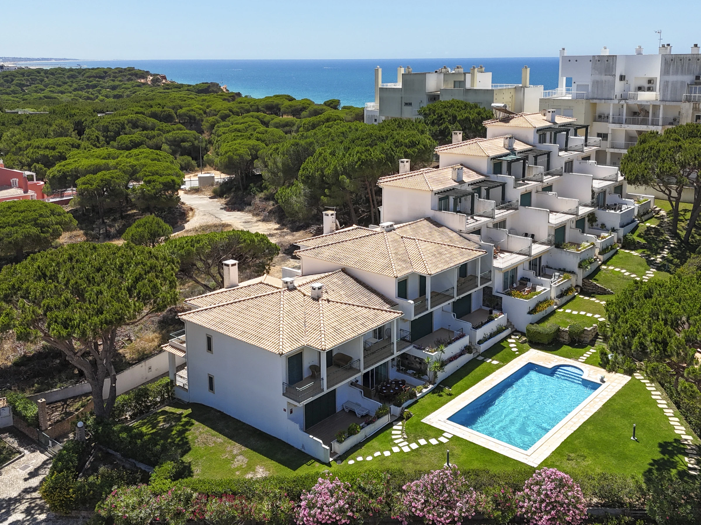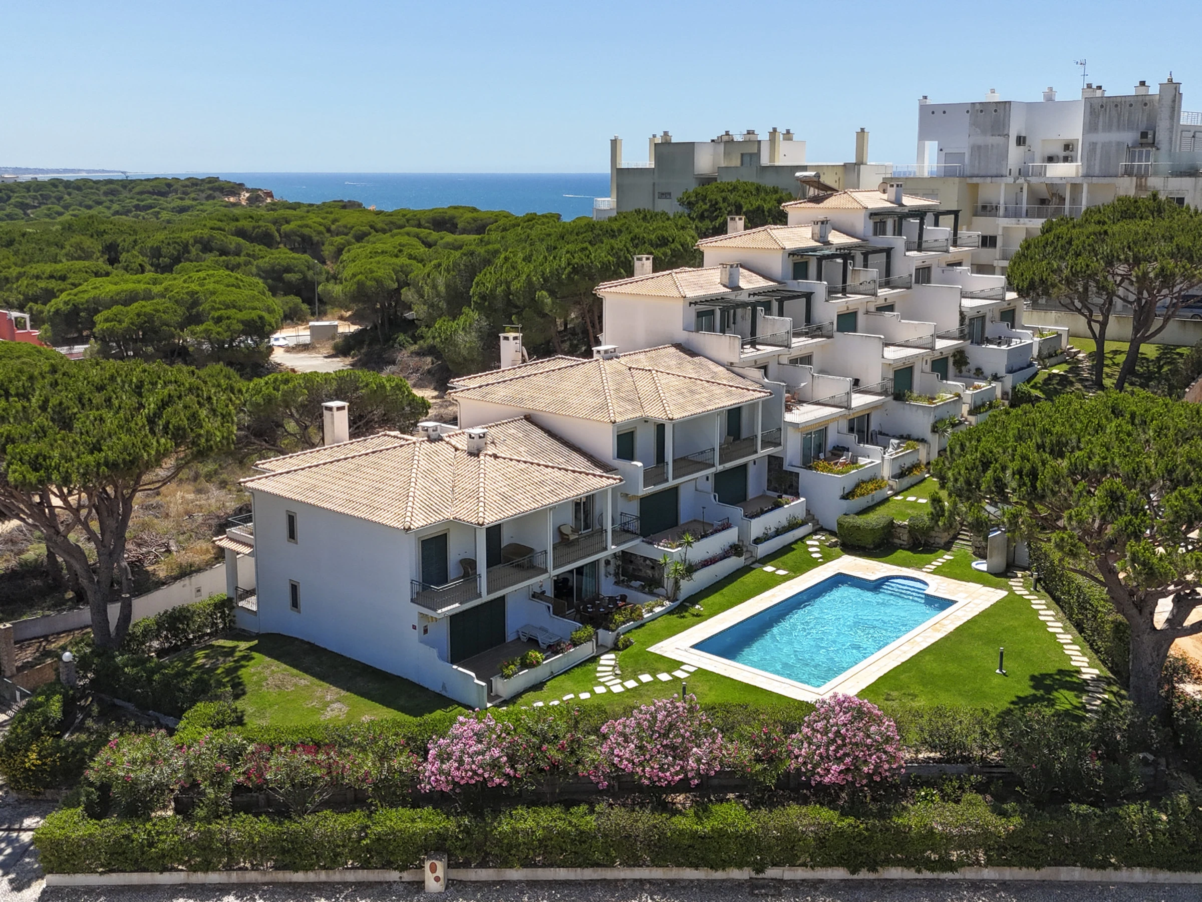 This town house is in a condominium with access to lovely communal gardens and swimming pool and is literally 300 mts from the golden sandy beach of Falesia. There are 10 properties which share access to the communal pool and gardens.
