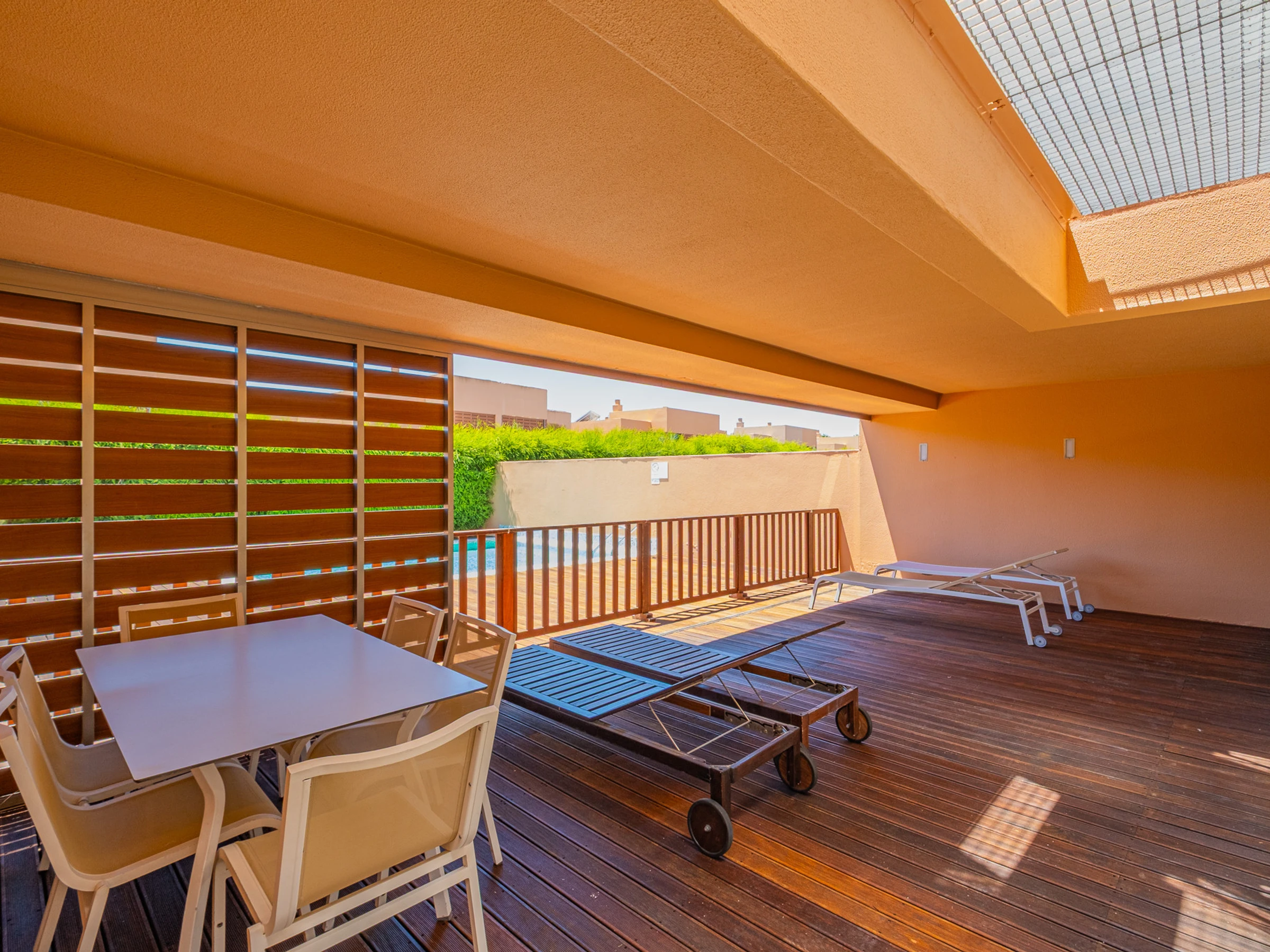The accommodation is equipped with the following items: garden, garden furniture, fenced garden, 20 m² terrace, washing machine, dryer, barbecue, iron, safe, internet (internet cable), hair dryer, balcony, tennis court, spa, swimming pool communal, heated swimming pool private, covered parking in the same building, 3 TVs, satellite tv (Languages: Spanish, English, German, Dutch, French, Russian, Swedish, Norwegian).