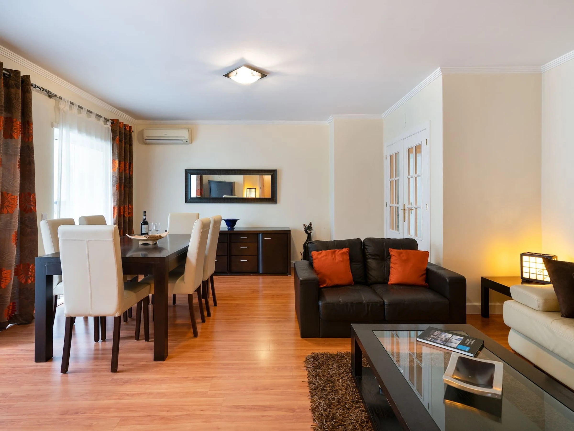 Cozy and modern apartment located in the center of Albufeira, close to the romantic historic center and the beach. The accommodation is about 120 m2 and has been completely renovated and decorated with refinement. 2 bedrooms, one of them a suite with air conditioning, a spectacular living room and a living room also with air conditioning. Modern and fully equipped kitchen. Smart TV - HDMI, Internet Fiber. Balcony with outdoor furniture and a private covered parking for 1 car. The apartment is on the second floor of a residential building with an elevator.