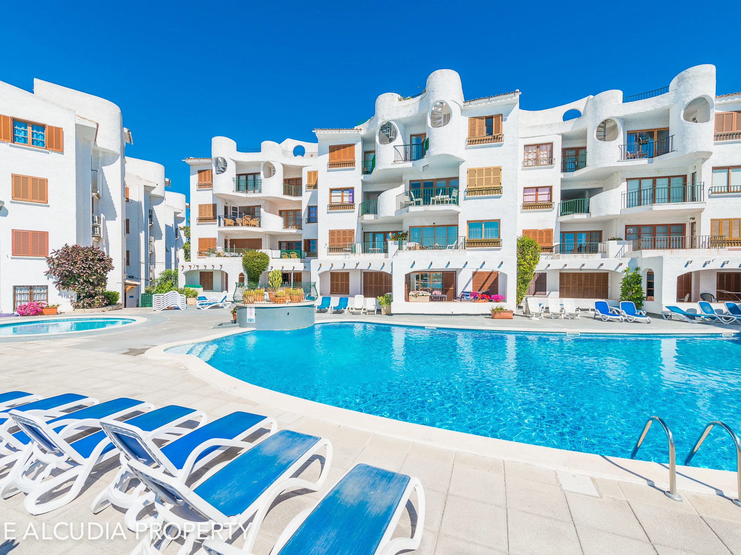 Welcome to the beach! The apartment is located directly on the magnificent sandy beach of Port d'Alcudia. Here, unforgettable vacations await you, where you can enjoy both the impressive beauty of the sea right at your doorstep and the proximity to the mountains with optimal conditions for outdoor sports such as cycling, hiking, climbing, and golf. This apartment with modern and tasteful decor has an area of 57 m² and is located directly on the beach with sea views. With a beautiful living-dining room, kitchen, and 2 bedrooms, it comfortably accommodates 4 people and is fully equipped. The accommodation consists of 2 bedrooms, two bathrooms, and an open kitchen with a living-dining room, satellite TV, WIFI, air conditioning, and a terrace with beautiful sea views. The complex has 2 large community pools, one of them for children, with direct access to the large sandy beach. It has a green area for children to play. Very nearby, there is a supermarket with fresh bread every day and excellent restaurants with a cozy terrace to enjoy fresh fish or any other Mediterranean dish.