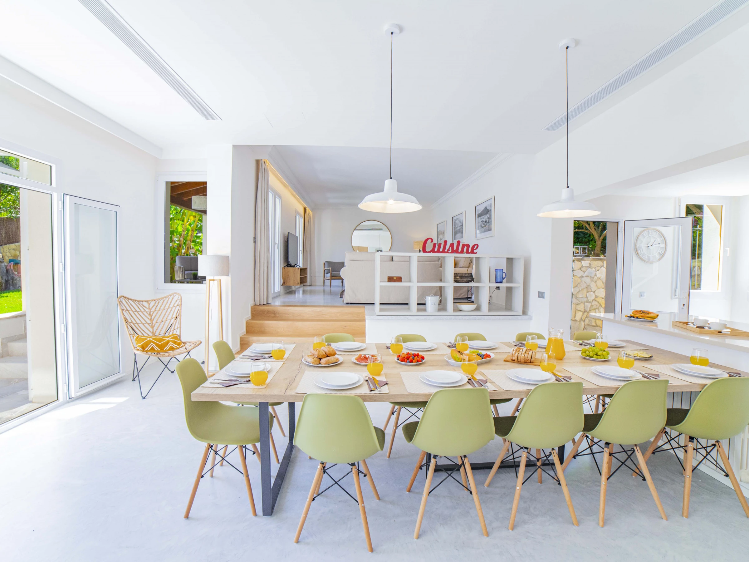 The villa is located a very short distance from the sea, in a quiet and peaceful area. The perfect place for a relaxing summer getaway in the heart of the Mediterranean. Ideal for a large family or group of friends, this modern [hidden] square meter villa is located in the exclusive area of ​​Alcanada, just 2 minutes from the beach and near the famous Alcanada Golf Club, voted the best in Europe in [hidden] by the prestigious website [hidden]