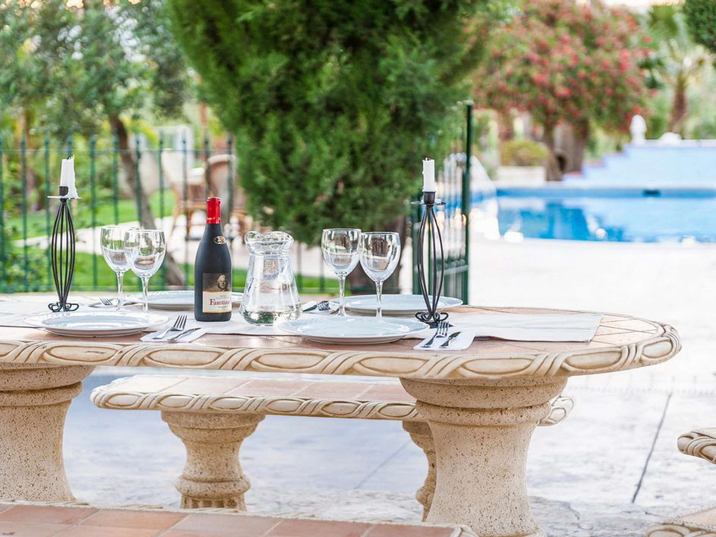 Villa Sunset is a large property which looks like an Oasis. The huge garden has plenty of glamour and luxury with palm trees, fruit trees, plants, flowers (there is even a rose garden) is simply impressive. The large swimming pool of 10 x 12 meters, plus a baby Pool, with many sunbeds, outdoor table and chairs make you feel like you are in the heaven. If that is not enough, you have the private Tennis Paddel Court with Mini Basketball equipment and you also have table tennis (ping pong) at your disposal. All this, in a natural setting that promises absolute tranquillity, in a peaceful and quiet atmosphere, plenty of sun all along the day, from sunrise to sunset.