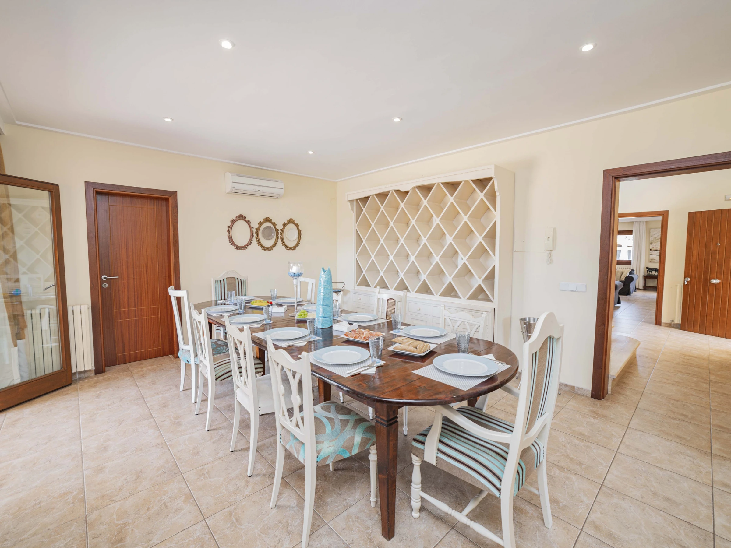 The house has 2 floors, on the main floor at the entrance there is a large hall chaired by the staircase that gives access to the first floor. In the left area we find the large kitchen with the dining table for 12 people, and the garage where the laundry room is also located. Next, there are two rooms with TV, bathroom and access to terraces. In the area to the right of the entrance we have the spacious living room with 4 sofas, an armchair, computer, wifi, tv, satellite, play station, dvd ... and with access to the main terrace next to the incredible pool, bar, barbecue and sauna.