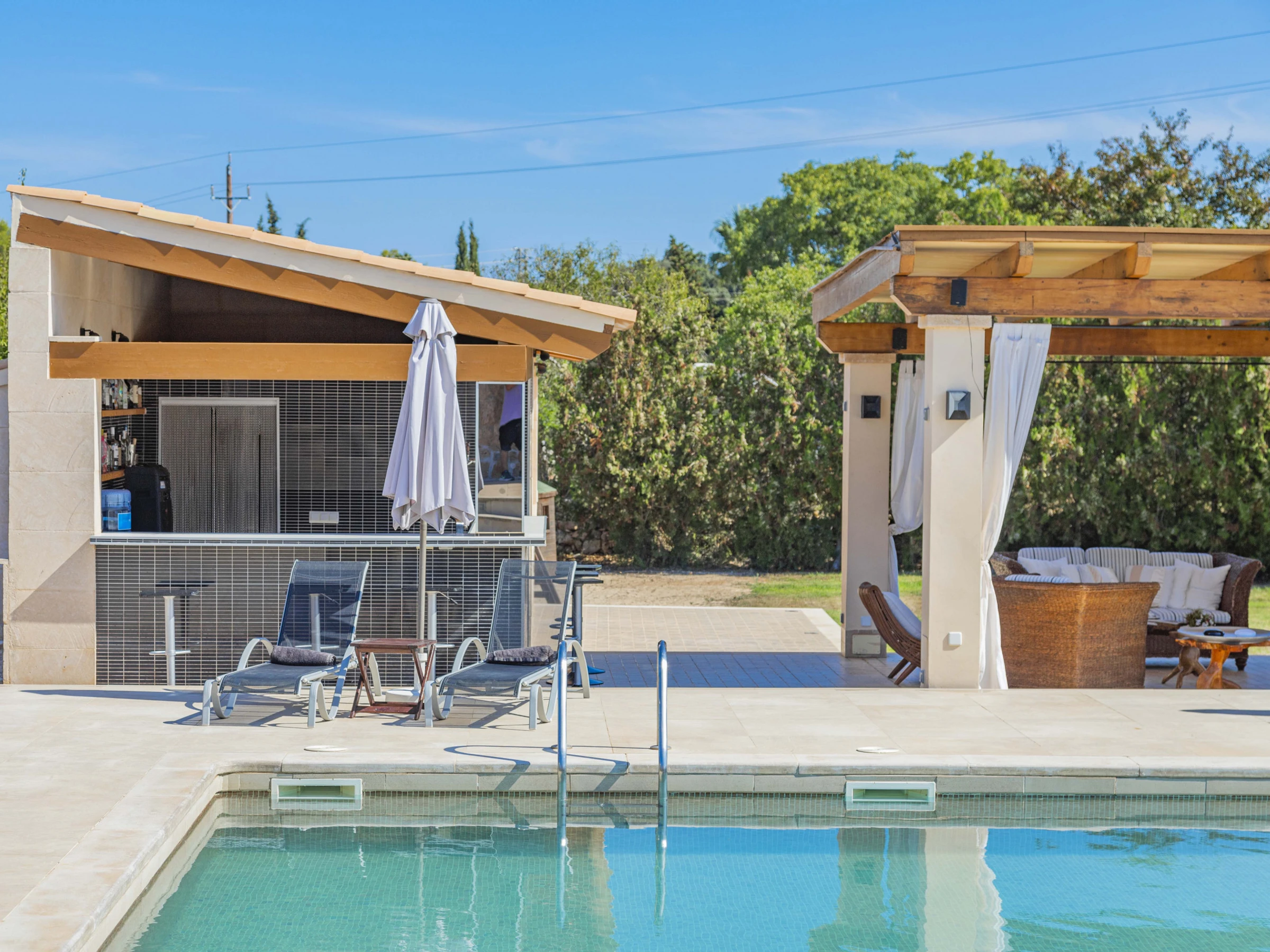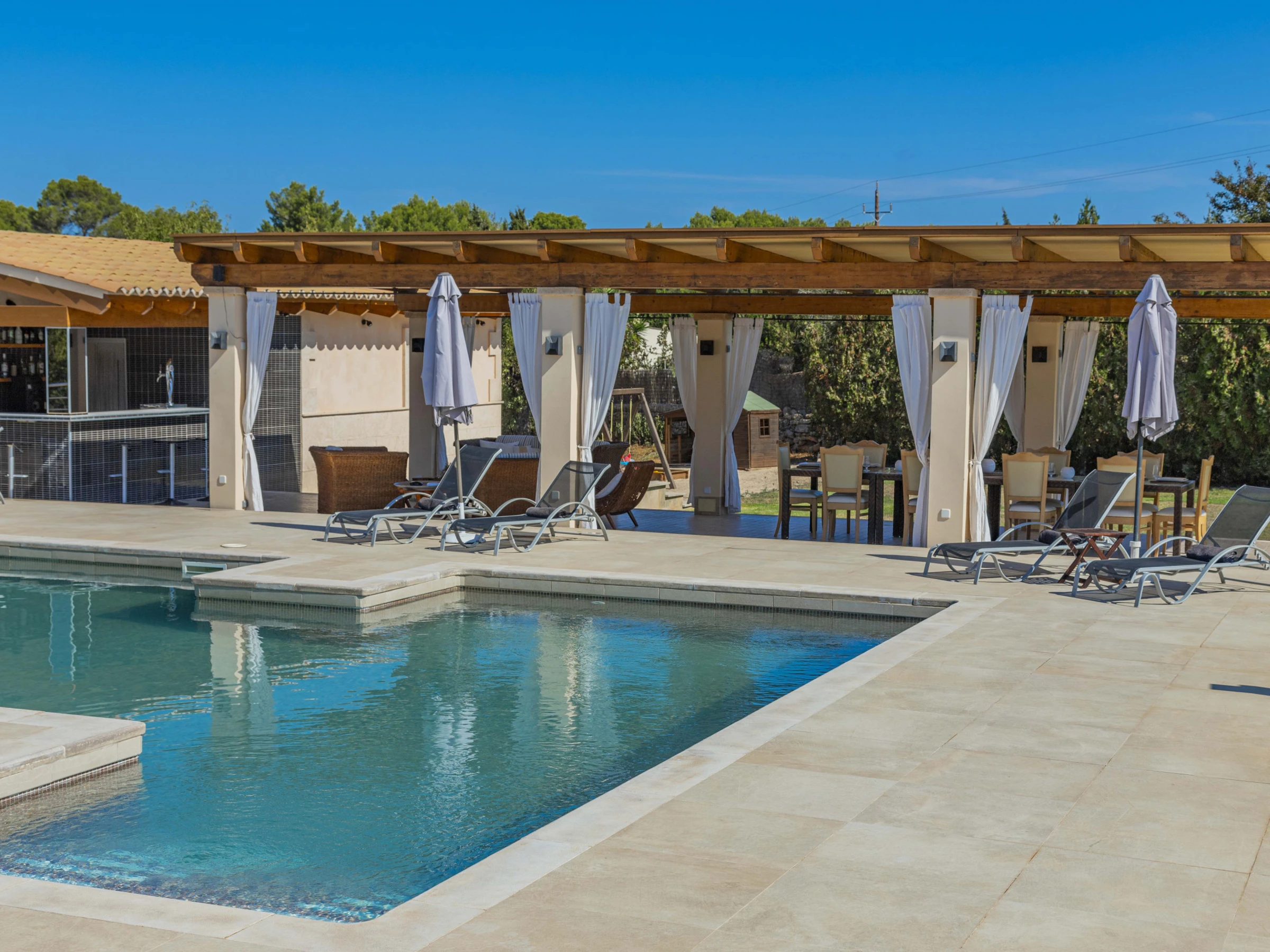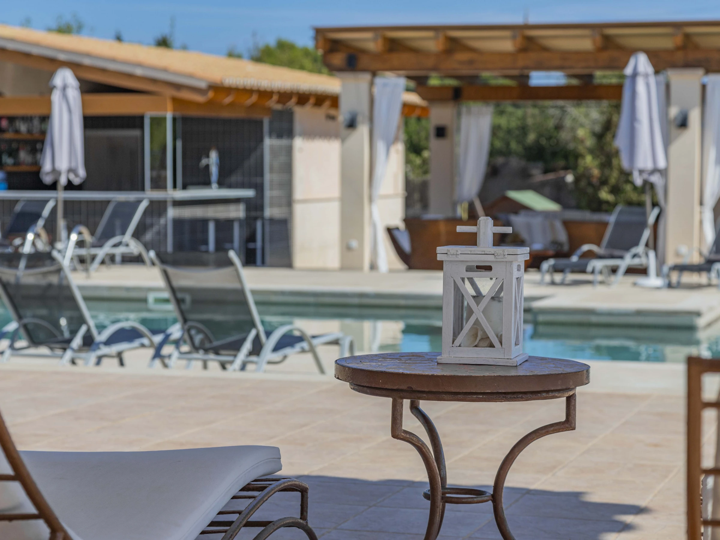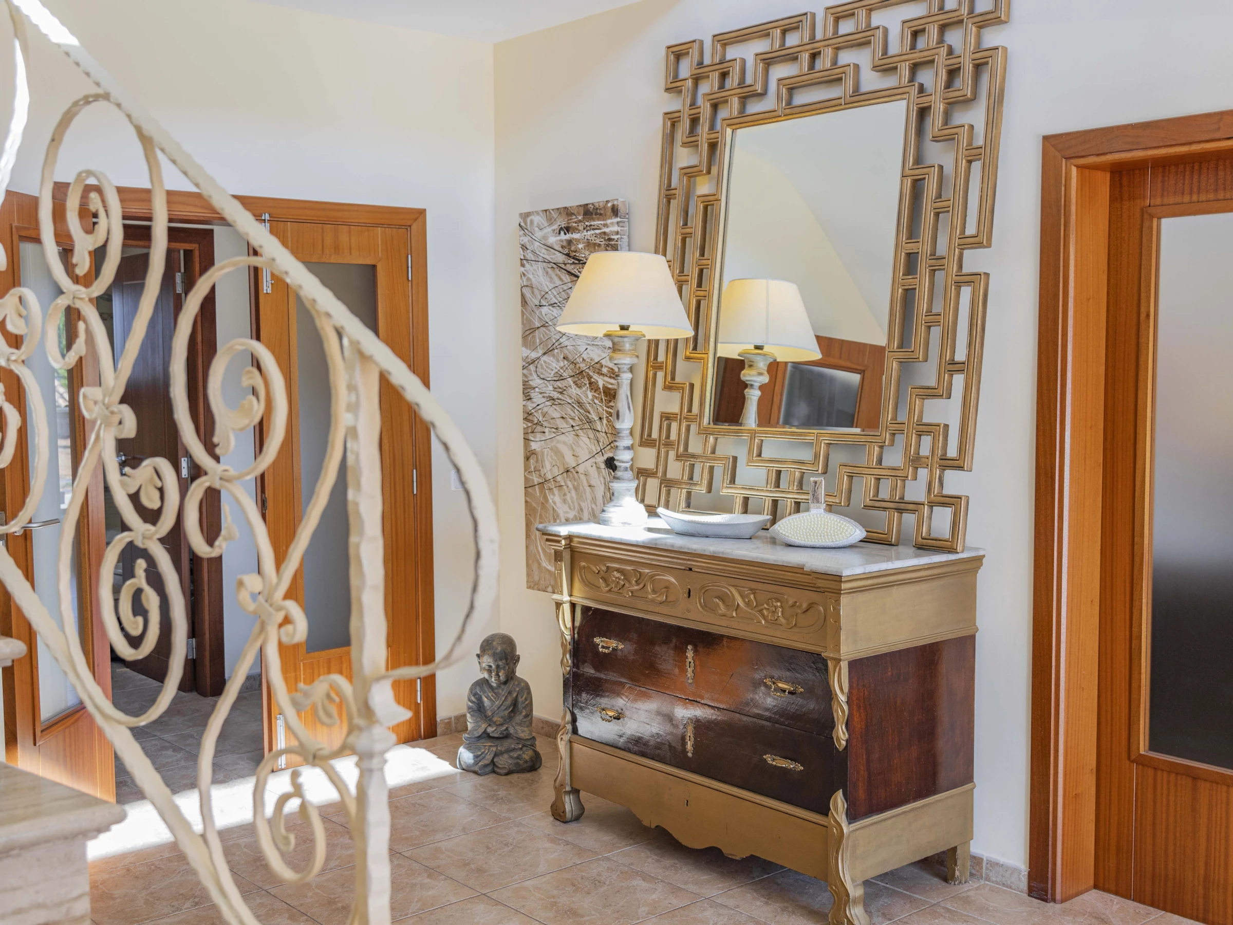 Caring for detail has a capacity for 10 people and has 5 bedrooms and 5 bathrooms. Extensive garden with a lawn and another with almond trees. The pool area is ideal to relax in the hammocks or enjoy a perfect family gathering on the covered terrace, also next to the pool we find the bar, where you can taste any of the liquors that are given to customers in your stay, a 50-liter beer tap and a small perfectly equipped kitchen. The barbecue, the children's play area, the table tennis table and the independent sauna complete the outdoor area. On the other hand, the house is equipped with all kinds of details and amenities, wifi, play station, computer, printer, large living room, dining area, fully equipped kitchen and spacious and tastefully decorated rooms.