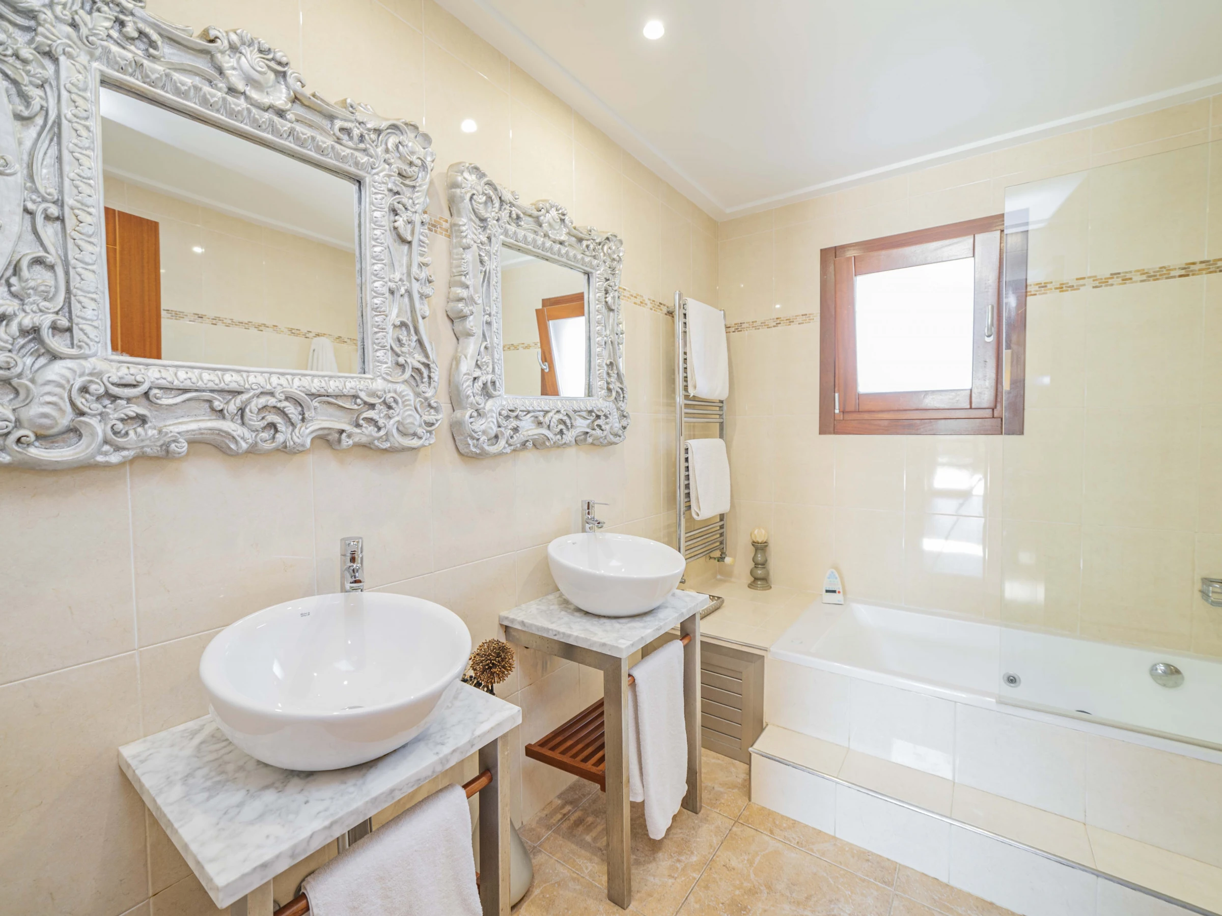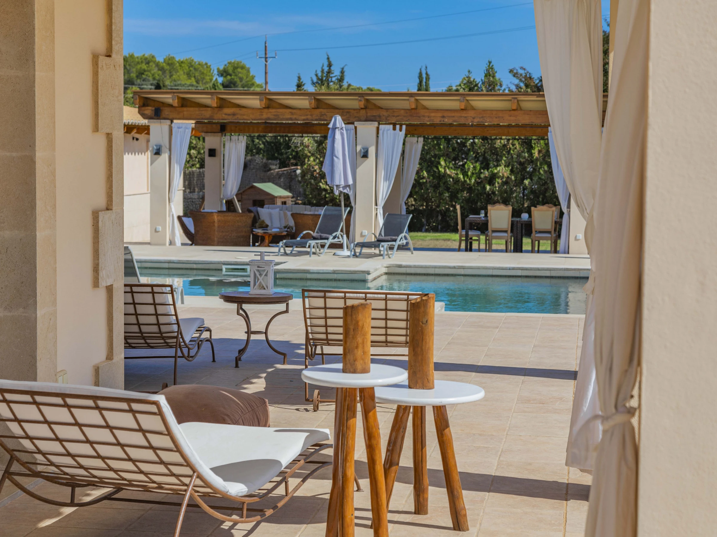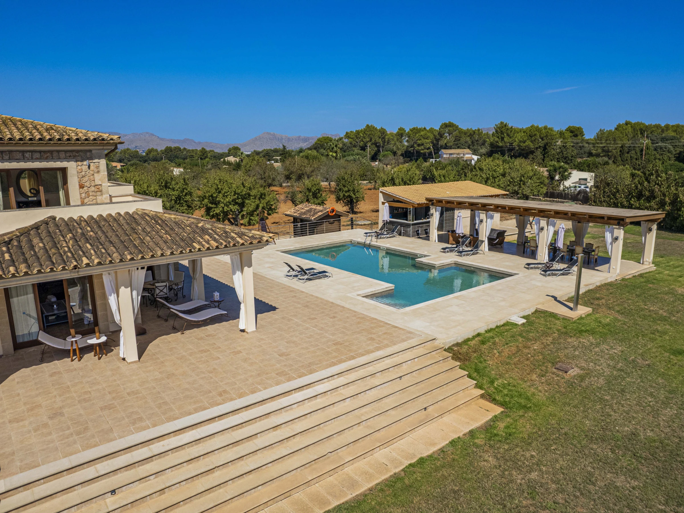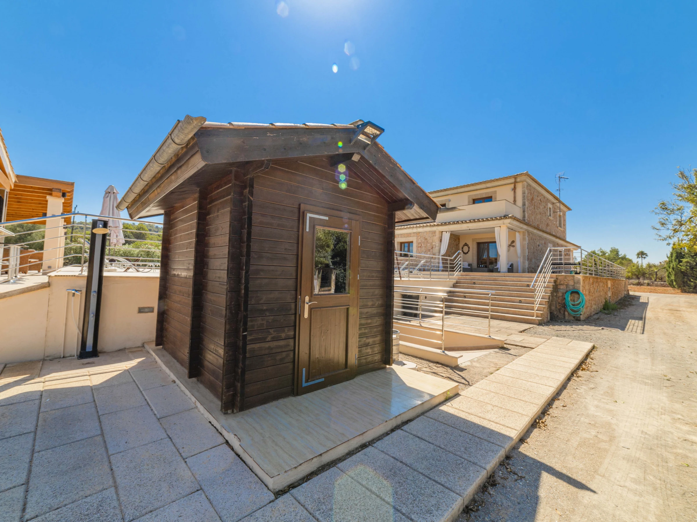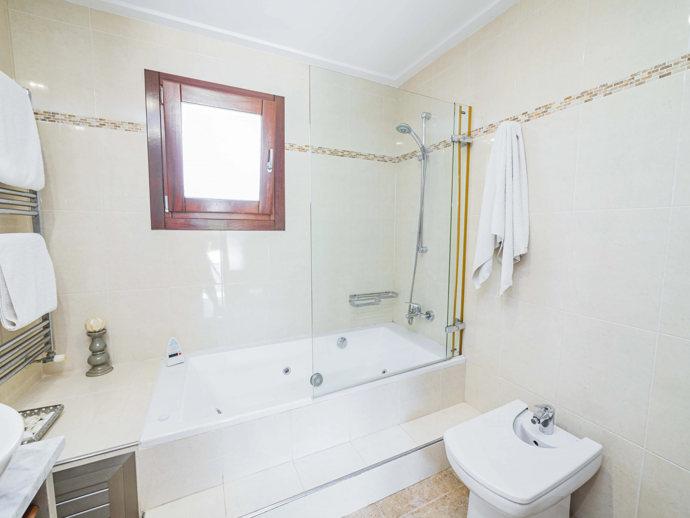 Caring for detail has a capacity for 10 people and has 5 bedrooms and 5 bathrooms. Extensive garden with a lawn and another with almond trees. The pool area is ideal to relax in the hammocks or enjoy a perfect family gathering on the covered terrace, also next to the pool we find the bar, where you can taste any of the liquors that are given to customers in your stay, a 50-liter beer tap and a small perfectly equipped kitchen. The barbecue, the children's play area, the table tennis table and the independent sauna complete the outdoor area. On the other hand, the house is equipped with all kinds of details and amenities, wifi, play station, computer, printer, large living room, dining area, fully equipped kitchen and spacious and tastefully decorated rooms.