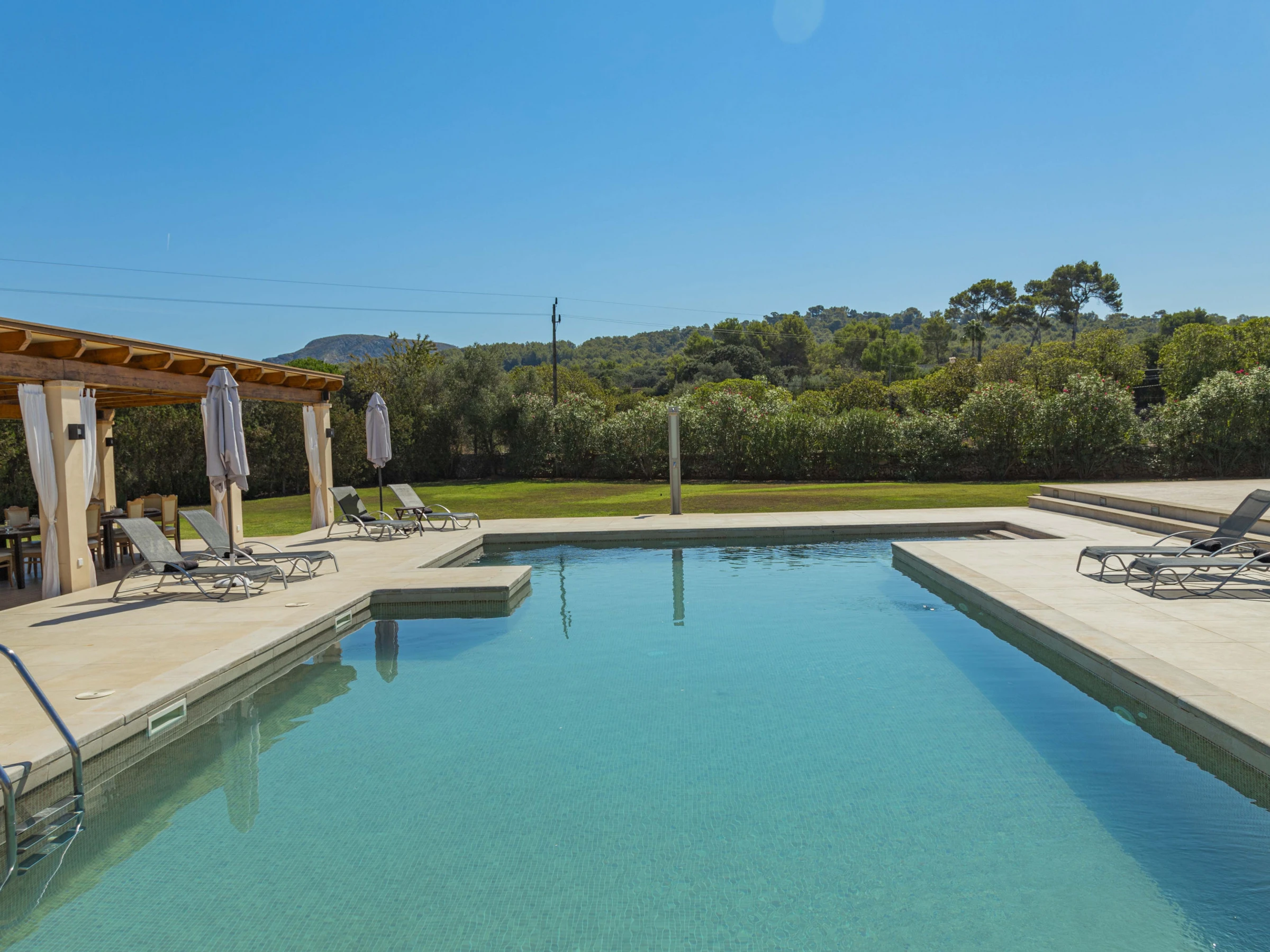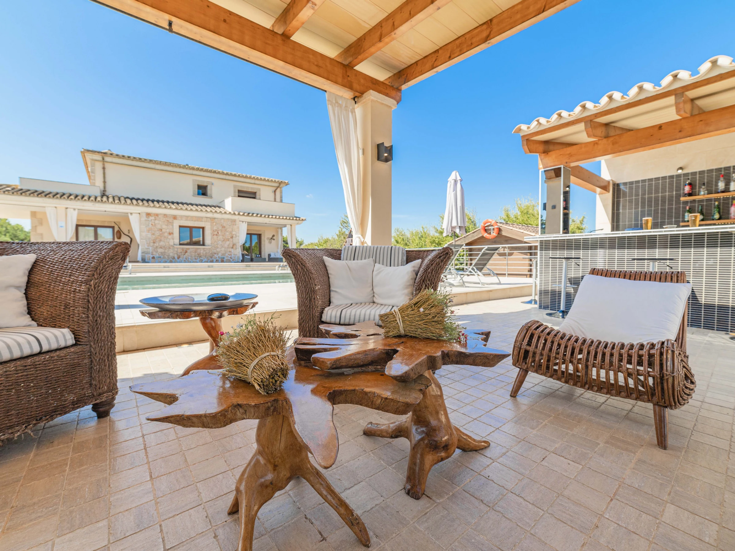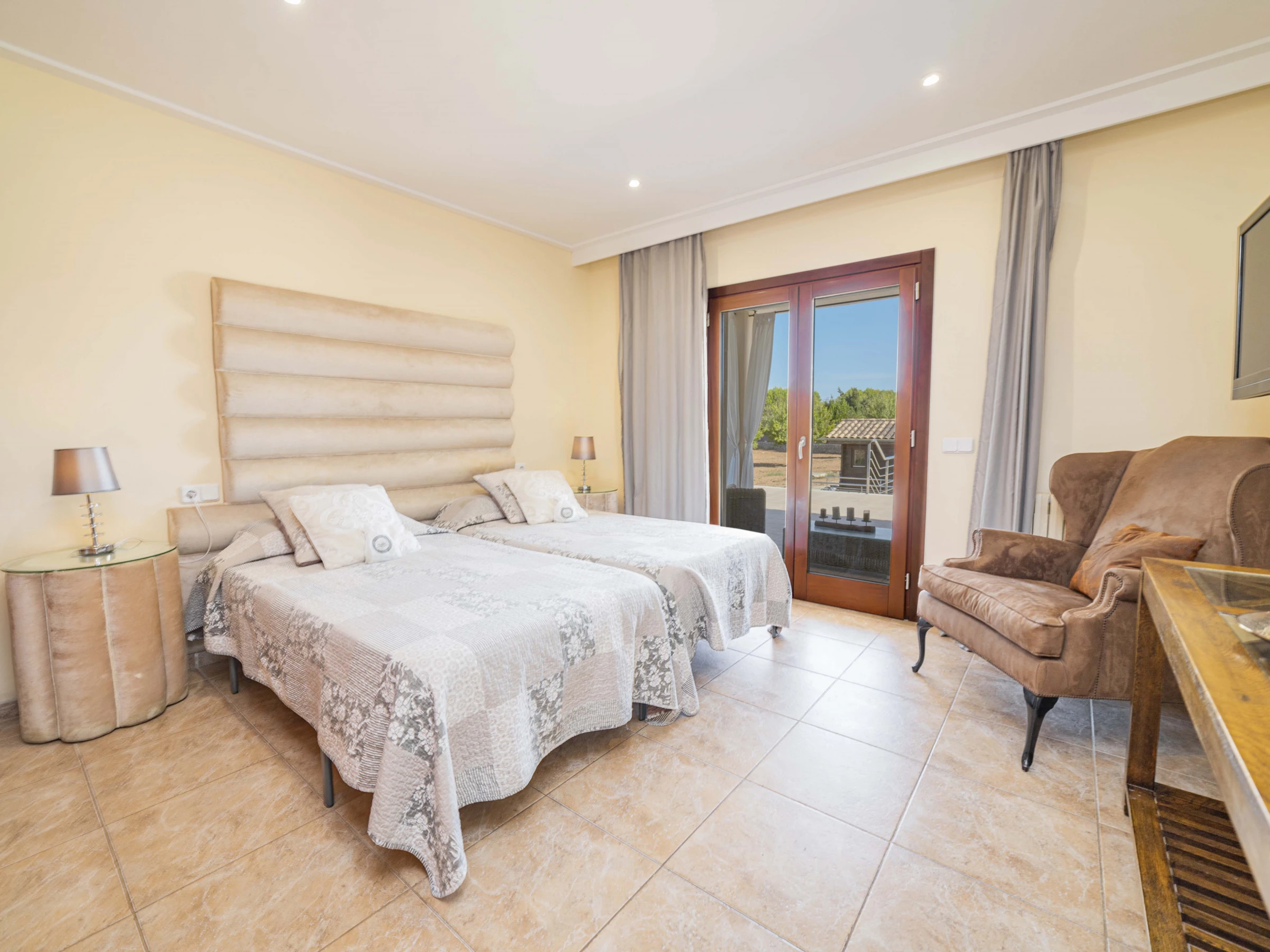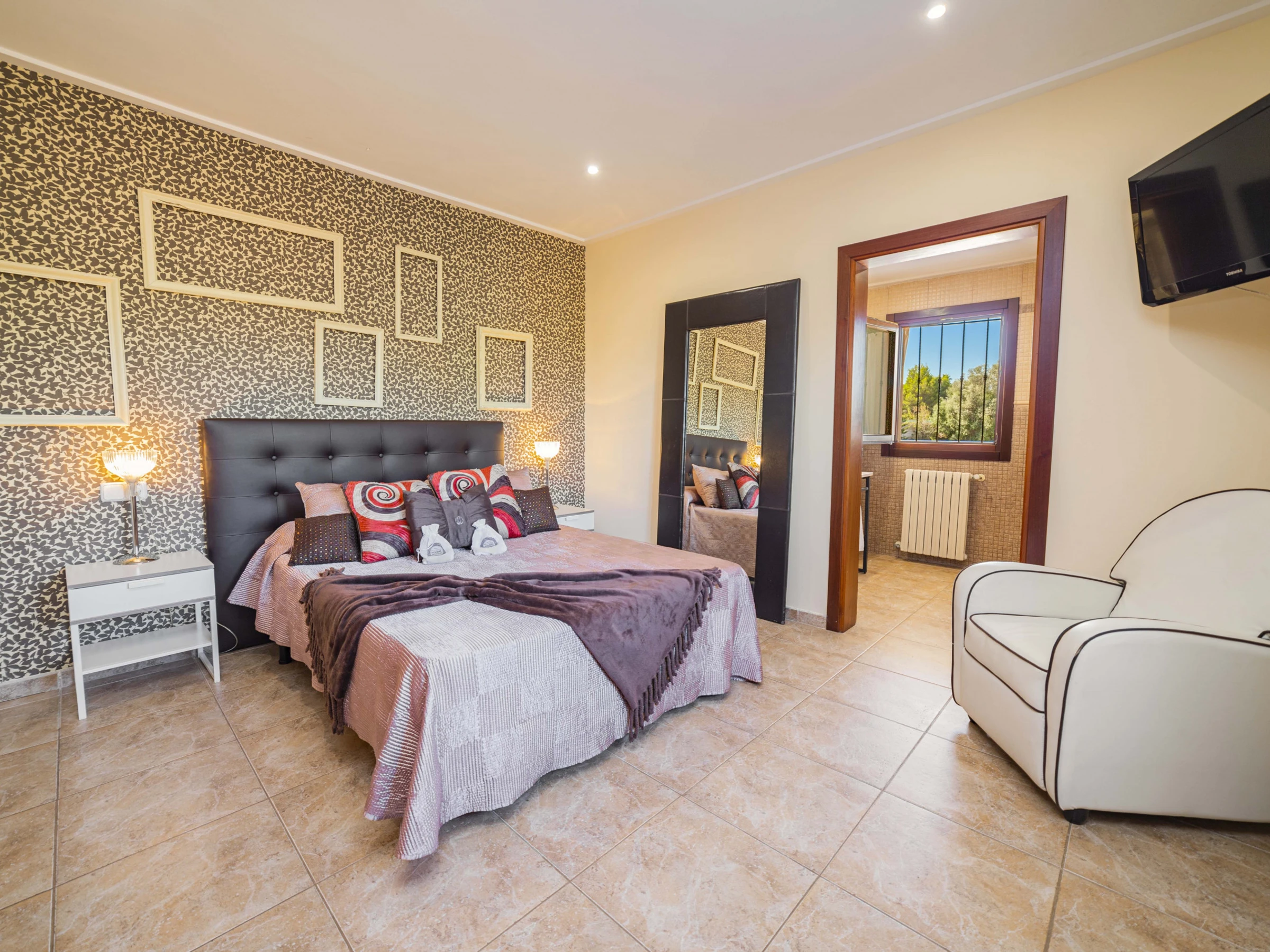 Caring for detail has a capacity for 10 people and has 5 bedrooms and 5 bathrooms. Extensive garden with a lawn and another with almond trees. The pool area is ideal to relax in the hammocks or enjoy a perfect family gathering on the covered terrace, also next to the pool we find the bar, where you can taste any of the liquors that are given to customers in your stay, a 50-liter beer tap and a small perfectly equipped kitchen. The barbecue, the children's play area, the table tennis table and the independent sauna complete the outdoor area. On the other hand, the house is equipped with all kinds of details and amenities, wifi, play station, computer, printer, large living room, dining area, fully equipped kitchen and spacious and tastefully decorated rooms.
