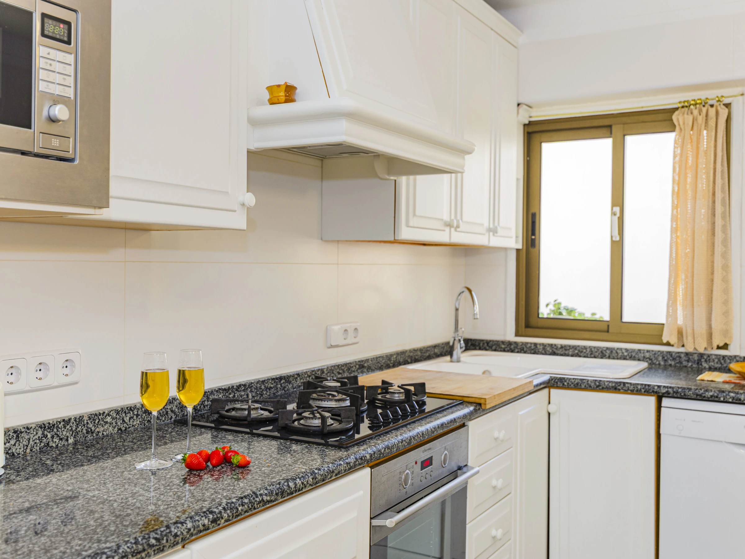 – Fully equipped kitchen with oven, ceramic hob, microwave, refrigerator, freezer, dishwasher, kettle and coffee maker.
