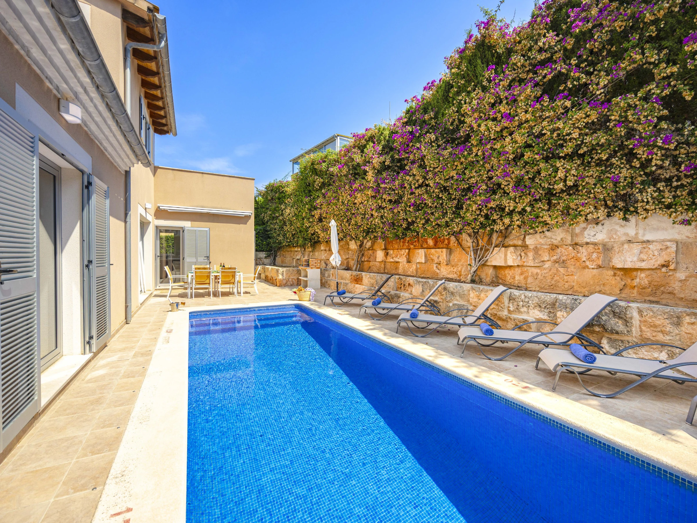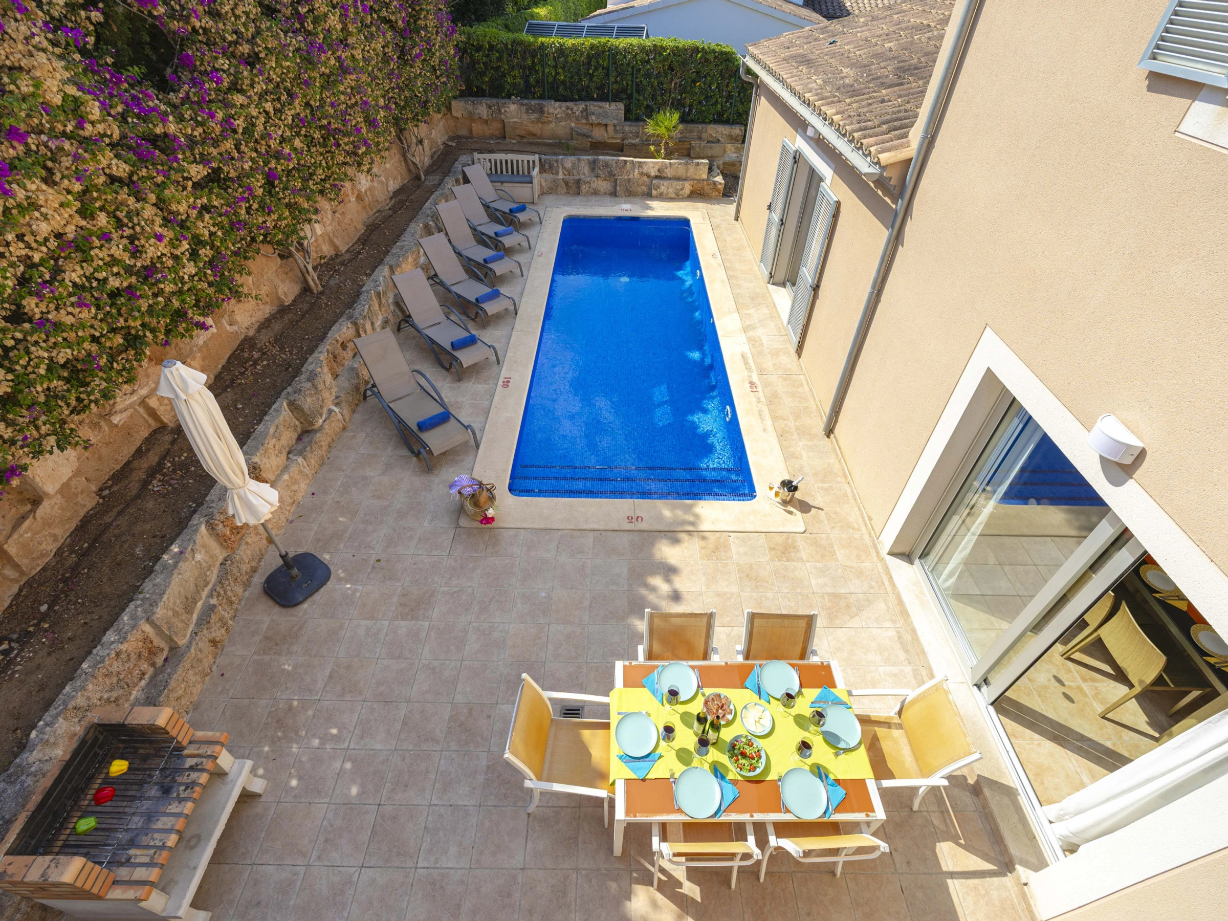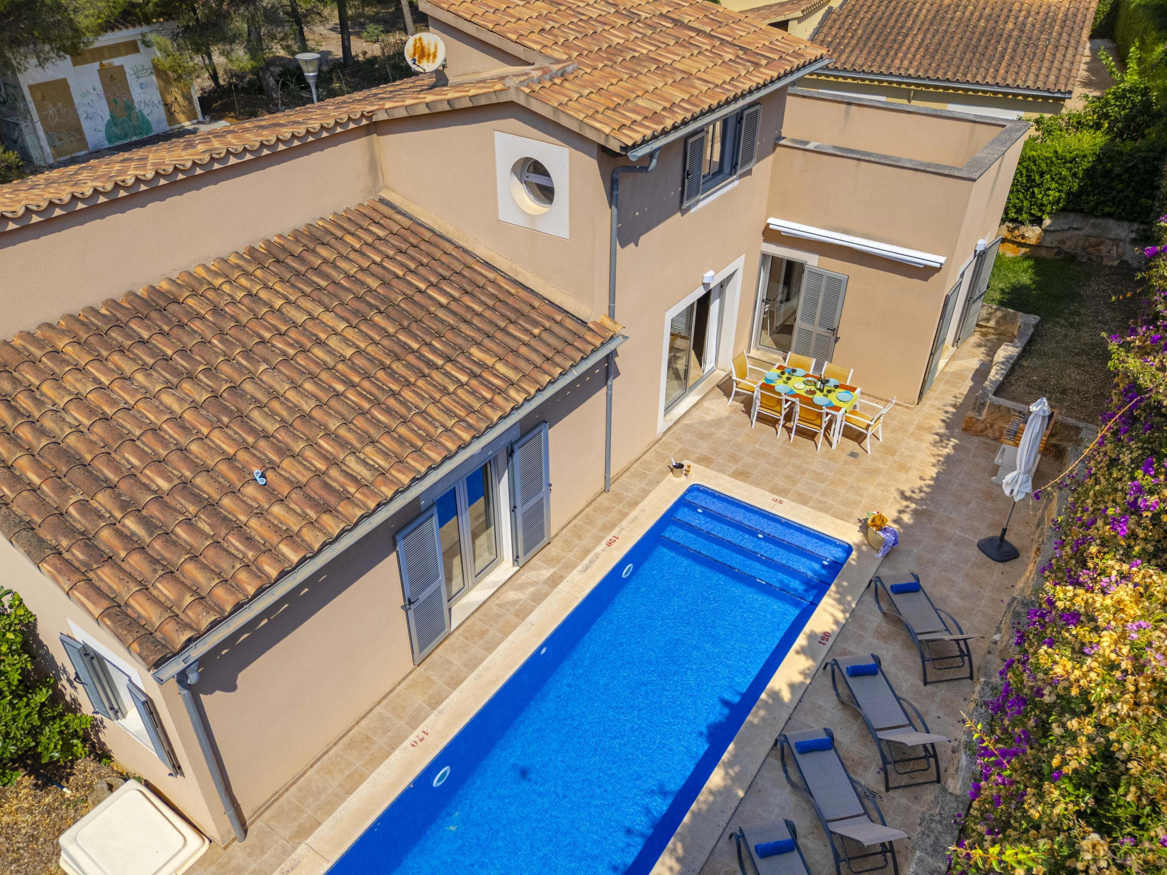 - Private pool (7 × 2 m; depth 1.2–1.7 m) and outdoor shower