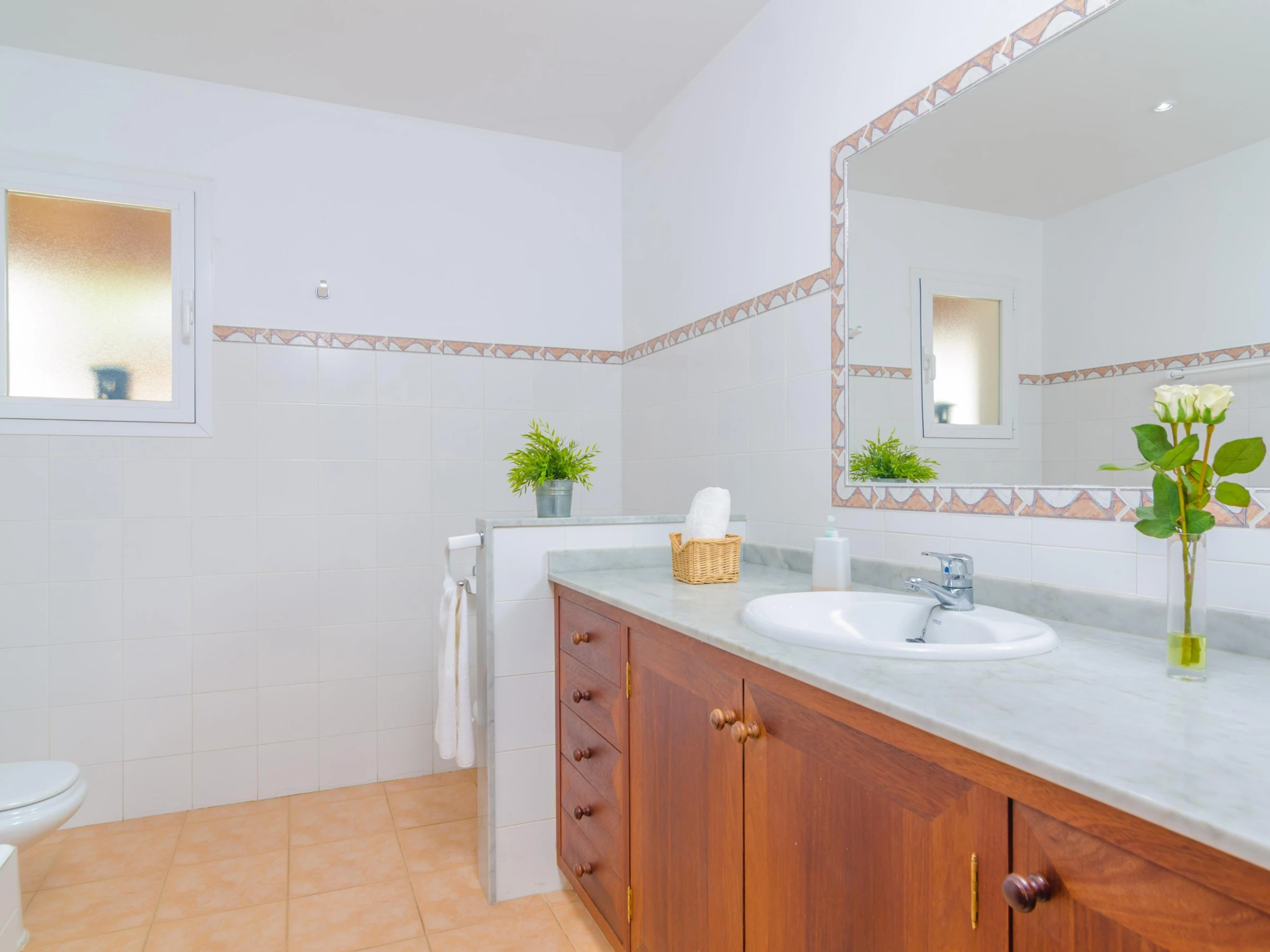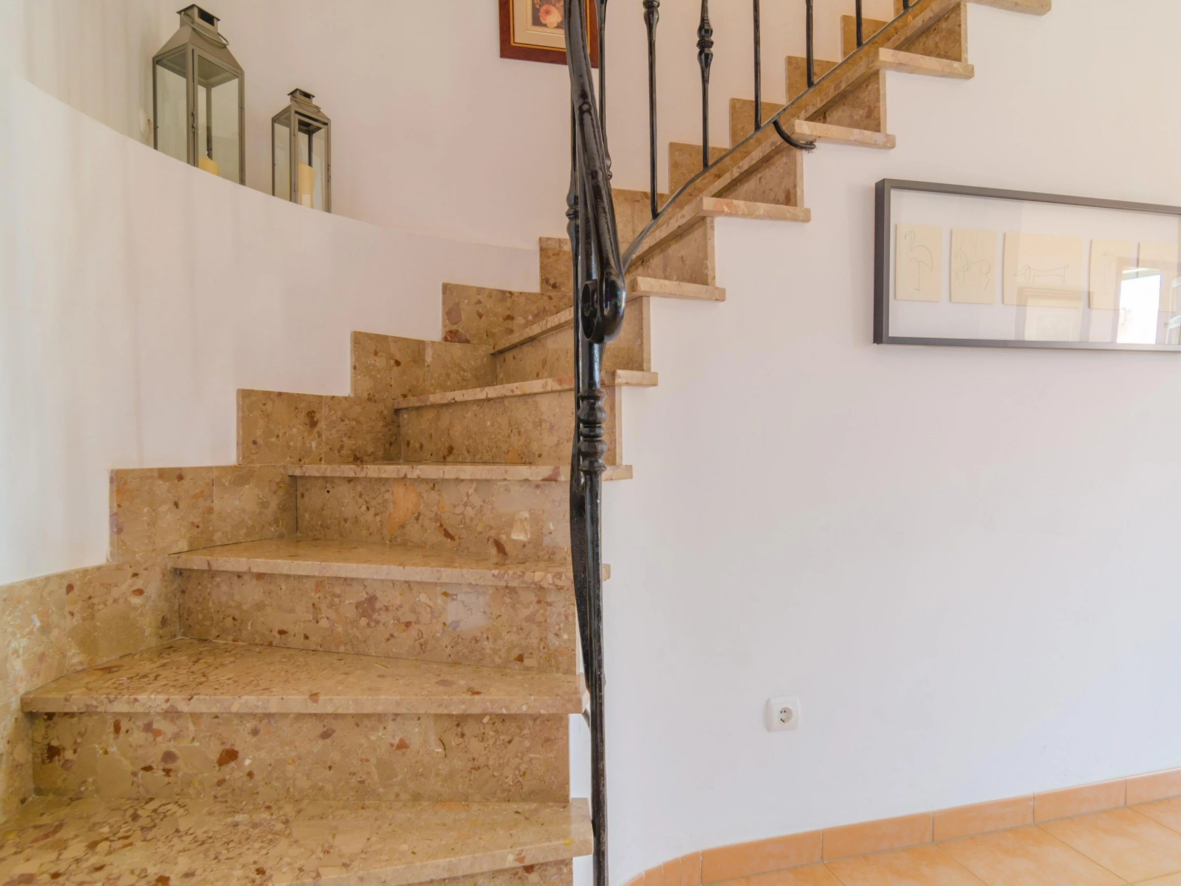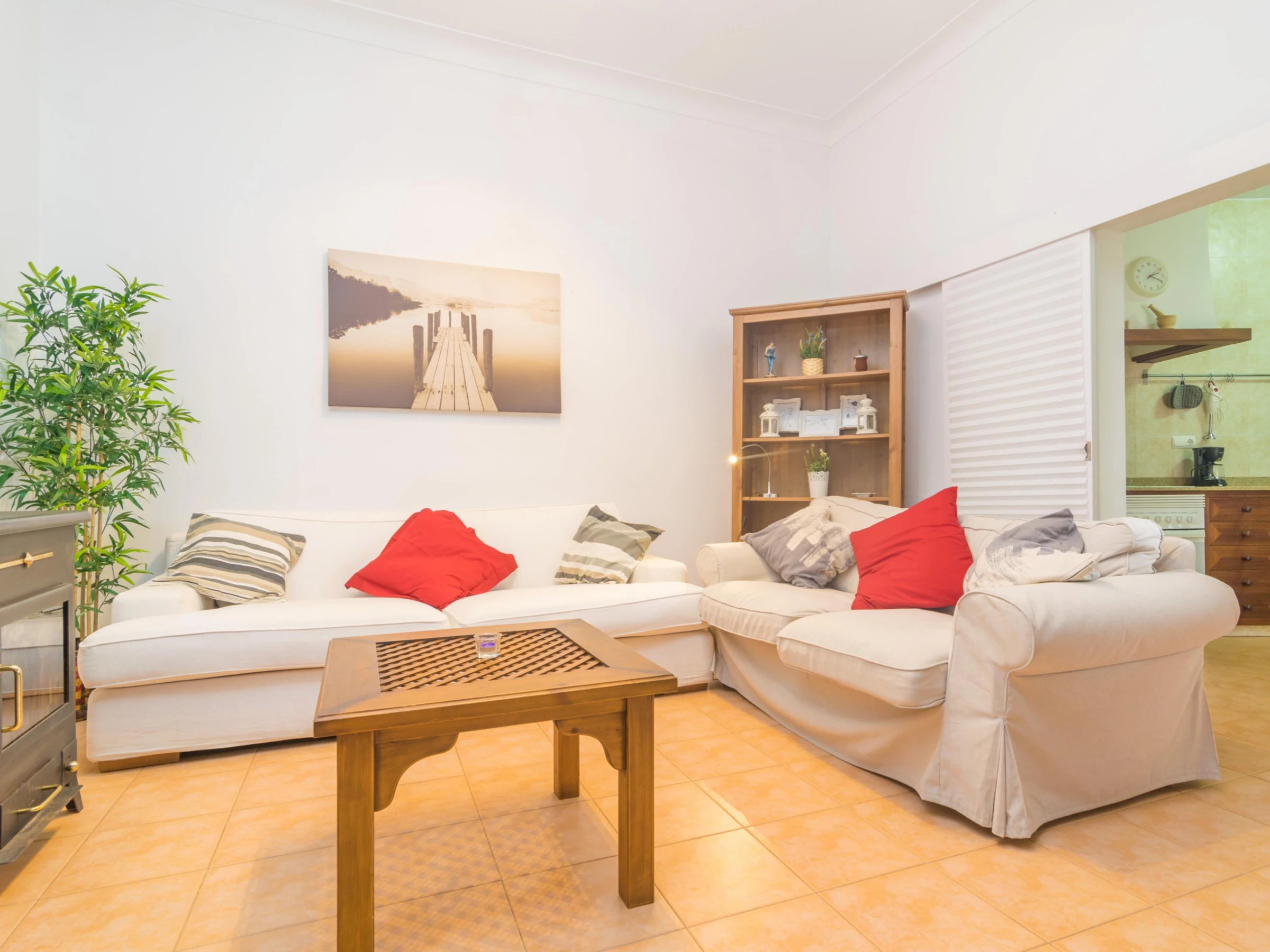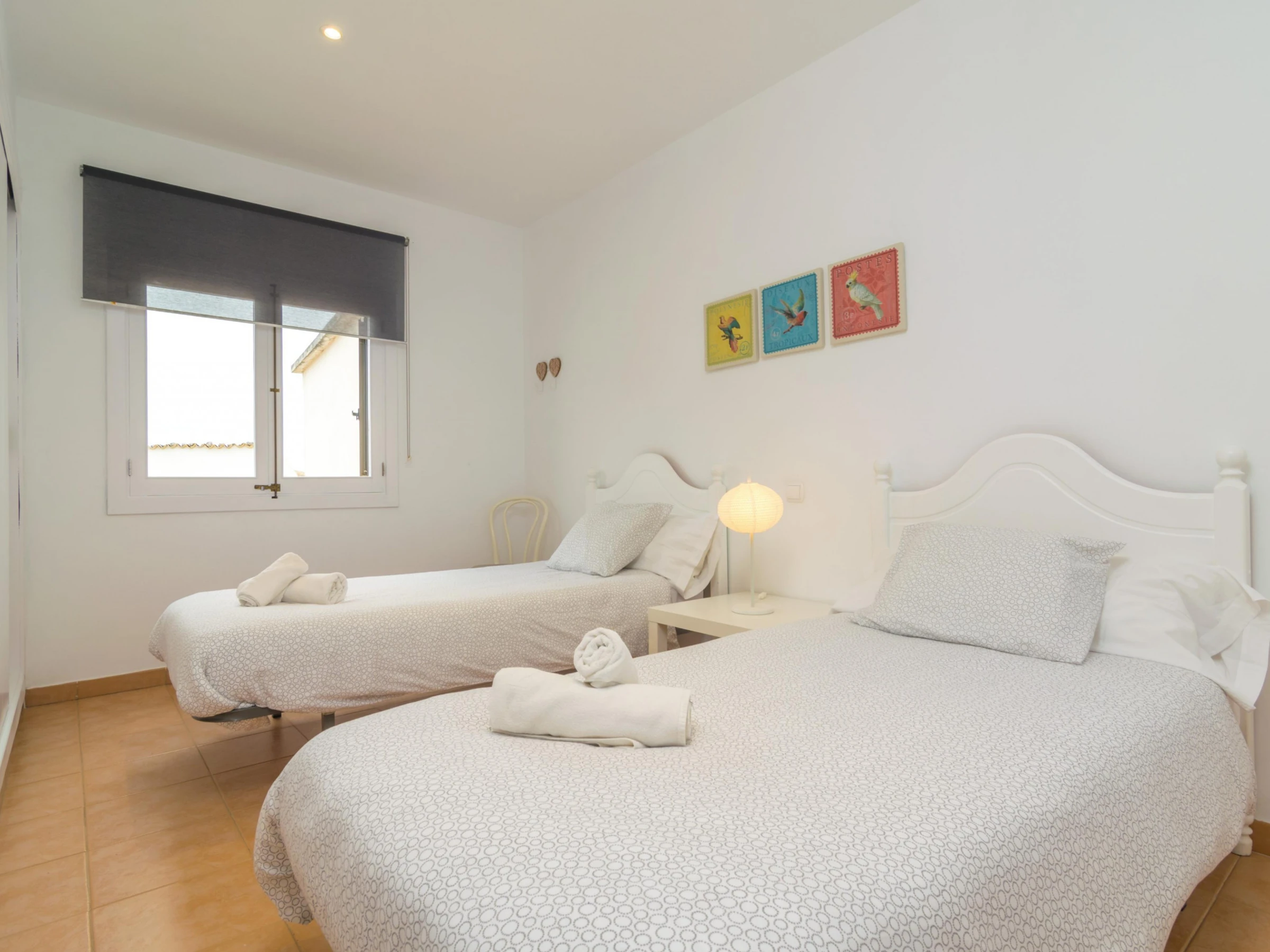 The 130 m2 two storey house has been restored so that you will enjoy all comforts during your stay. In the living room you can have a rest on one of the sofas, watch TV or take a little siesta. Then the dining area suitable for 4 people. Finally the kitchen, basically equipped to cook during your vacation, including a ceramic hob, a dishwasher and a little table for morning breakfasts. The laundry is located by the kitchen and it features a washing machine, an iron and an ironing board. Two of the three bedrooms are also on the ground floor. One with a double be and the other with twin beds, and both with a fan and a closet. Two bathrooms complete this floor, one with a shower and the other with a bathtub, for the whole accommodation. Going upstairs you will find the last twin bedroom which also presents a fan and a closet. If you are travelling with a baby, we can prepare a cot and a high chair too.