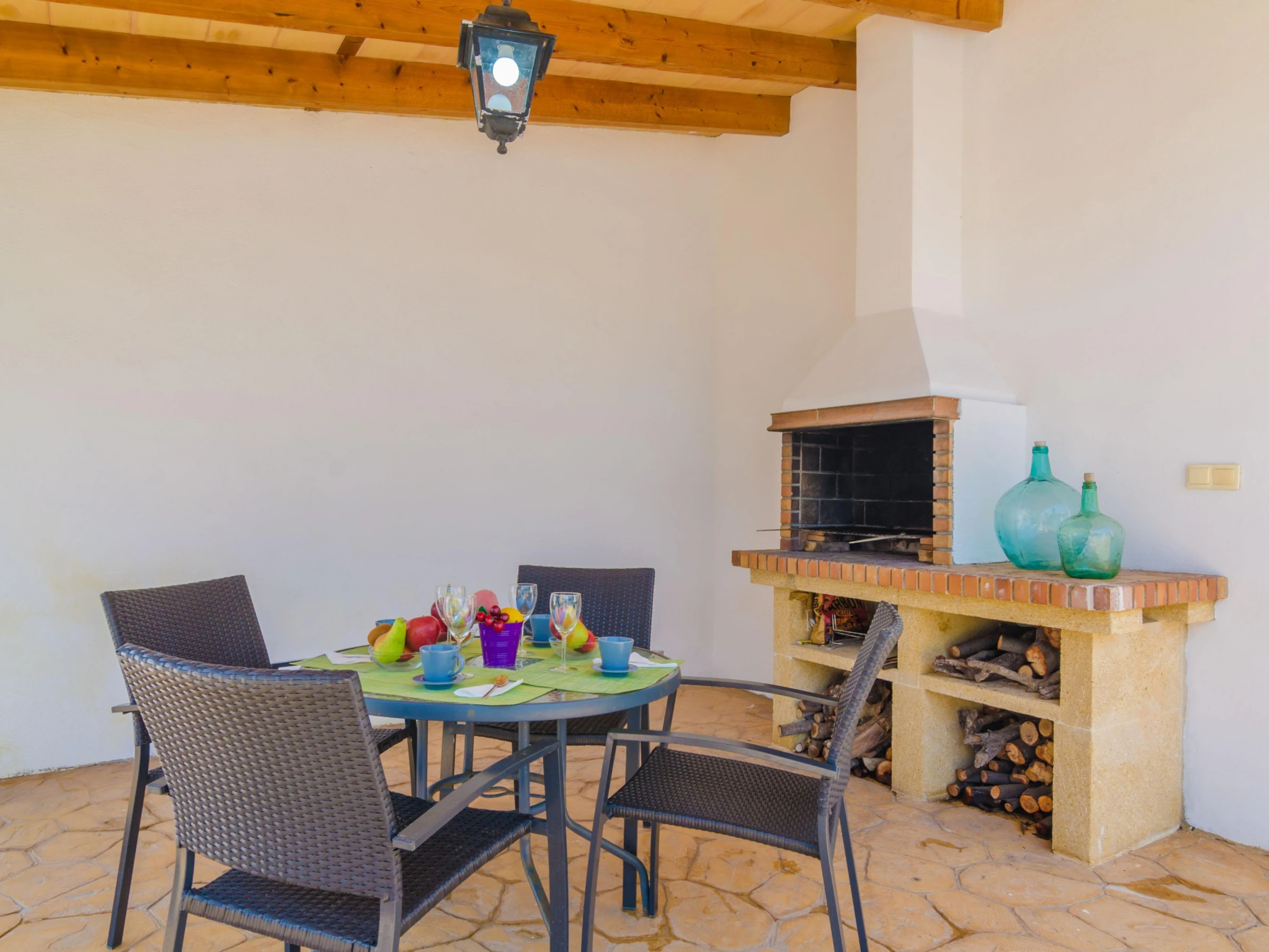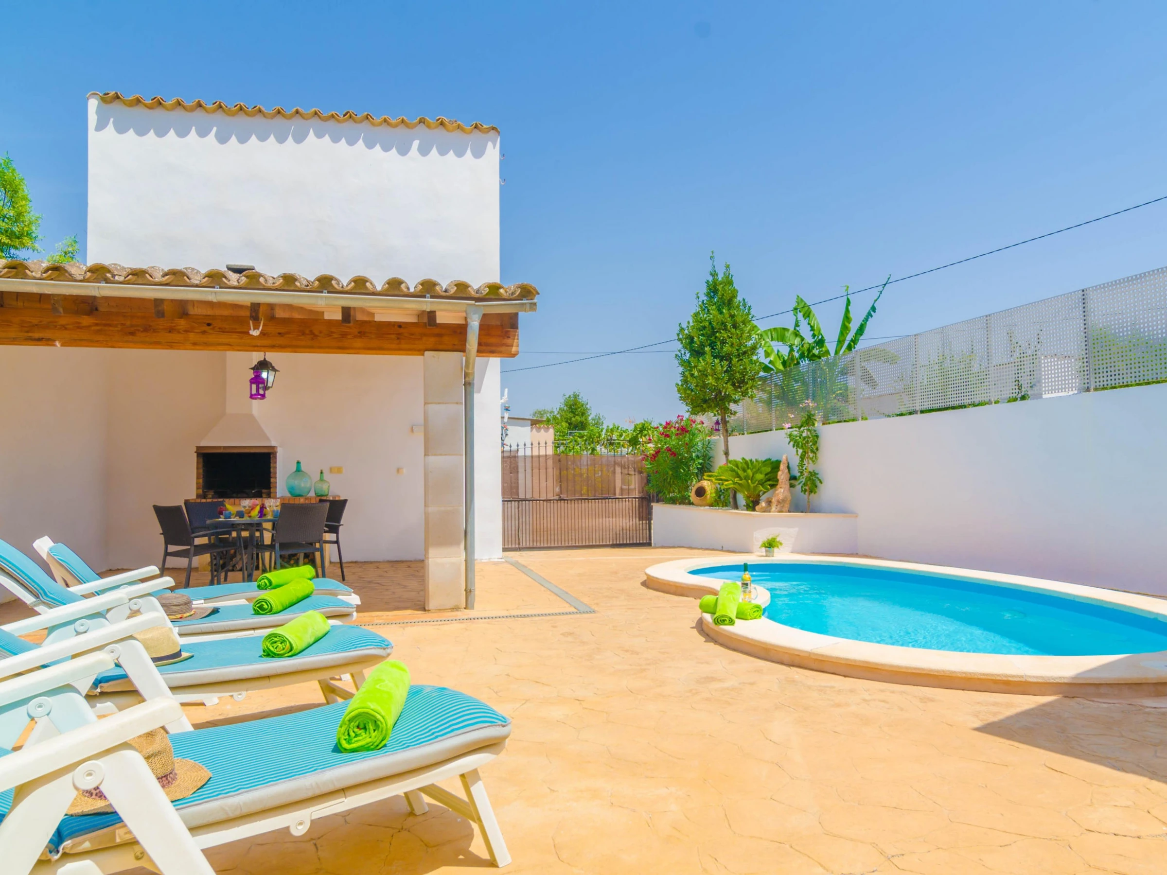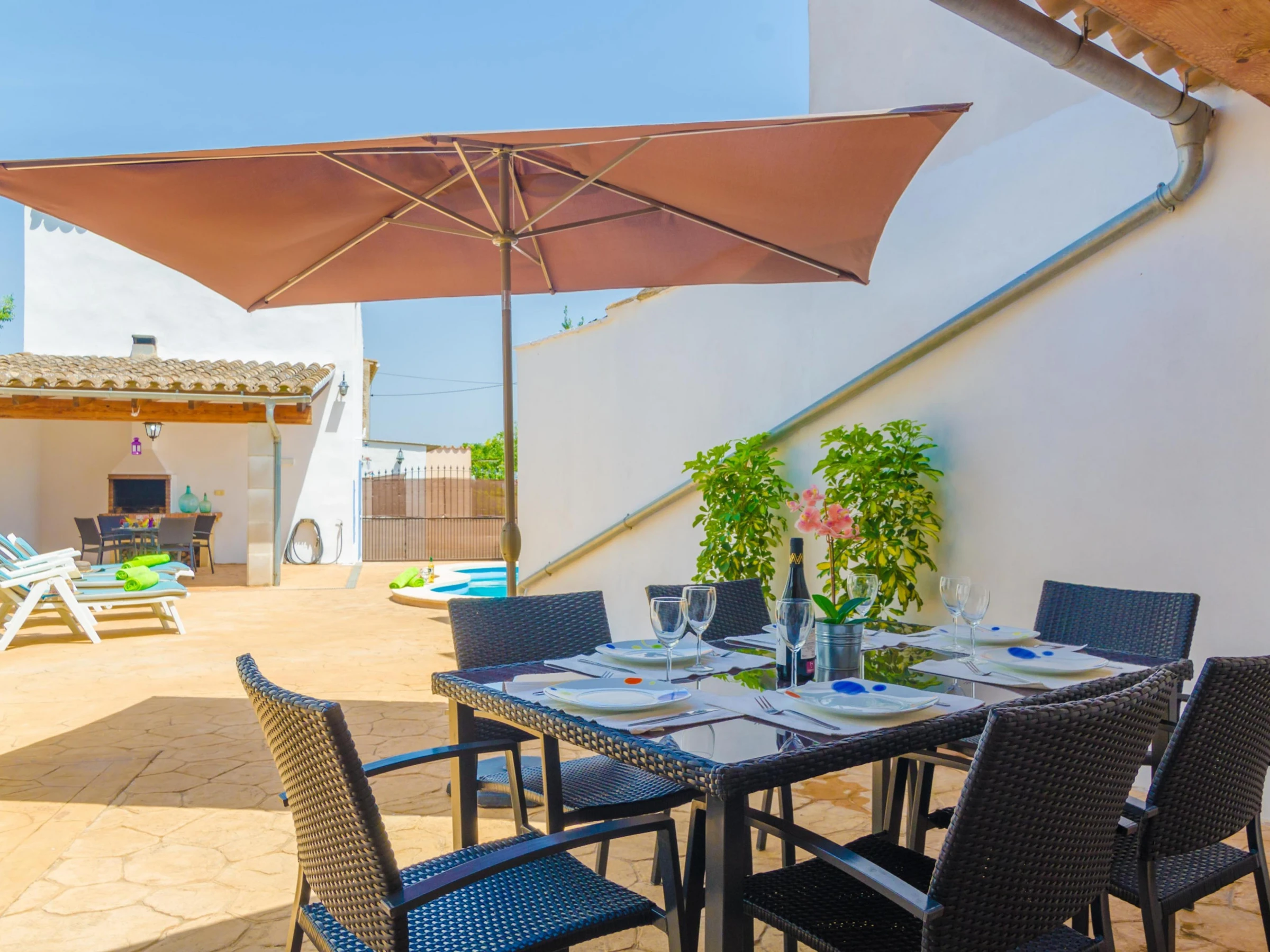 In this beautiful and comfortable house you will enjoy the peace of being in the outskirts of an interior village but with all comforts. Outside you can refresh in the beautiful swimming pool sizing 5 x 3 metres and with a 1.5 metres depth. After the dip, nothing like sunbathing on one of the sunbeds or having a drink under the porch while cooking the barbecue. By the house entrance there is another sitting area to have lunch or dinner with your loved ones enjoying the amazing Majorcan weather. The property is within the village and it has direct neighbours.