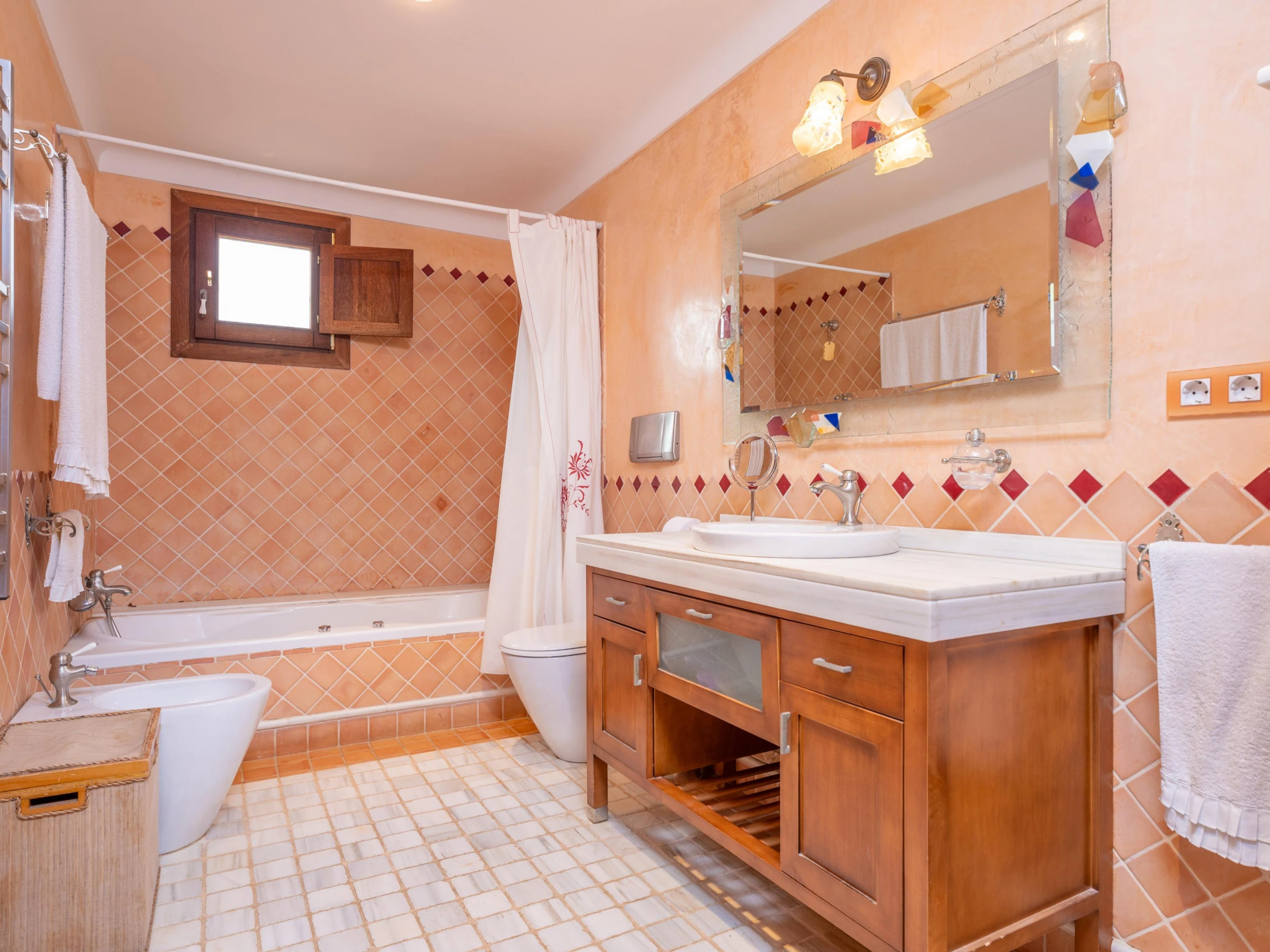 Moving into the rustic interior, spread over two floors, the bright, air-conditioned living room is ideal for relaxing in the evening or watching movies in company on the Smart TV. The ceramic hob kitchen is fully equipped with all the utensils needed to cook during your stay and connects to the dining room where you can all sit together and enjoy the delicious dishes. When it's time to sleep, there are 3 air-conditioned bedrooms on the ground floor, one of them with a double bed and the other two with a single bed. To finish off the first floor there is a full bathroom with a whirlpool bath. At the top of the stairs, there is a second room with two sofas that leads to the fourth bedroom with a double bed, air conditioning and an en-suite bathroom with shower and whirlpool bathtub. If you are travelling with a baby, a cot and high chair will be provided. Finally, the house offers a washing machine, tumble dryer and iron for your use during your stay.