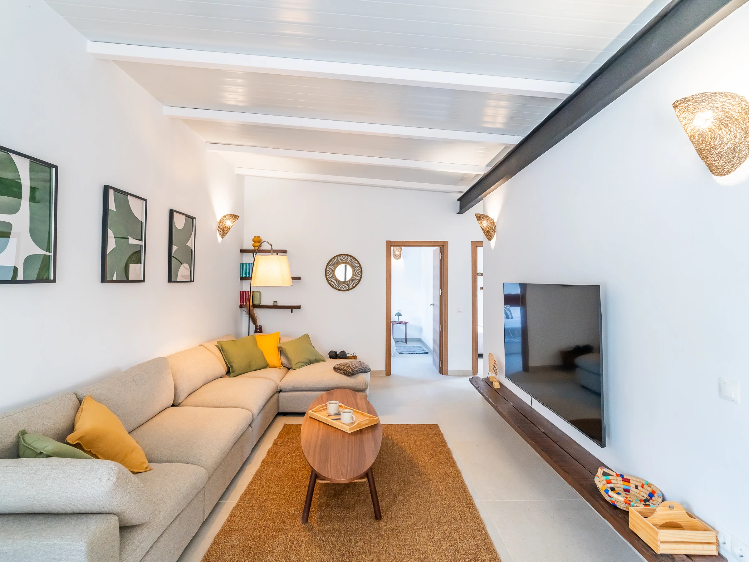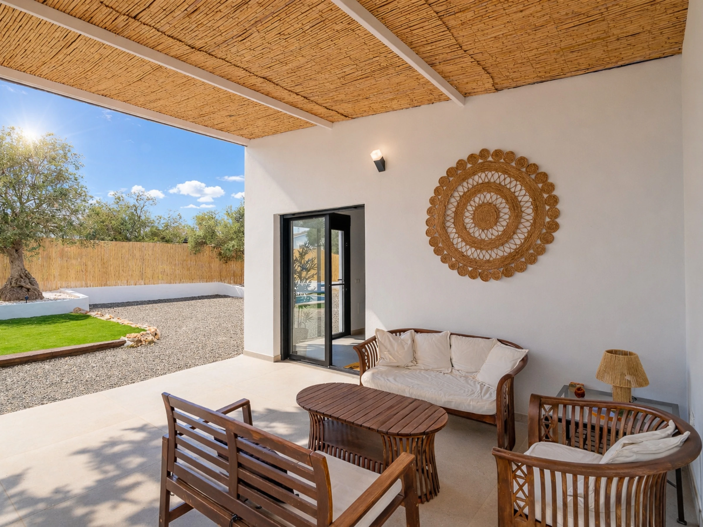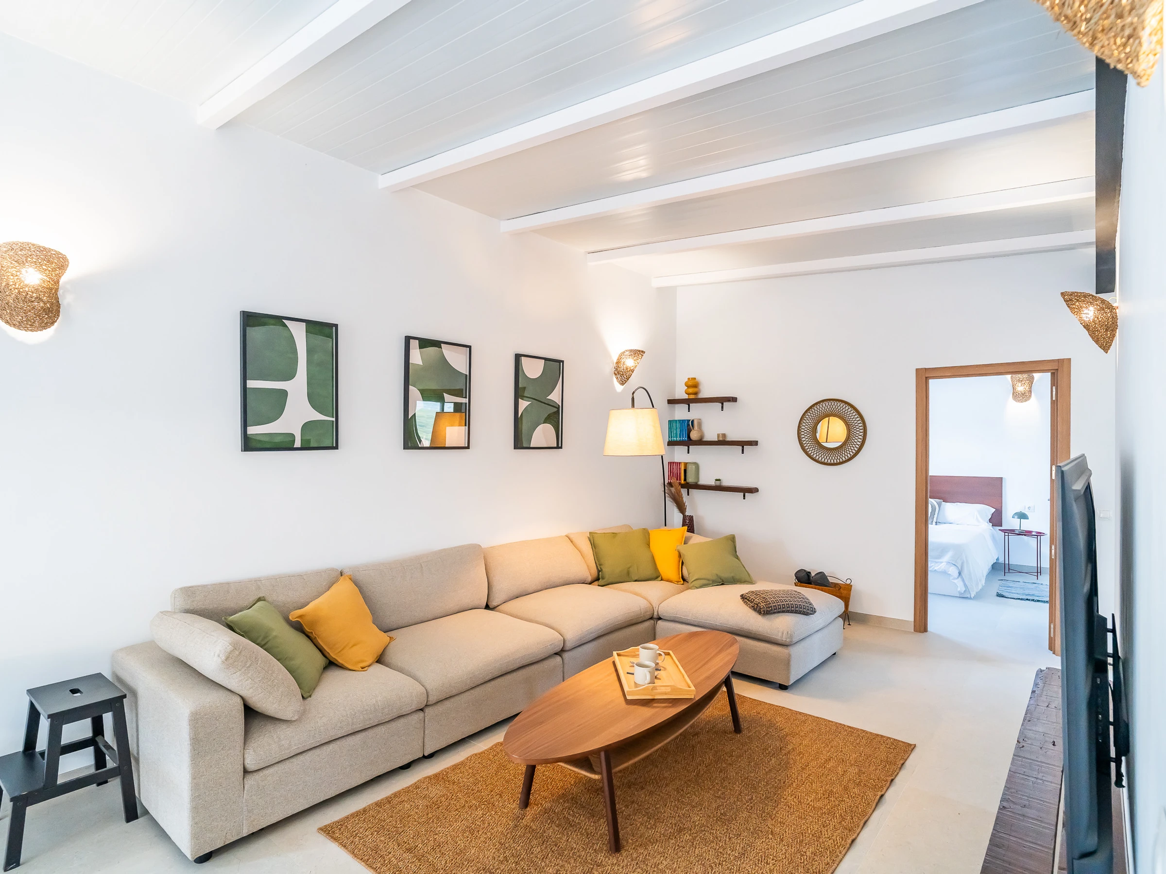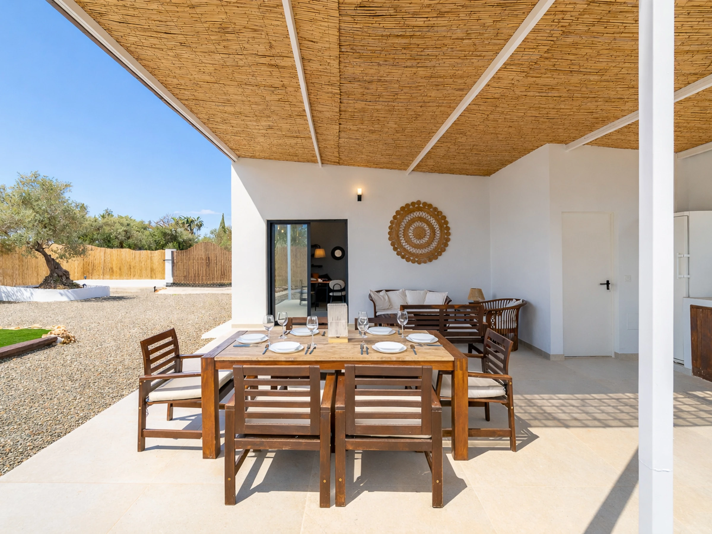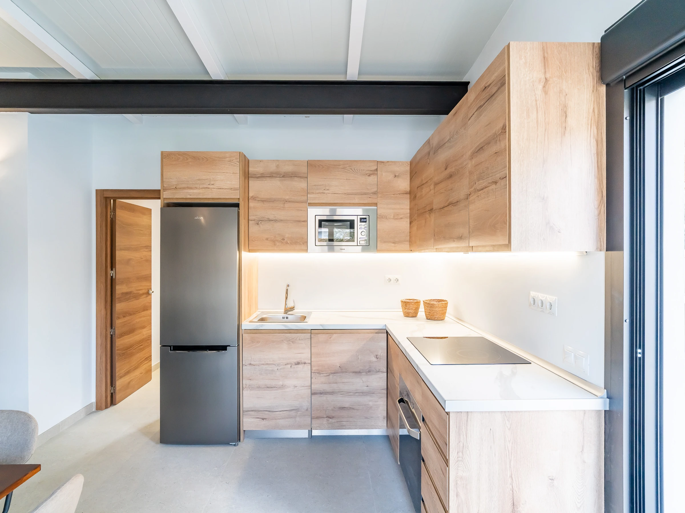 The interior is designed to enjoy in any season of the year, with air conditioning throughout the accommodation, wifi, Smart TV, mosquito nets throughout the house and heat pump heating. The American induction kitchen is fully equipped with oven, microwave, dishwasher, fridge, freezer, Italian coffee maker, toaster, kettle and juicer, offering everything necessary for short or long stays. It also has a cot and high chair, ideal for families with babies.