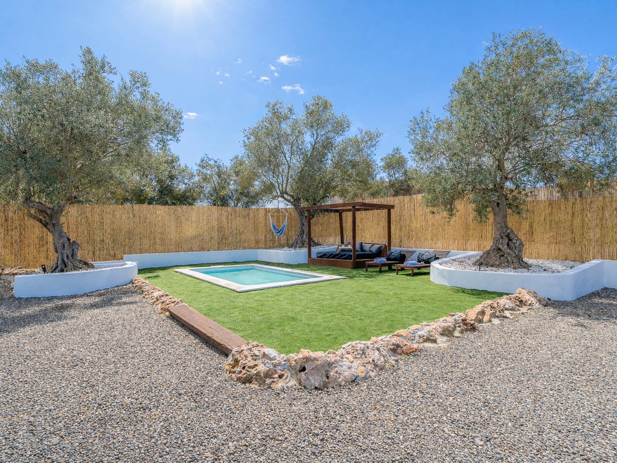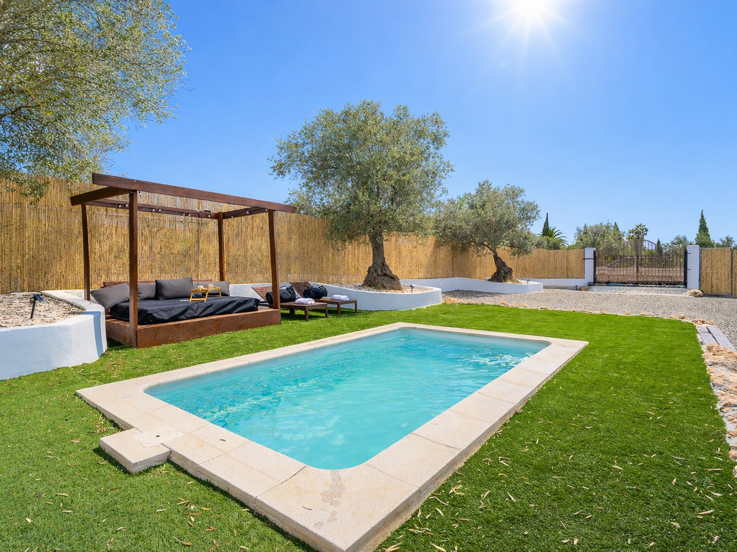 The exterior is one of its great attractions: private garden, terrace of 36 m² with outdoor furniture, charcoal barbecue and private pool of 3x5 metres, perfect for cooling off and enjoying the natural surroundings. Next to the pool you will also find a bathroom with a shower, very practical during summer days.