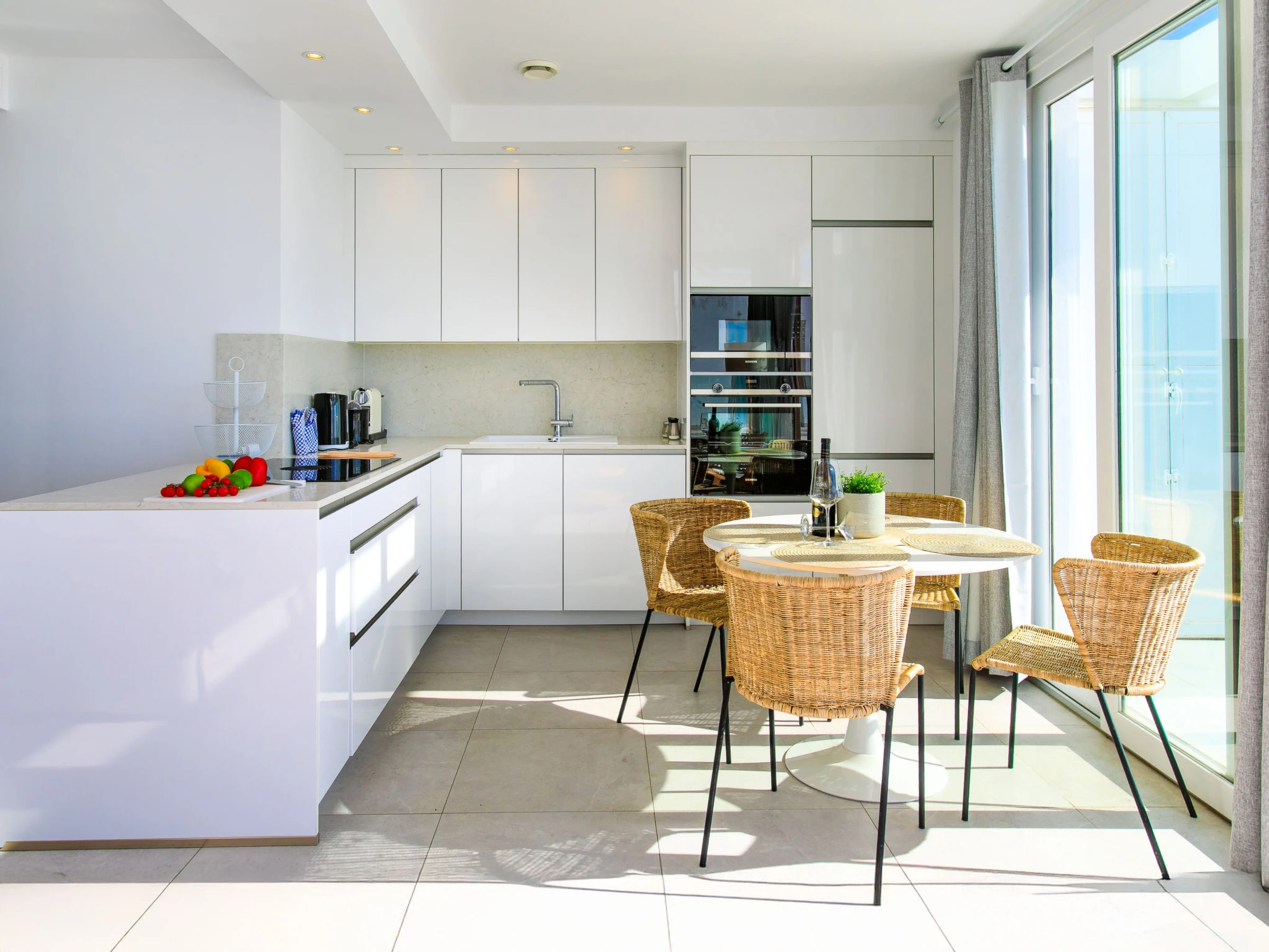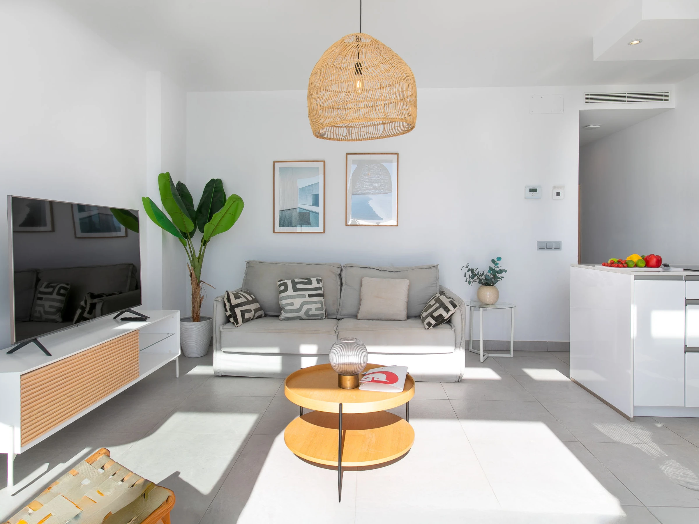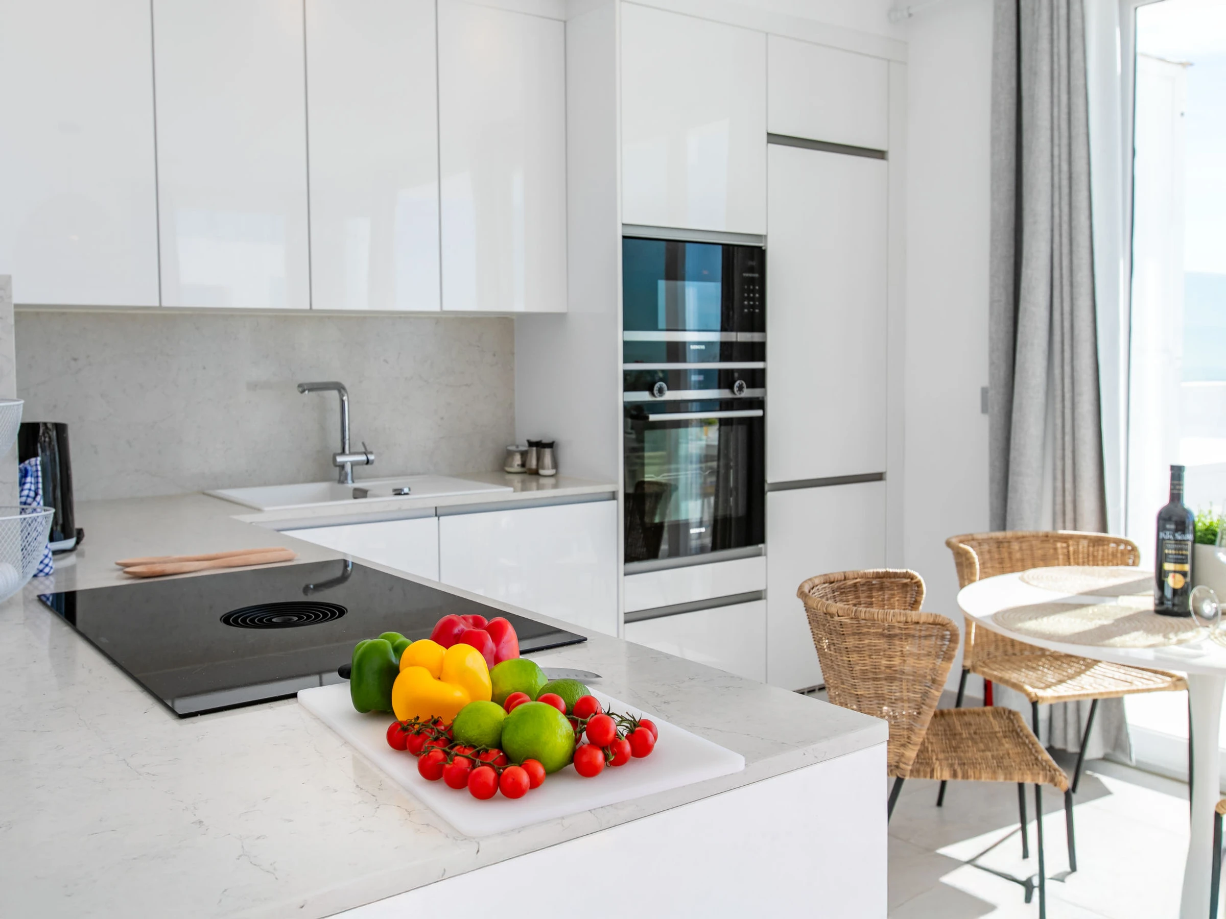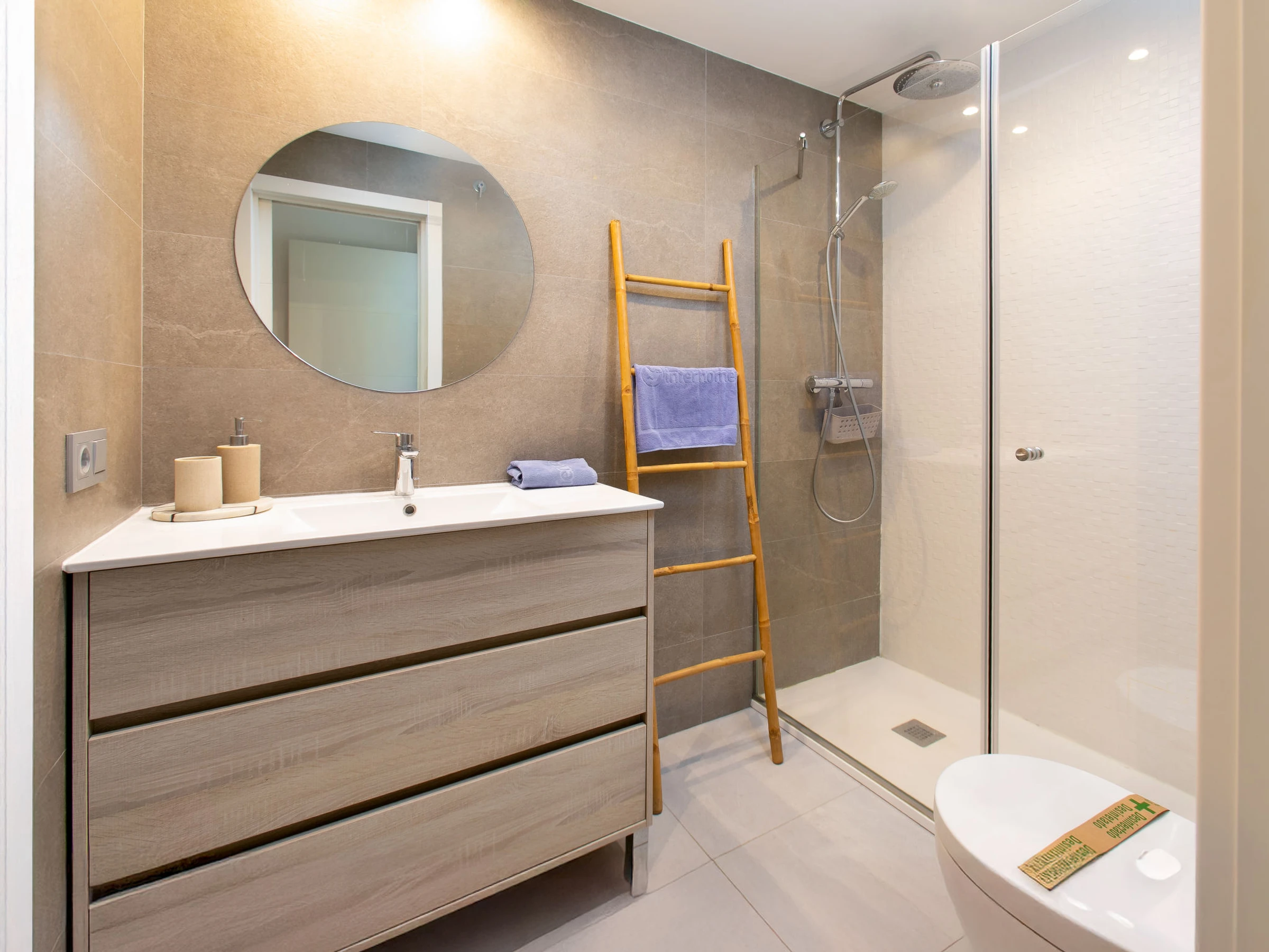 "Ocean view Sauna & Spa", 3-room apartment 66 m2. Spacious and bright, comfortable and beautiful furnishings: living/dining room with digital TV, air conditioning and forced-air heating. Exit to the terrace. 1 room with 1 french bed (160 cm, length 200 cm), shower/WC, air conditioning and forced-air heating. Exit to the terrace. 1 room with 1 x 2 bunk beds (140 cm, length 200 cm), air conditioning and forced-air heating. Exit to the terrace. Open kitchen (oven, dishwasher, 4 ceramic glass hob hotplates, toaster, kettle, microwave, freezer, electric coffee machine). Shower/WC. Terrace furniture, barbecue, deck chairs. Panoramic view of the sea, the mountains and the resort. Facilities: washing machine, safe, iron, children's high chair, baby cot for up to 3 year olds, hair dryer. Internet (WiFi, free). [hidden] // Reg. Nr.: ESFCTU000029013001087333000000000000000[hidden]6