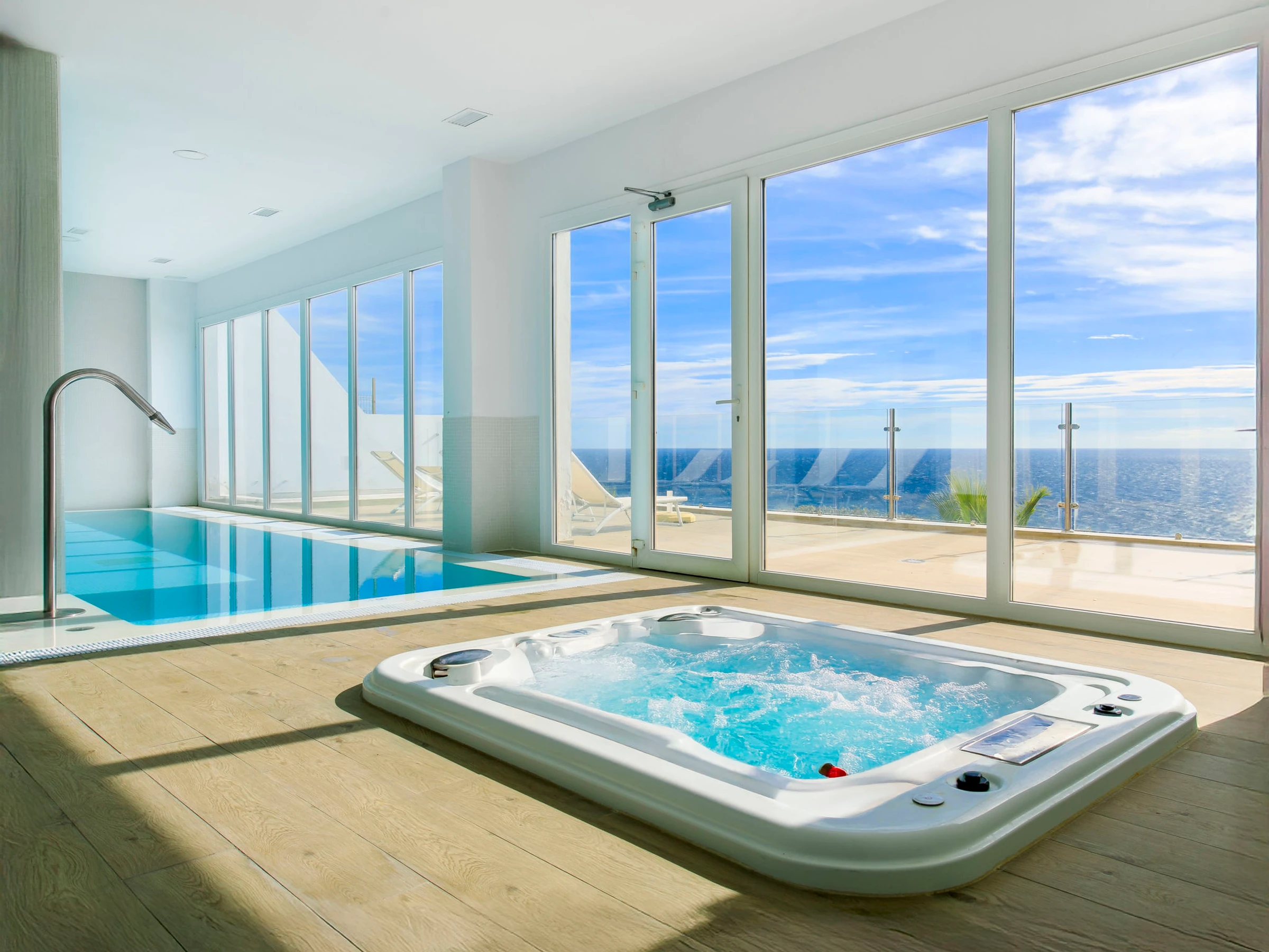 Nerja: Amazing complex with fantastic views over the Mediterraneo. Outdoor pool, indoor heated pool, games room, sauna available from October until end of March. Modern, beautiful, comfortable apartment block "Ocean view sauna & Spa". 5 km from the centre of Nerja, 1 km from the sea, 1 km from the beach, in a cul-de-sac. For shared use: 2 swimming pools, indoor pool heated (seasonal availability: [hidden] - [hidden] Shower/WC in the pool area, children's pool, table tennis, garden furniture, children's playground. In the house: sauna, fitness room, billiard table, playroom, table football, lift, air conditioning. Parking space n 14. Shop 5 km, shopping centre 23 km, bus stop 1 km, railway station "MĂĄlaga Maria Zambrano" 55 km, sandy beach "VĂlchez" 1 km pebble beach "Burriana" 6 km, diving center 5 km. Sports harbour 20 km, golf course (18 hole) 23 km, riding stable 7 km, sports centre 50 km. Nearby attractions: Museo de Nerja, Cuevas de Nerja, Acantilados de Maro, Aquavelis, Museo de Miel de Caña Frigiliana, Museo del Vino Competa. Well-known ski regions can easily be reached: Sierra Nevada. Hiking paths: Sierra Tejeda, Sierra Almijara. Please note: car recommended. The owner does not accept any youth groups. Loading and unloading of baggage is possible at the holiday house. Property ref. ES5405.764.1 is situated on the same property.