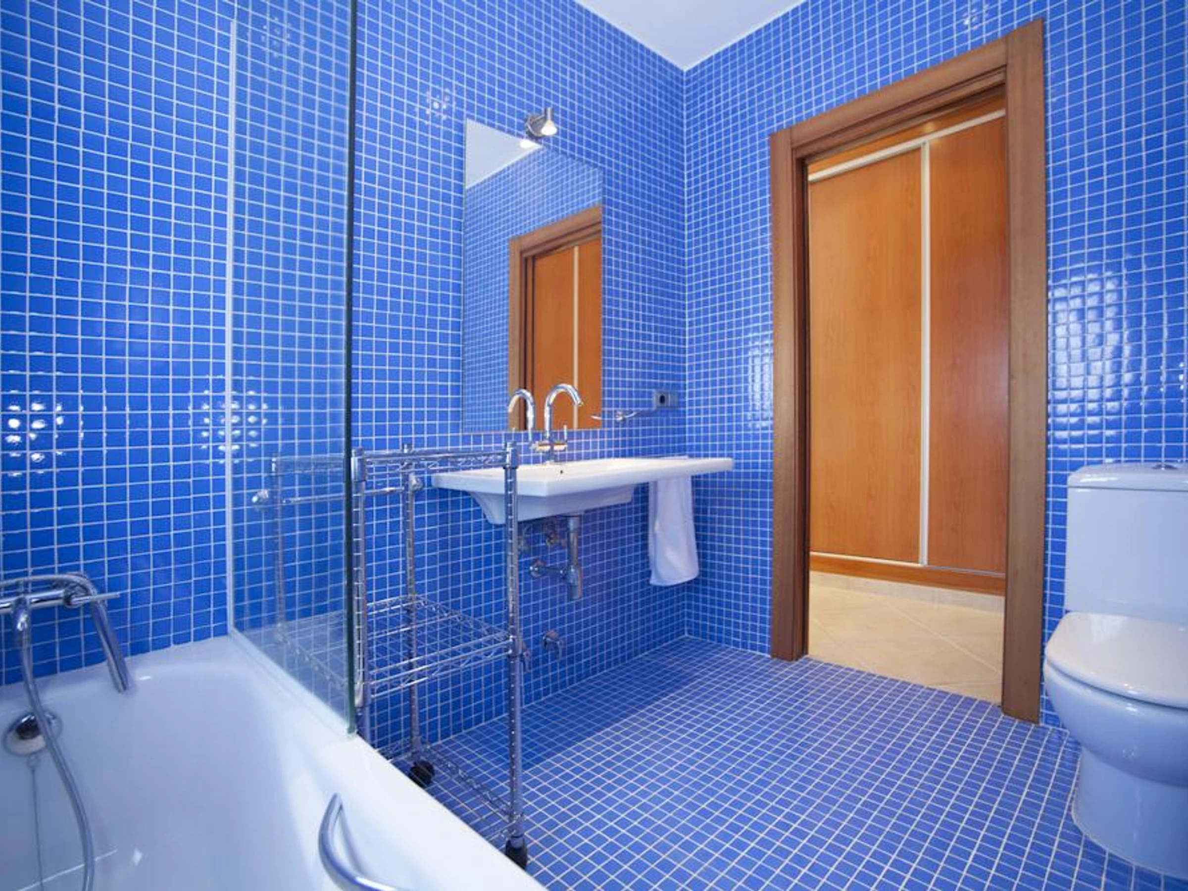 * bathroom with single washbasin, bath and toiletExterior of the villa
