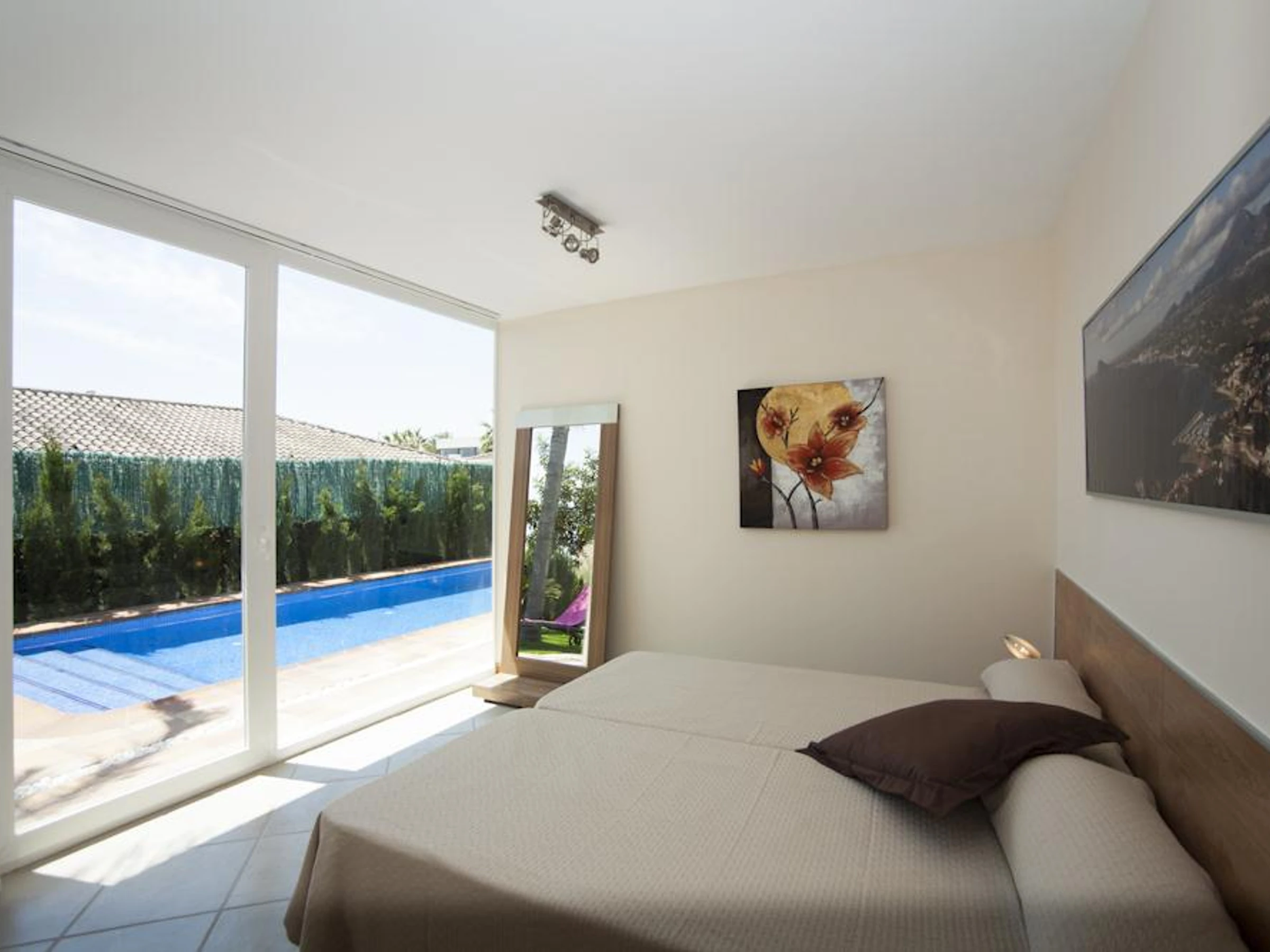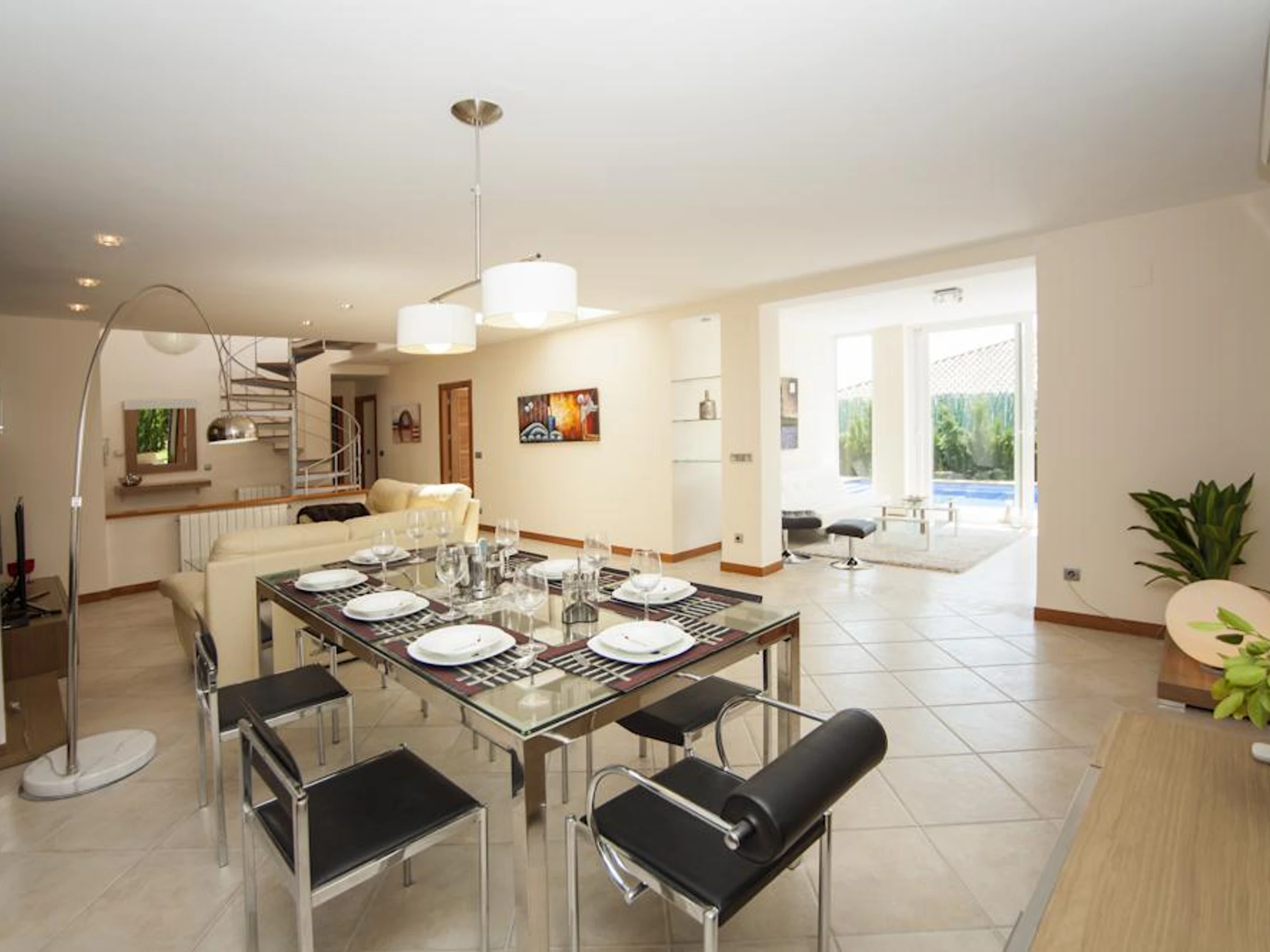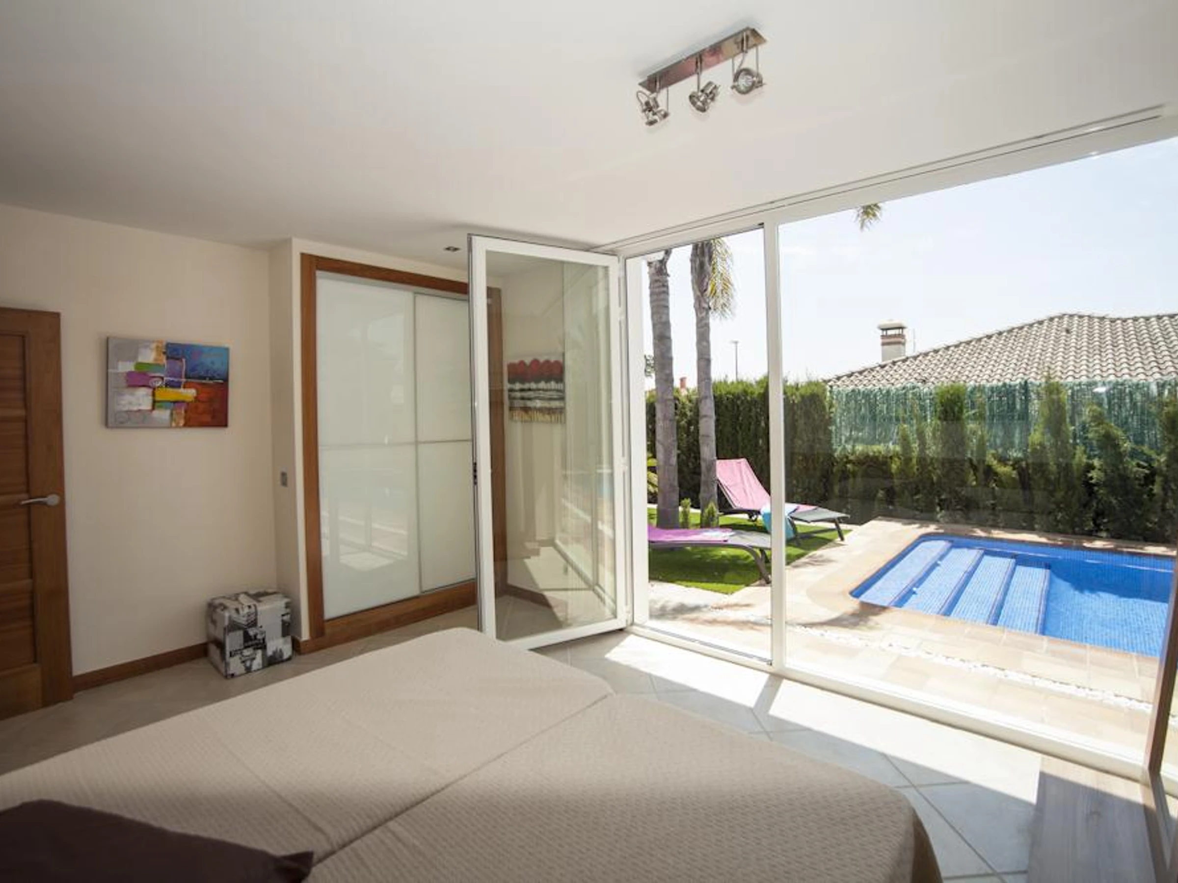 The villa has 4 bedrooms and 3 bathrooms, spread over 2 levels. The