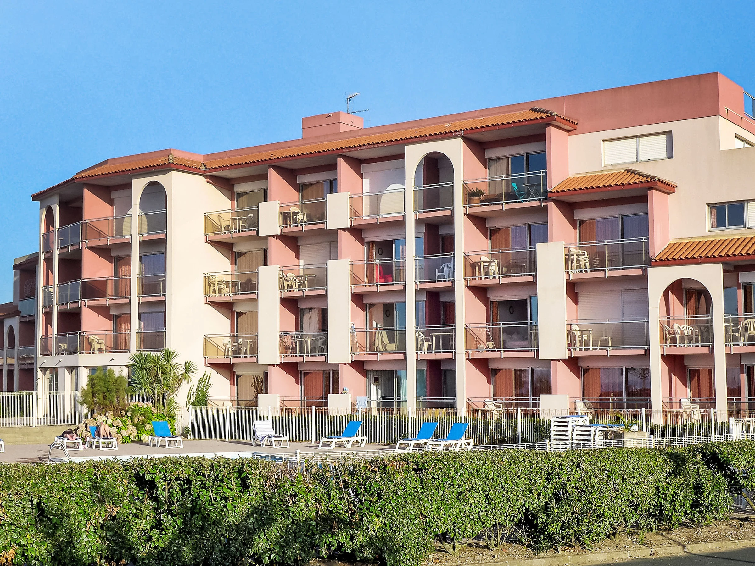 Anglet 1 km from Biarritz: Residence "Mer et Golf", 4 storeys. In the resort 1 km from the centre of Biarritz, 400 m from the sea, 400 m from the beach, road to cross. For shared use: swimming pool fenced (10 x 6 m, seasonal availability: [hidden] - [hidden] Children's pool. In the complex: spa area (extra), lift, washing machine, tumble dryer (extra). Shop 500 m, grocery 500 m, supermarket 500 m, restaurant 50 m, bar 50 m, bakery, café, bus stop "Mer et Golf" 50 m, railway station "La Négresse" 5 km, sandy beach "Chambre d' Amour" 400 m. Golf course (18 hole) 300 m, surf school 900 m, indoor tennis centre 3.7 km. Nearby attractions: Phare de Biarritz 600 m, Aquarium 2.7 km. Hiking paths: La Rhune 38 km. Please note: airfield 4 km from the property.