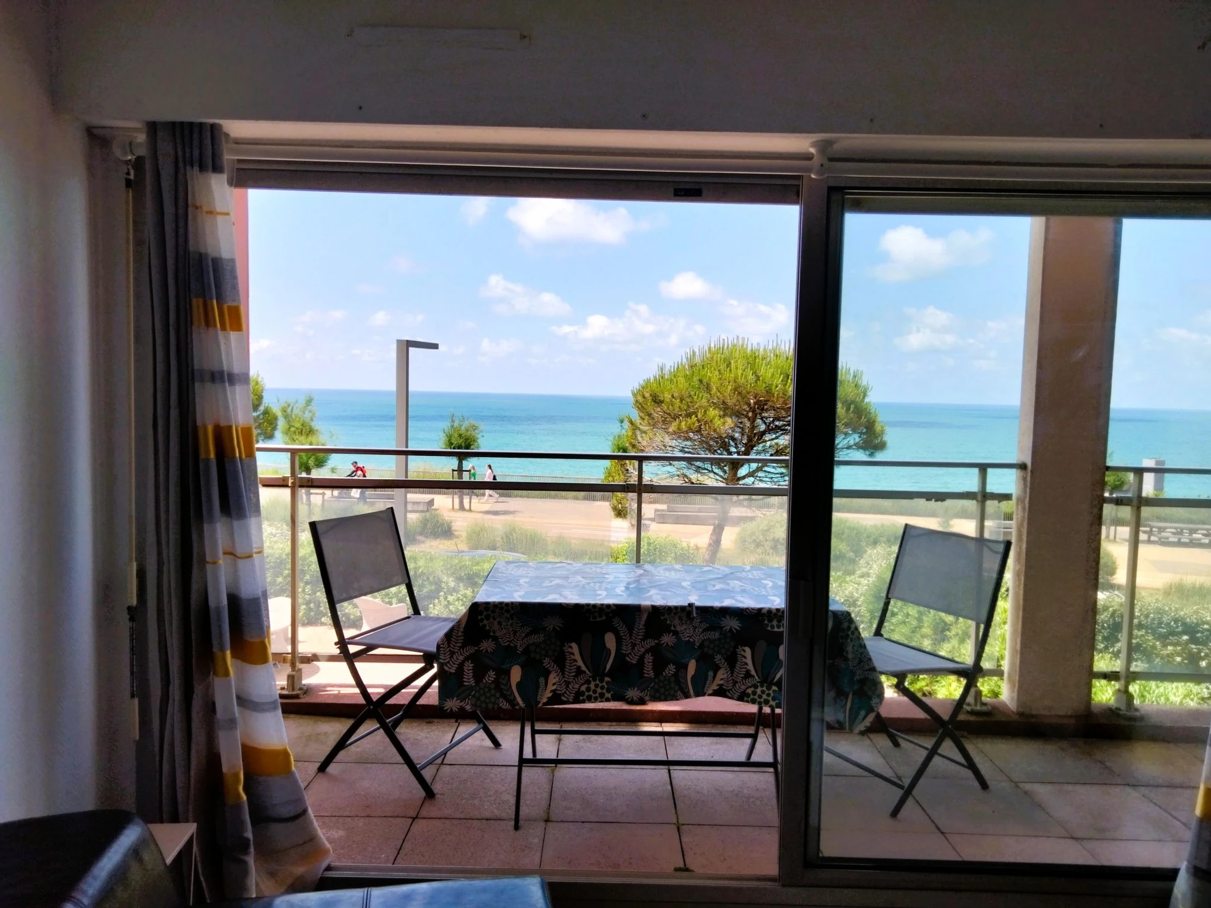 2-room apartment 29 m2 on 1st floor. Object suitable for 2 adults + 2 children. Renovated in 2024, comfortable and beautiful furnishings: living/dining room with TV (flat screen). Exit to the balcony. 1 room with 1 french bed (140 cm, length 190 cm). Exit to the balcony. Alcove with 1 x 2 bunk beds (70 cm, length 190 cm). Kitchenette (dishwasher, 2 ceramic glass hob hotplates, toaster, kettle, microwave, electric coffee machine). Bathroom, sep. WC. Electric heating. Large balcony 10 m2, west facing position. Balcony furniture. Very beautiful panoramic view of the sea. Facilities: iron, hair dryer. Internet (WiFi, extra). Please note: suitable for families. Non-smokers only. Smoke alarm. Offer by a private individual according to Art. 155, IV of CGI. [hidden]