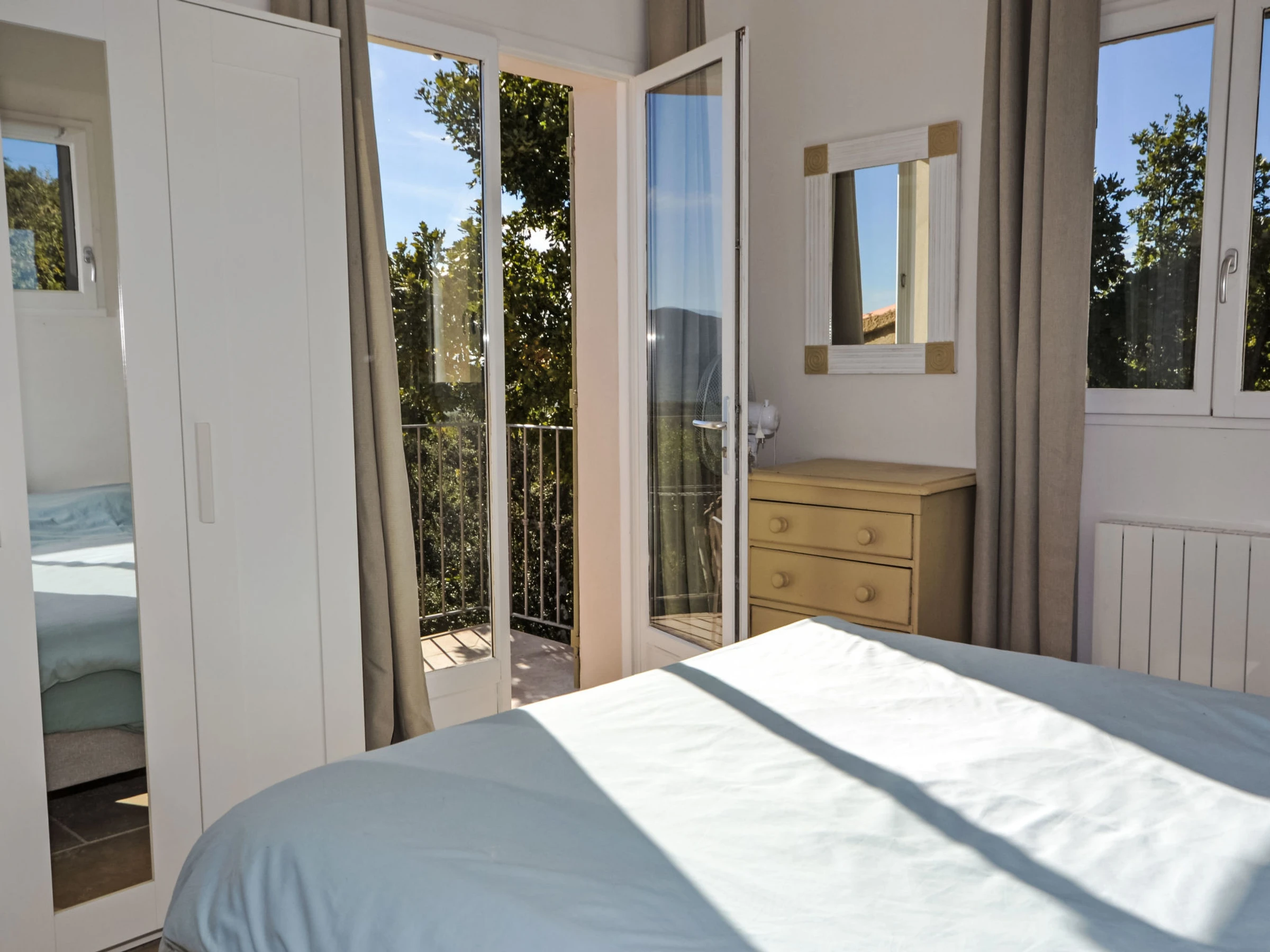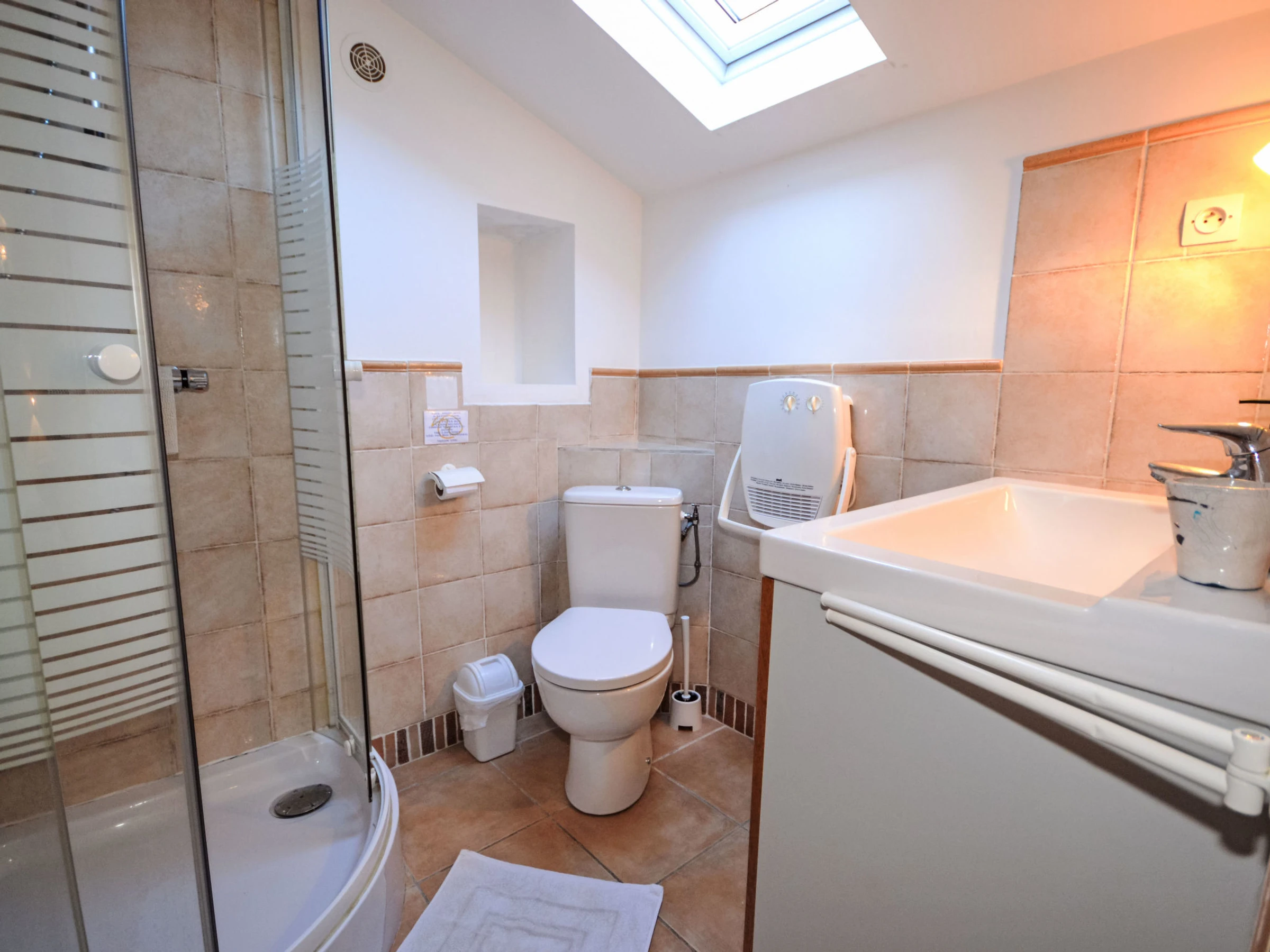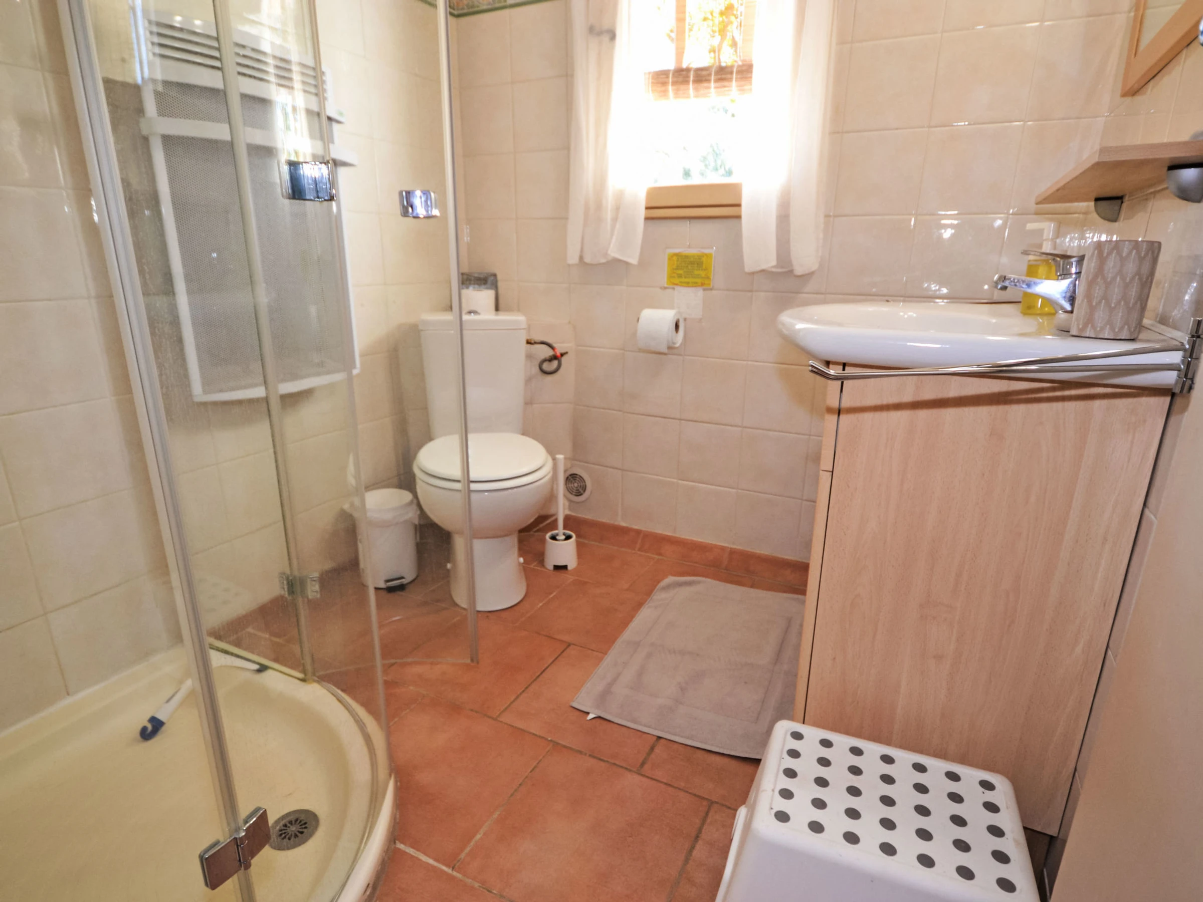 6-room house 160 m2 on 2 levels, south-east facing position. Beautiful furnishings: entrance hall. Living/dining room 28 m2 with open-hearth fireplace, TV, video and hi-fi system. Exit to the terrace. Living room with 1 double sofabed. 1 room with 2 beds (90 cm, length 190 cm). Exit to the garden. 1 room with 1 double bed (140 cm, length 190 cm), shower/WC. Exit to the garden. Kitchen (4 hot plates, oven, dishwasher, microwave, grill). Shower/WC. Upper floor: 1 room with 1 double bed (1 x 140 cm, length 190 cm), shower/WC. 1 room with 1 french bed (1 x 160 cm, length 200 cm), bath/WC. Exit to the balcony. Small balcony 3 m2, east facing position, terrace 35 m2. Terrace furniture, electric barbecue, deck chairs. Panoramic view of. Facilities: washing machine. Internet (WiFi, free). Please note: suitable for families. Smoke alarm. The pool mentioned in the description is for private use.