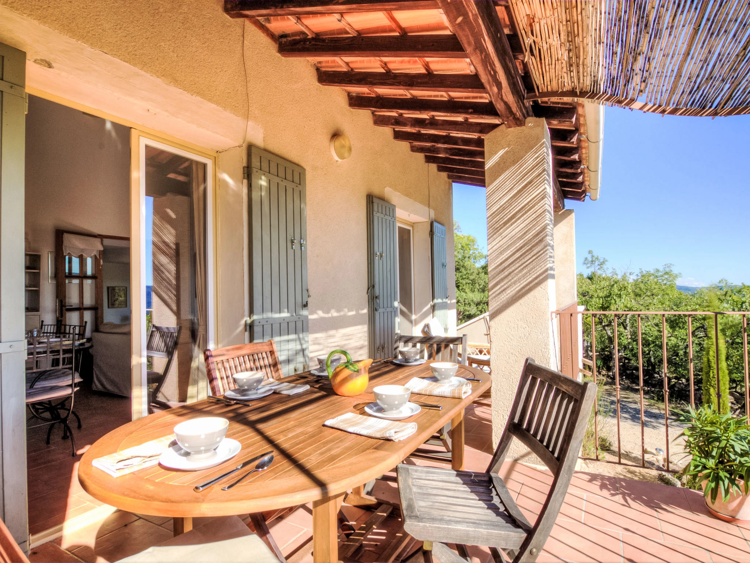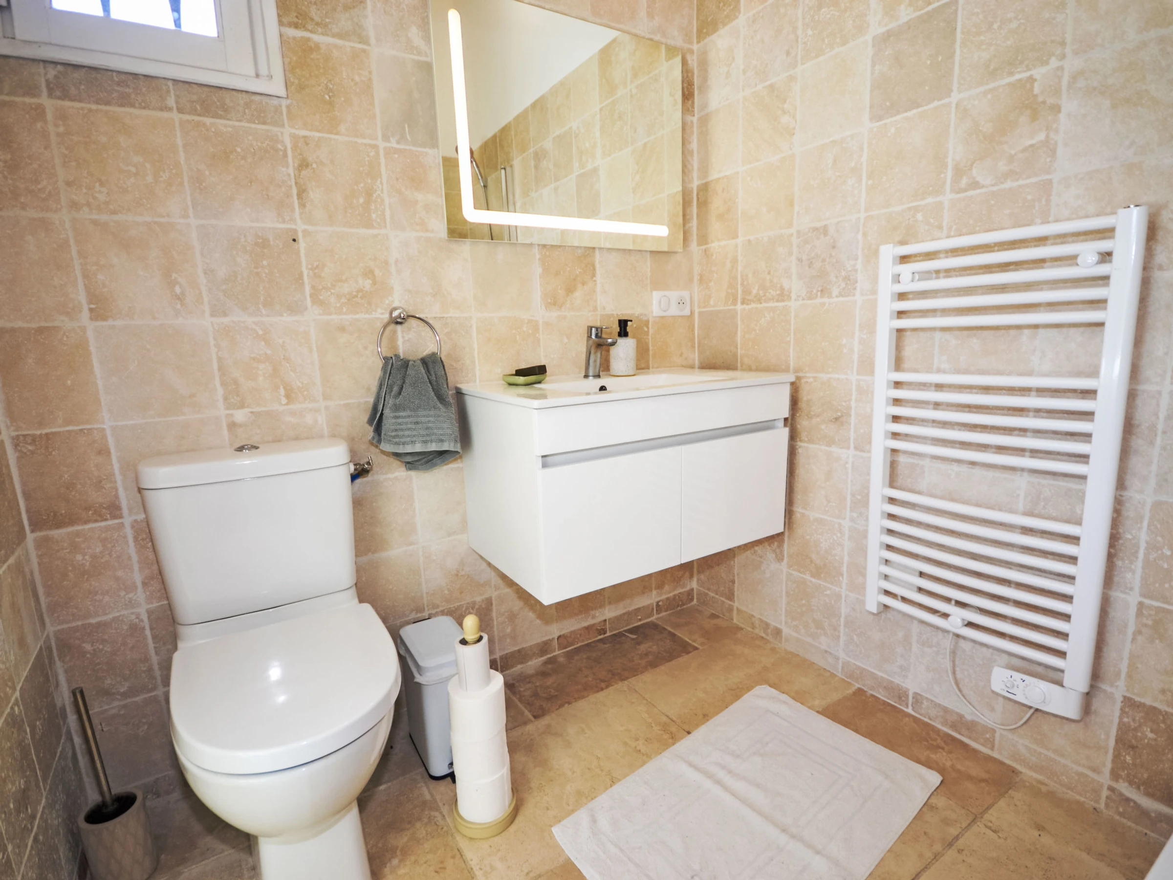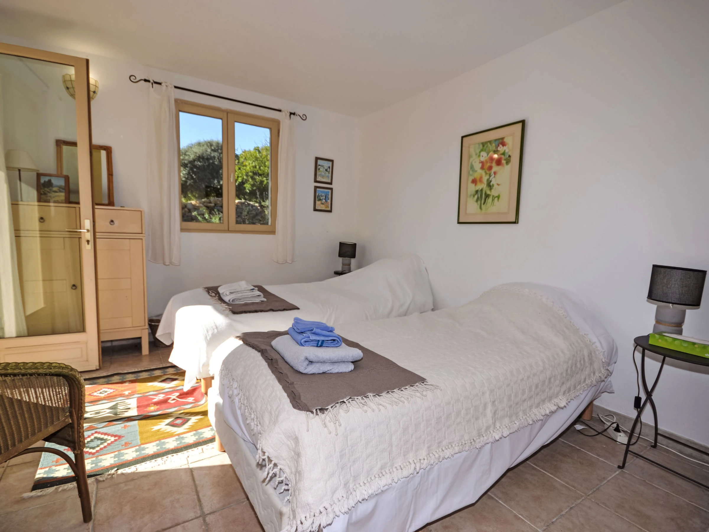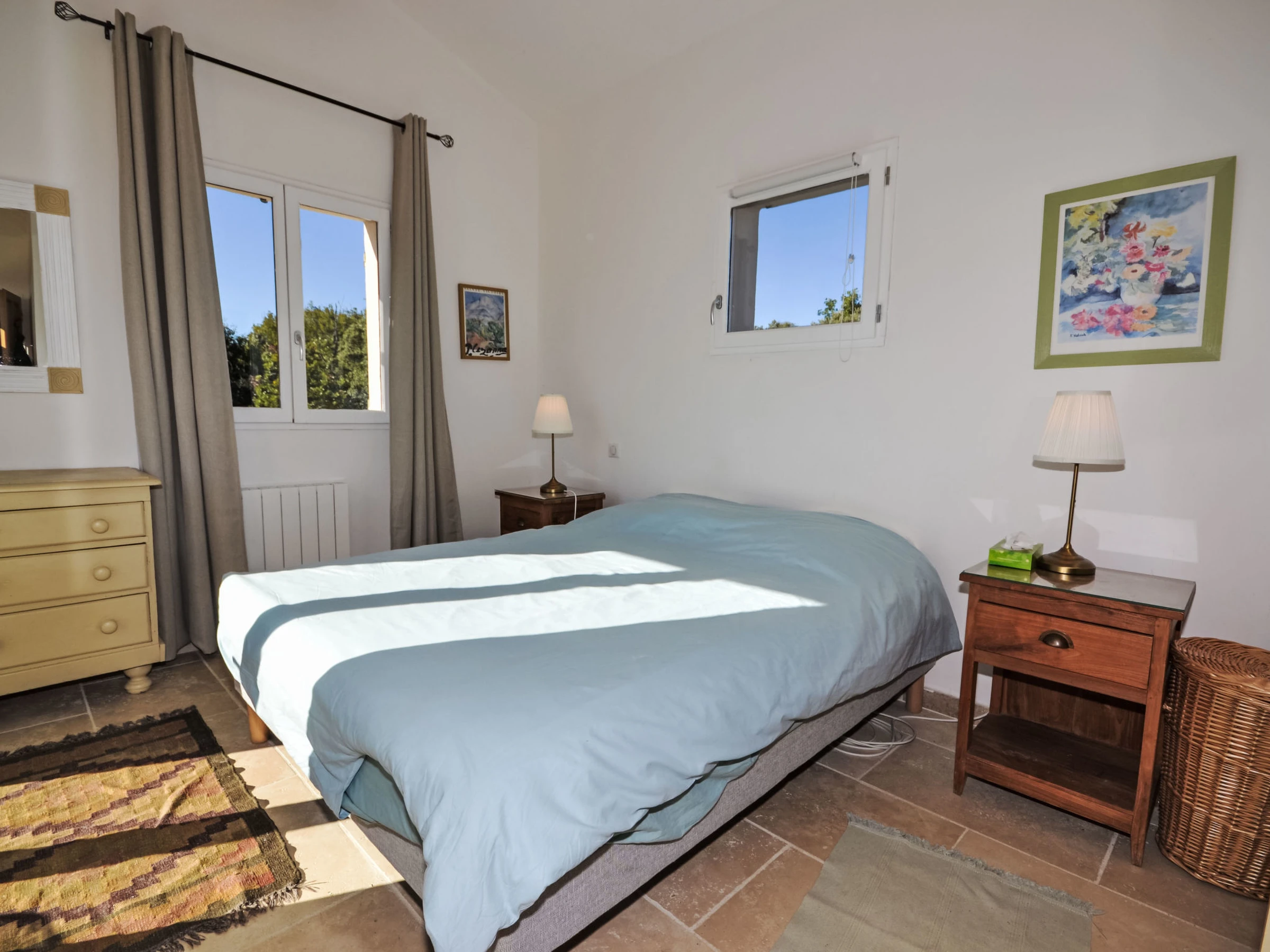 6-room house 160 m2 on 2 levels, south-east facing position. Beautiful furnishings: entrance hall. Living/dining room 28 m2 with open-hearth fireplace, TV, video and hi-fi system. Exit to the terrace. Living room with 1 double sofabed. 1 room with 2 beds (90 cm, length 190 cm). Exit to the garden. 1 room with 1 double bed (140 cm, length 190 cm), shower/WC. Exit to the garden. Kitchen (4 hot plates, oven, dishwasher, microwave, grill). Shower/WC. Upper floor: 1 room with 1 double bed (1 x 140 cm, length 190 cm), shower/WC. 1 room with 1 french bed (1 x 160 cm, length 200 cm), bath/WC. Exit to the balcony. Small balcony 3 m2, east facing position, terrace 35 m2. Terrace furniture, electric barbecue, deck chairs. Panoramic view of. Facilities: washing machine. Internet (WiFi, free). Please note: suitable for families. Smoke alarm. The pool mentioned in the description is for private use.