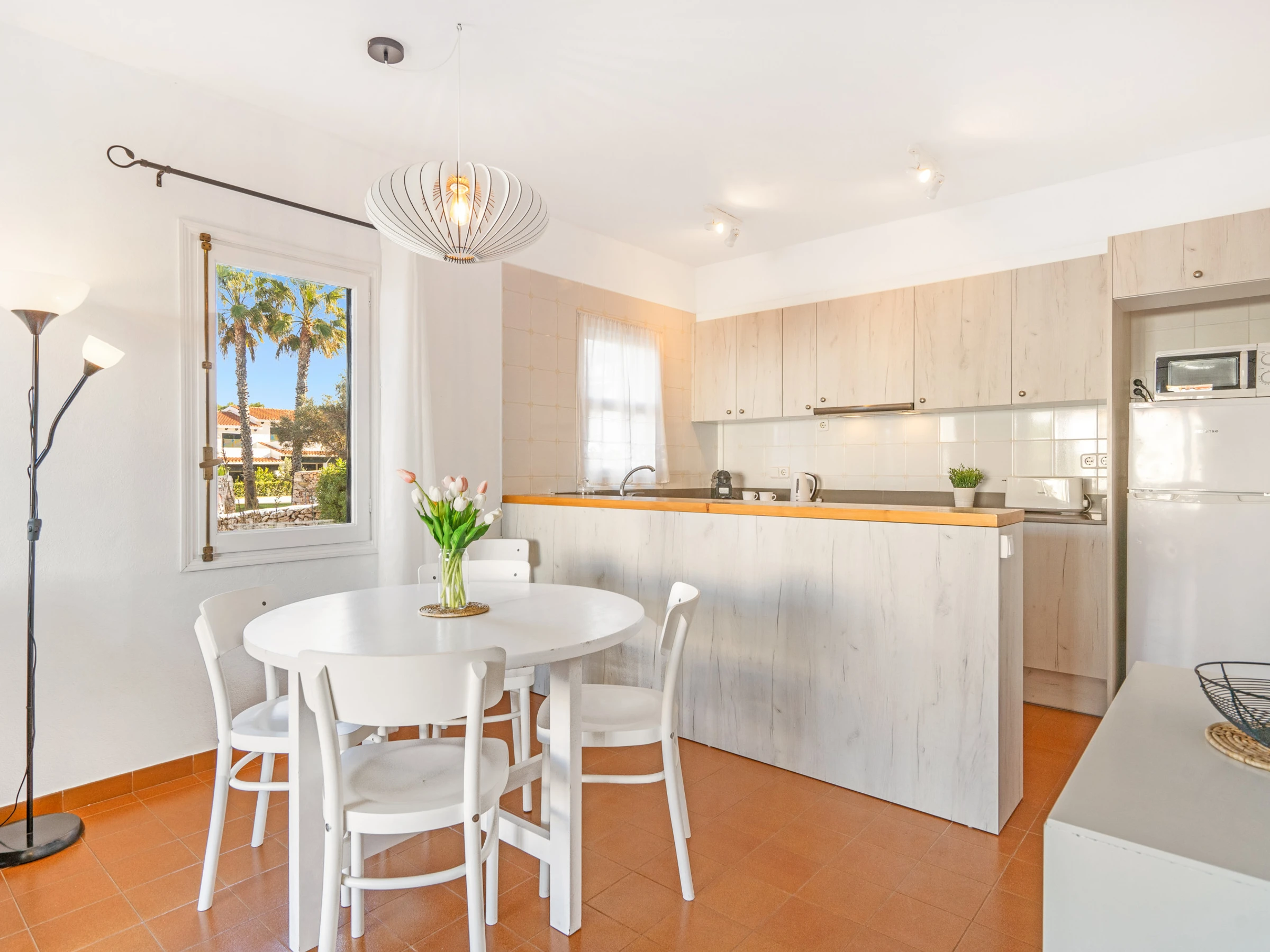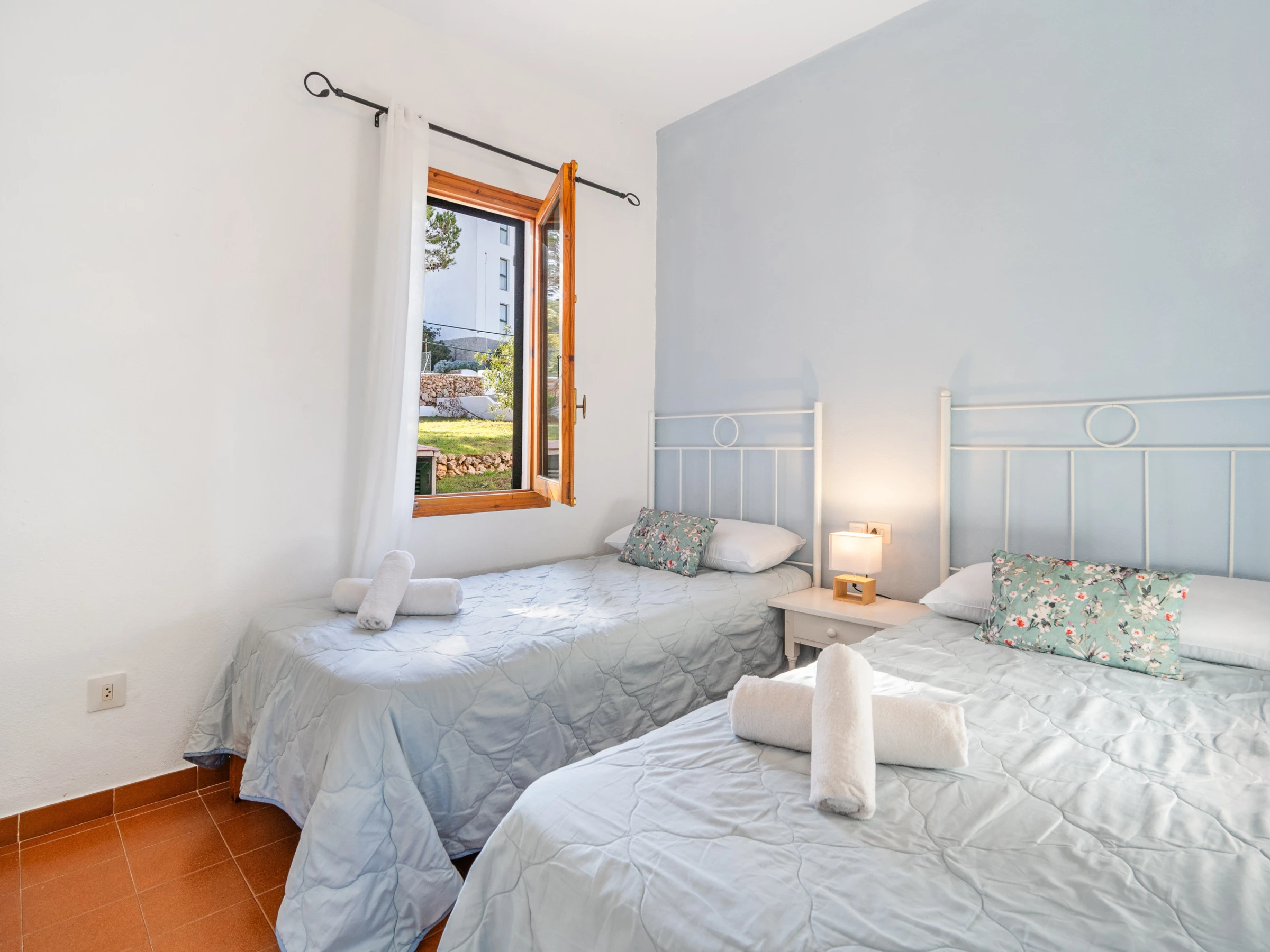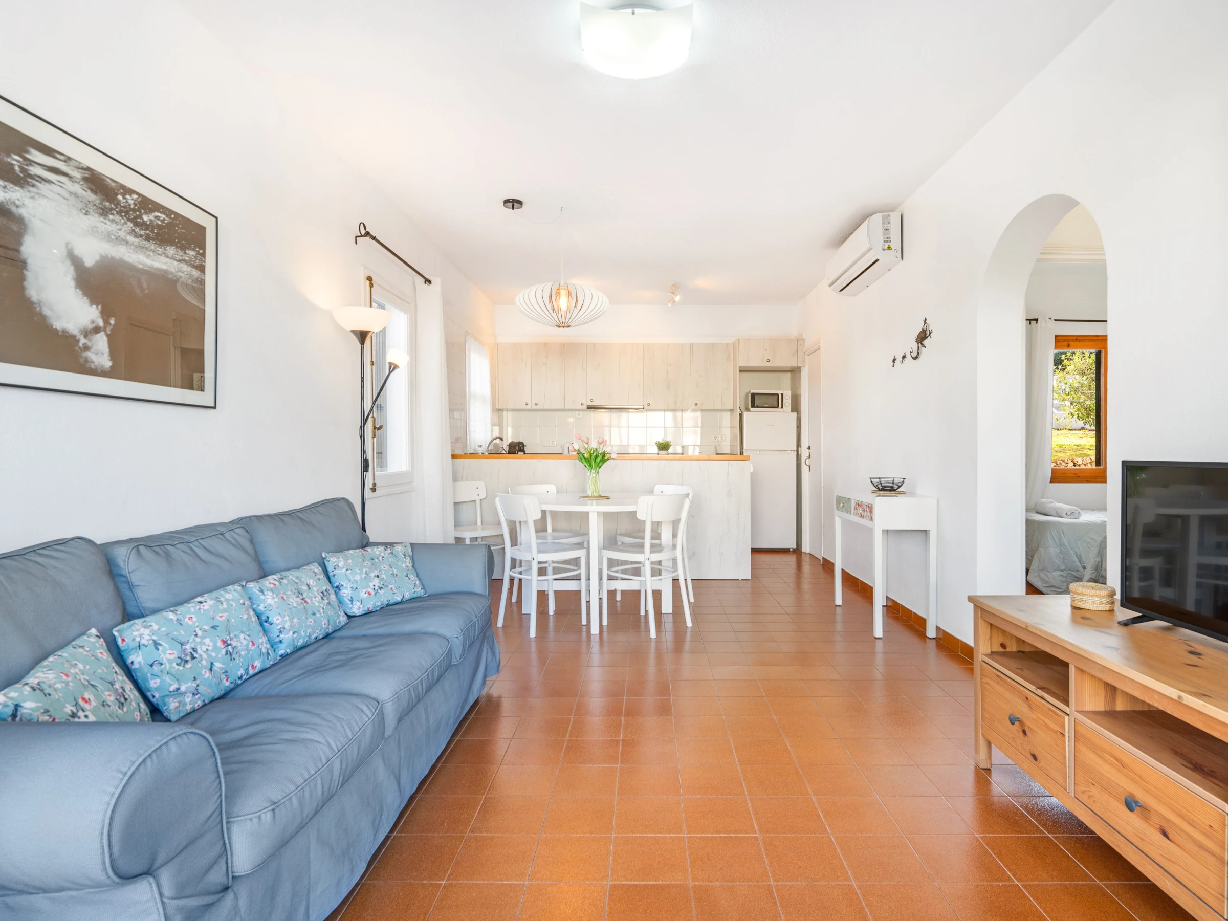 Cozy apartment just a 5 minute walk from the Arenal de'n Castell beach. The apartment is located in a community with a shared garden and pool. Very quiet residential area with a family atmosphere. About 200 meters away there are bars, restaurants, supermarkets and a shopping area. There is also a pharmacy, car rental... ideal for a family vacation.