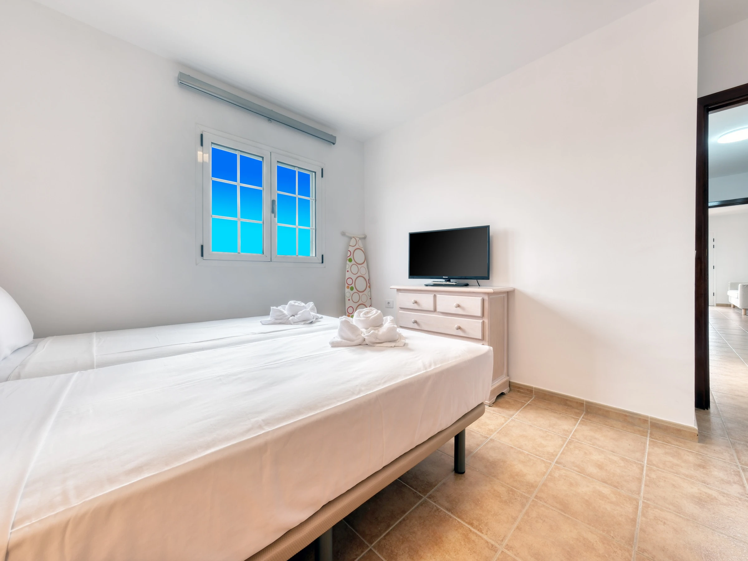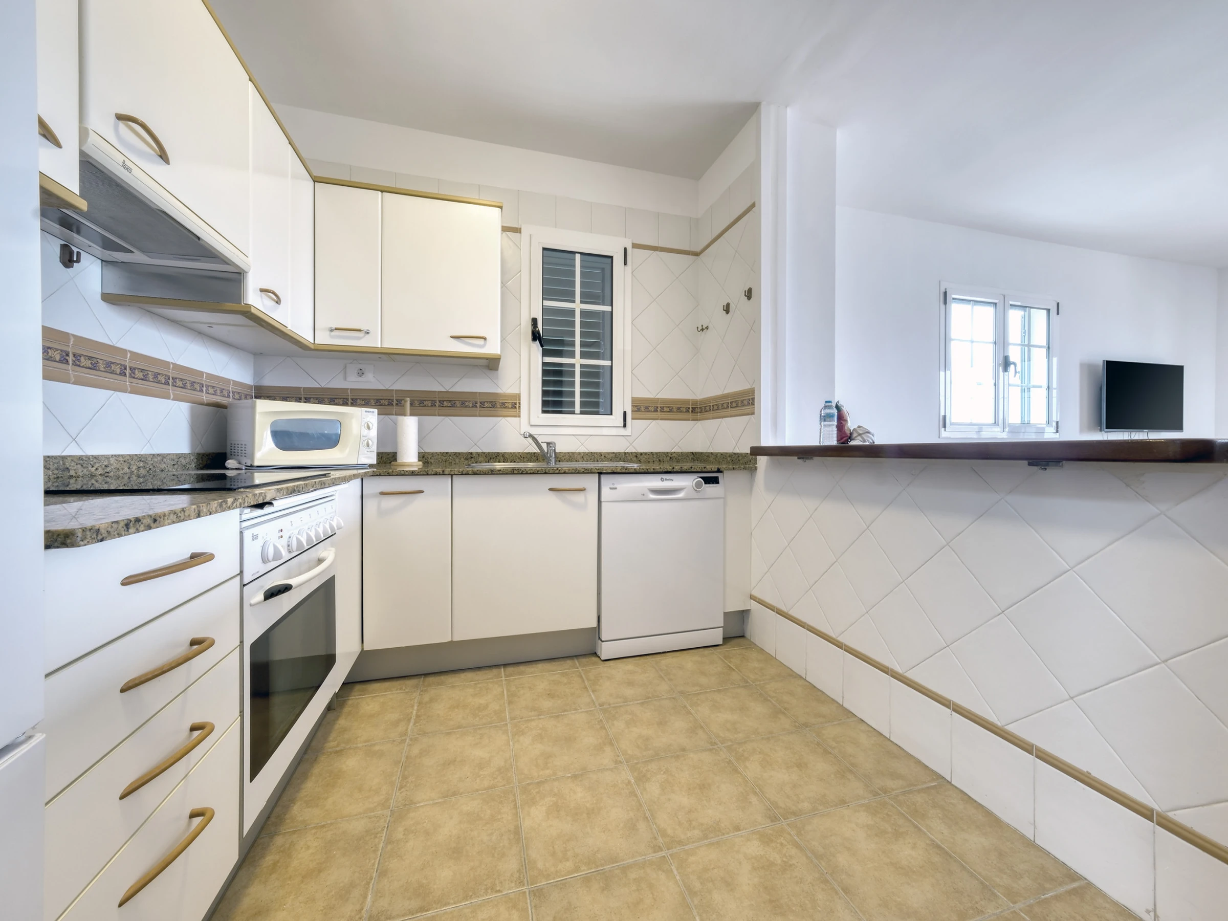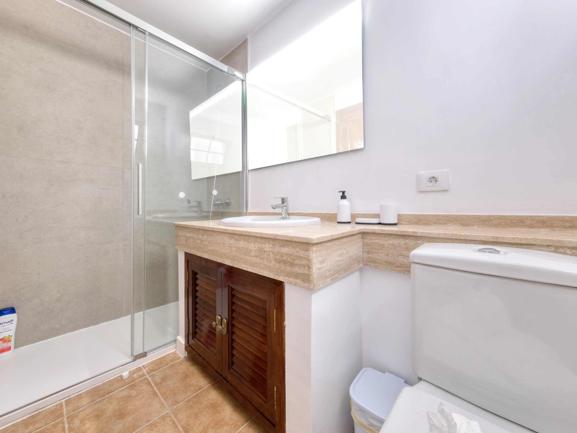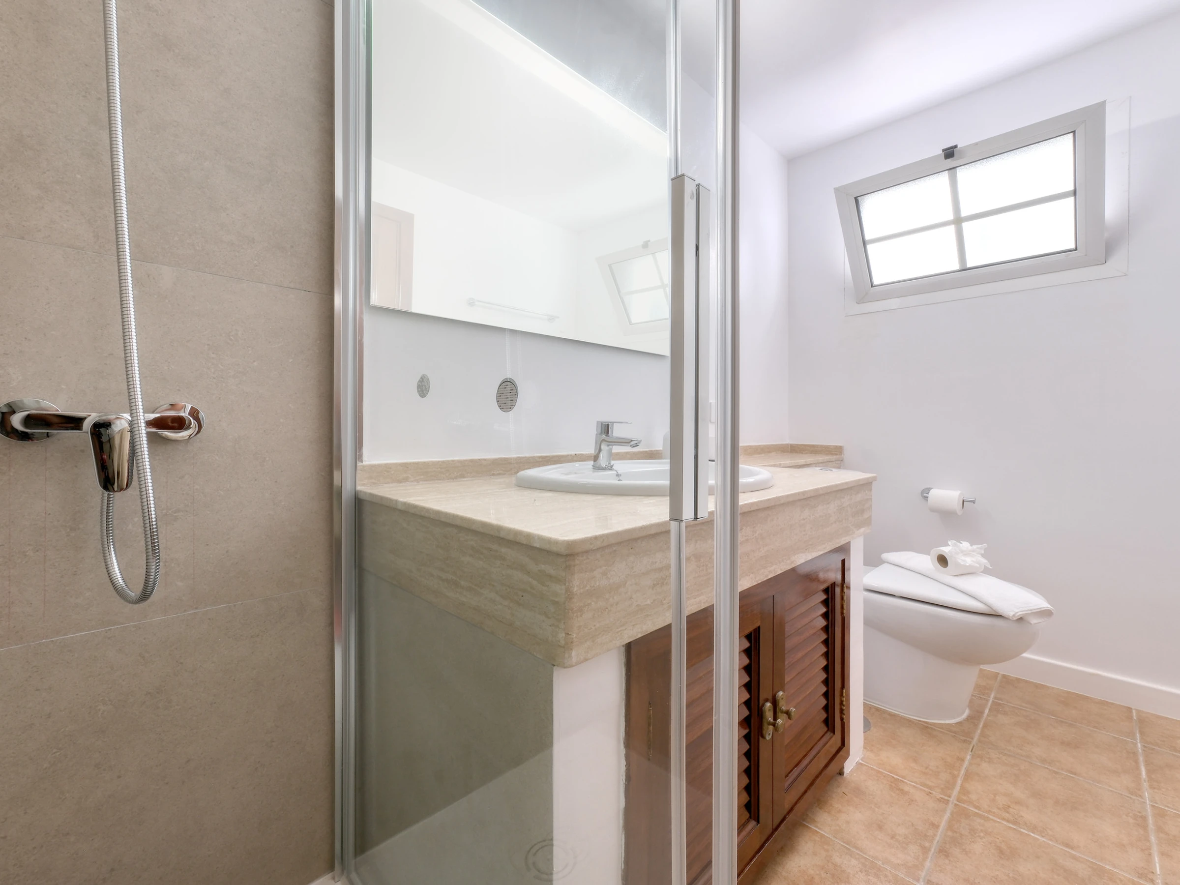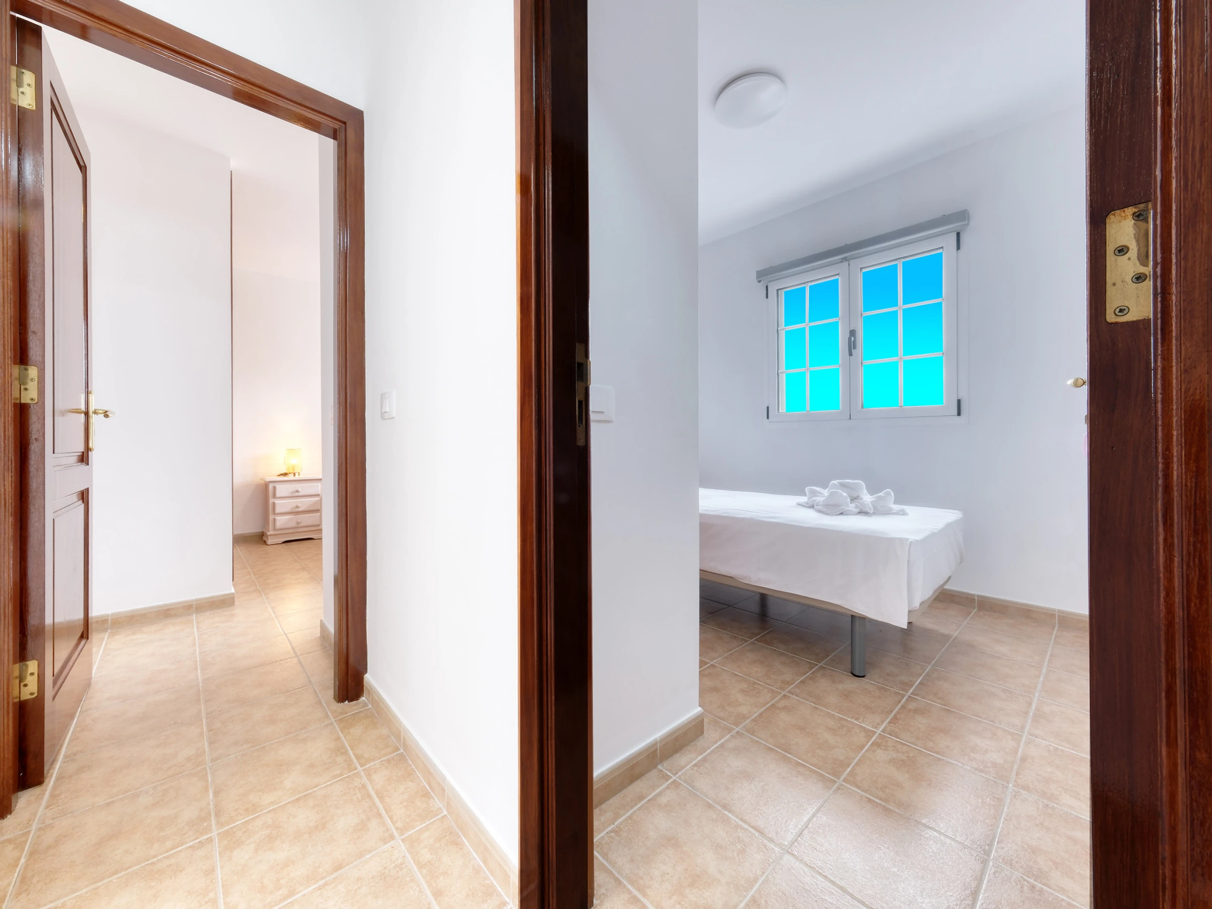 The distribution includes 2 bright bedrooms: one with a single bed and another with two single beds that, upon request, can be converted into a double bed. Both have built-in wardrobes. Additionally, the property has a bathroom with a shower and washing machine for greater comfort.