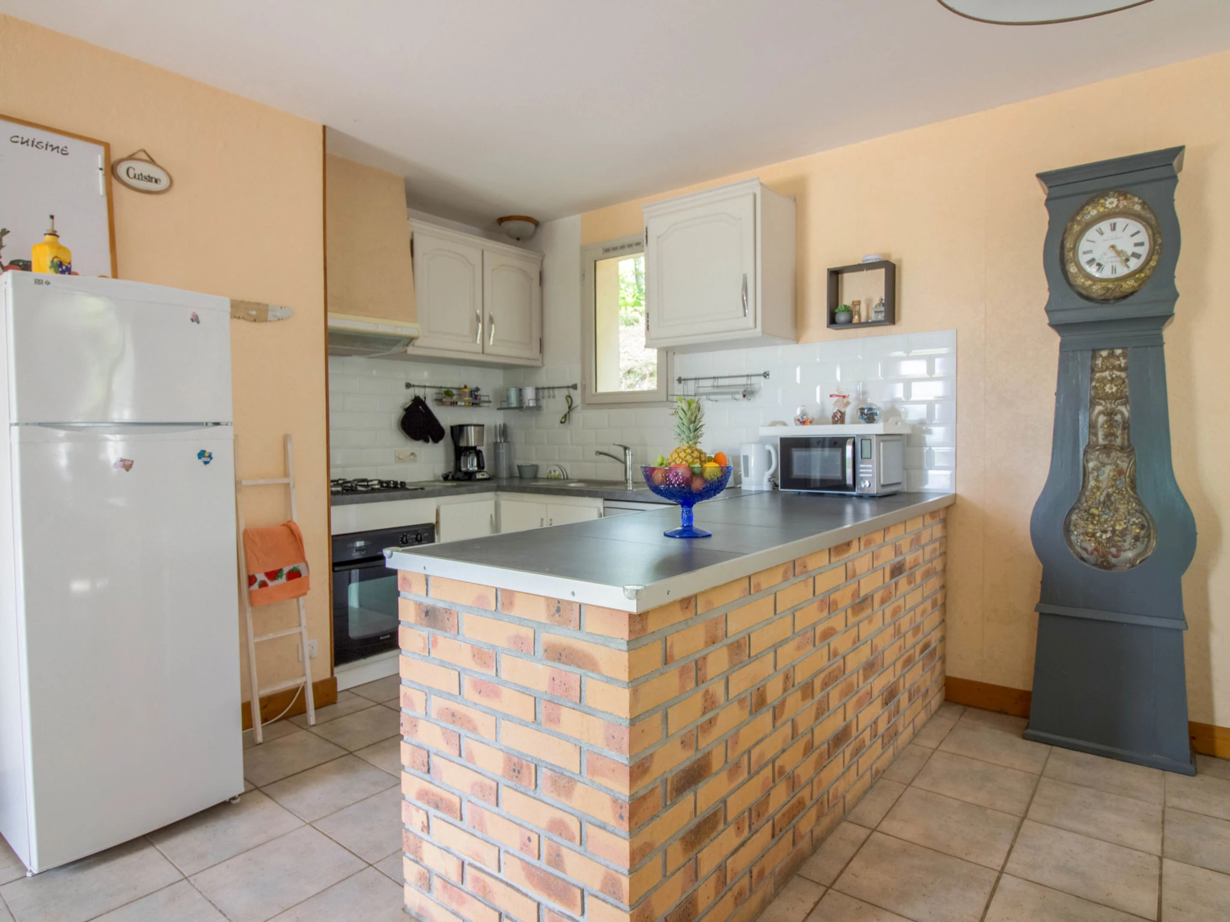 "Chastagnol", 3-room house 60 m2. Practical and beautiful furnishings: living/dining room with open-hearth fireplace (only for decoration), satellite TV (flat screen). Exit to the terrace. 1 room with 1 french bed (140 cm, length 190 cm). 1 room with 2 beds (80 cm, length 190 cm). Open kitchen (oven, dishwasher, 4 gas rings, toaster, kettle, microwave, freezer, electric coffee machine). Shower, sep. WC. Electric heating. Terrace. Terrace furniture, barbecue (portable). Facilities: washing machine, iron, children's high chair, baby cot, hair dryer. Internet (WiFi, free). Please note: non-smoking house. Smoke alarm.
