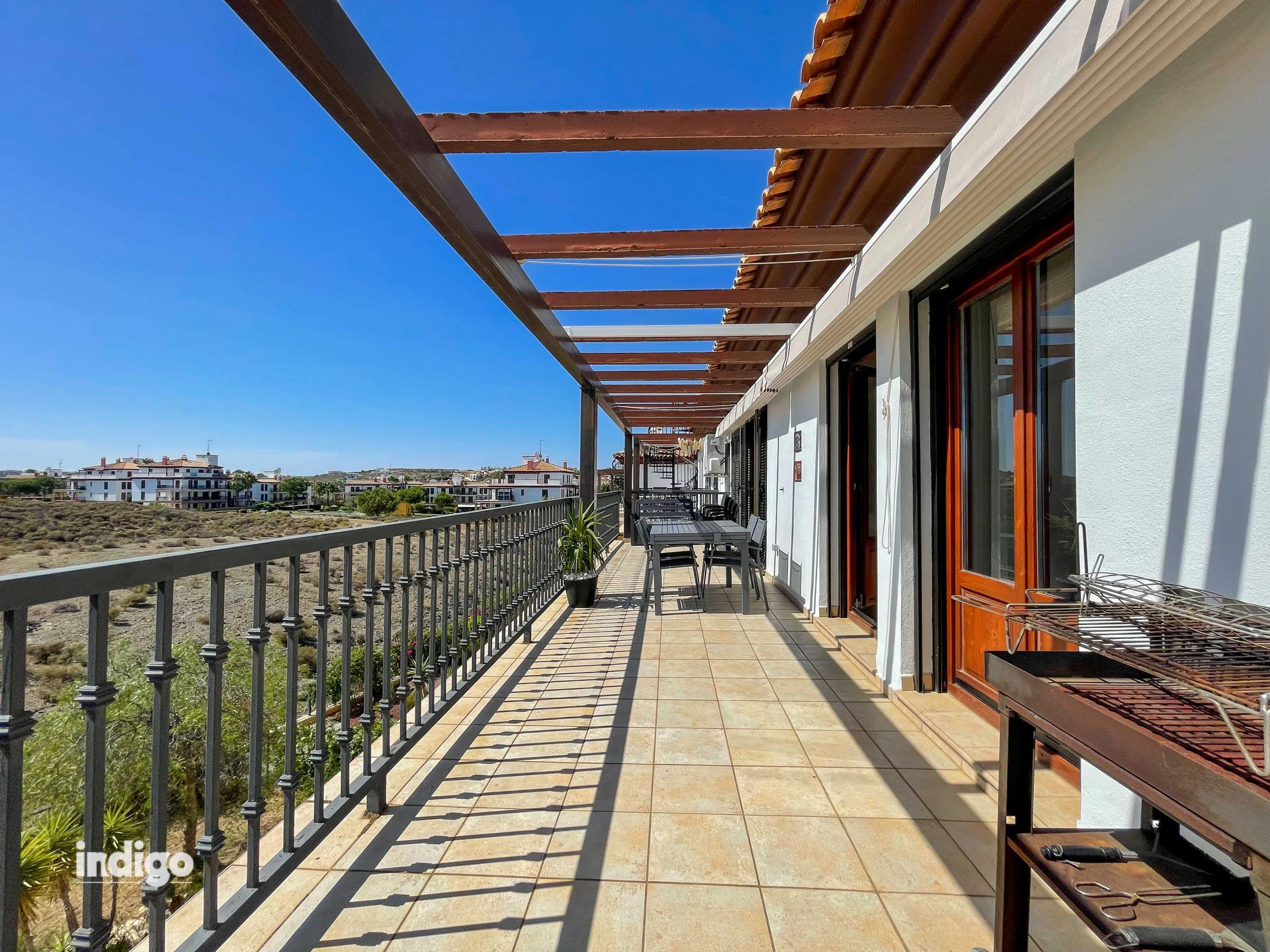 The accommodation is equipped with the following items: lift, garden furniture, 50 m² terrace, iron, internet (Wi-Fi), balcony, central heating, air-conditioned, communal swimming pool, open-air parking near the building, 1 TV, tv satellite (Languages: Spanish).