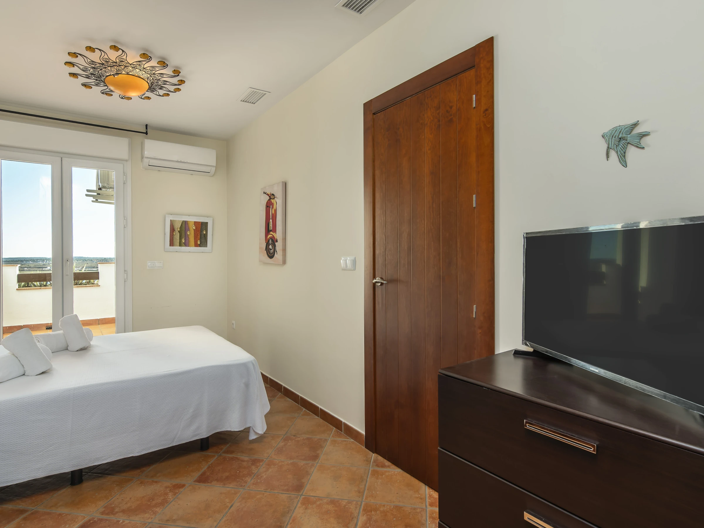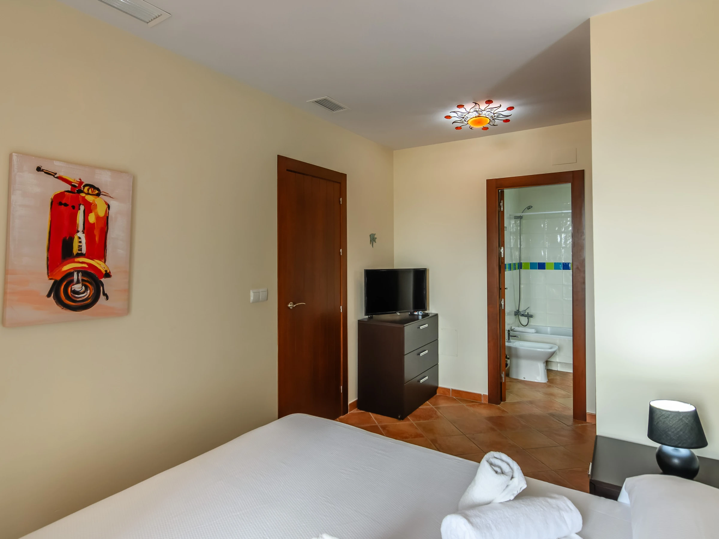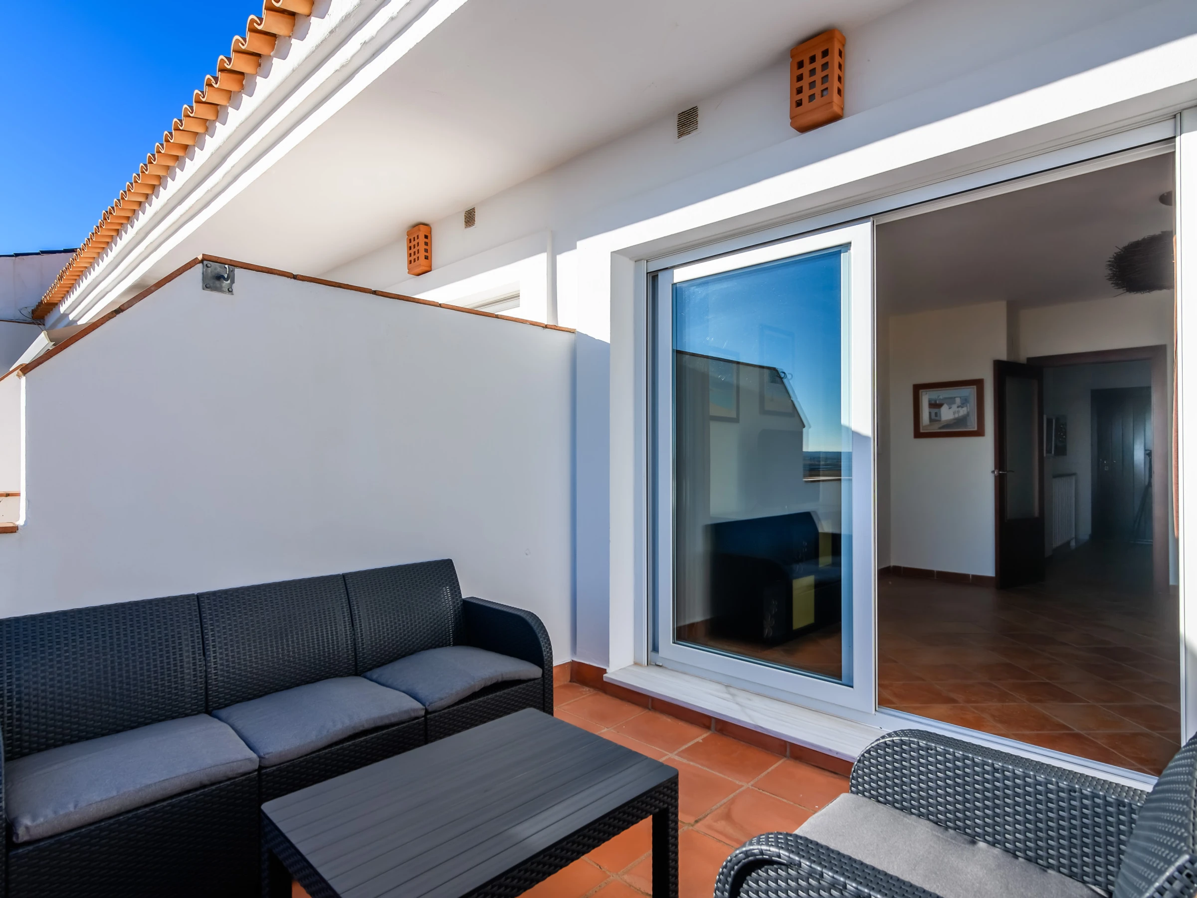The accommodation is equipped with the following items: garden furniture, 7 m² terrace, washing machine, iron, internet (Wi-Fi), hair dryer, heat pump, air conditioning in the living room and in some bedrooms, covered parking in the same building, 2 TVs.