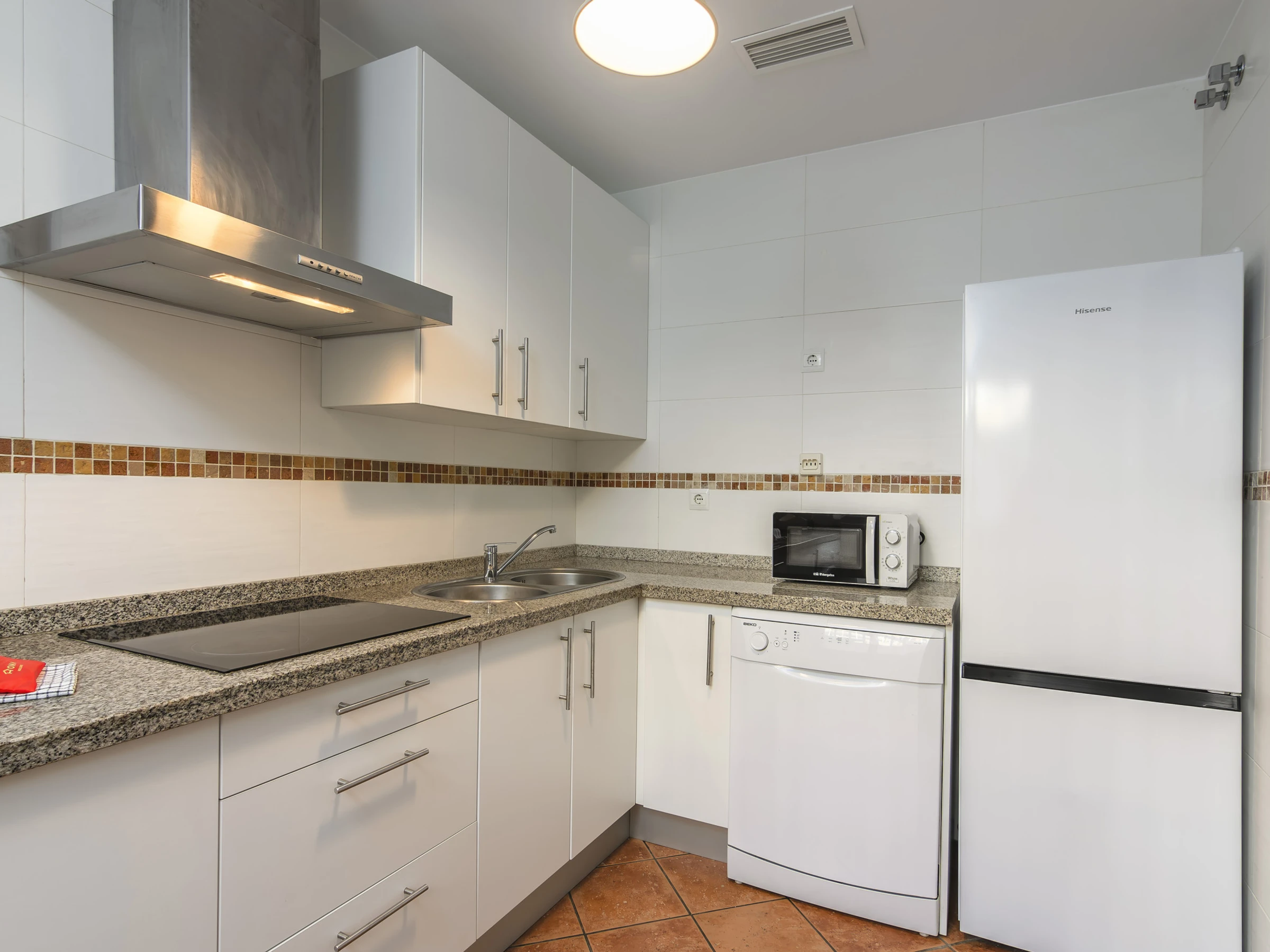 The independent kitchen, of hotplate of glass ceramics, is equipped with refrigerator, microwave, oven, freezer, dishwasher, dishes/cutlery, kitchen utensils, coffee machine, toaster and juicer.