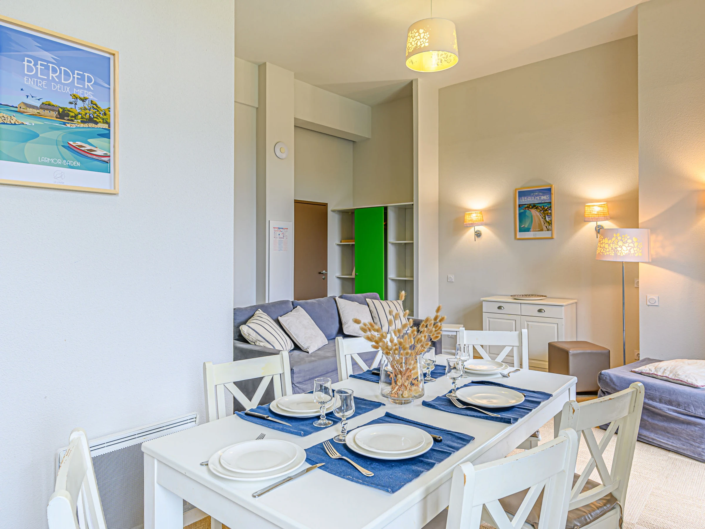 "Château De Kergonano", 3-room apartment 47 m2. Beautiful furnishings: living/dining room with 1 double sofabed (2 x 80 cm, length 190 cm), TV (flat screen). Exit to the balcony. 1 room with 1 french bed (1 x 140 cm, length 190 cm). 1 room with 1 x 2 bunk beds (90 cm, length 190 cm). Kitchenette (dishwasher, 4 ceramic glass hob hotplates, toaster, kettle, microwave, electric coffee machine). Shower, sep. WC. Electric heating. Balcony. View of the swimming pool and the garden. Facilities: Internet (WiFi, free). Parking. Please note: suitable for families. Non-smokers only. Smoke alarm. Daily cleaning and change of linen possible on request and at extra cost. Offer by a private individual according to  Art. 155, IV of CGI.
