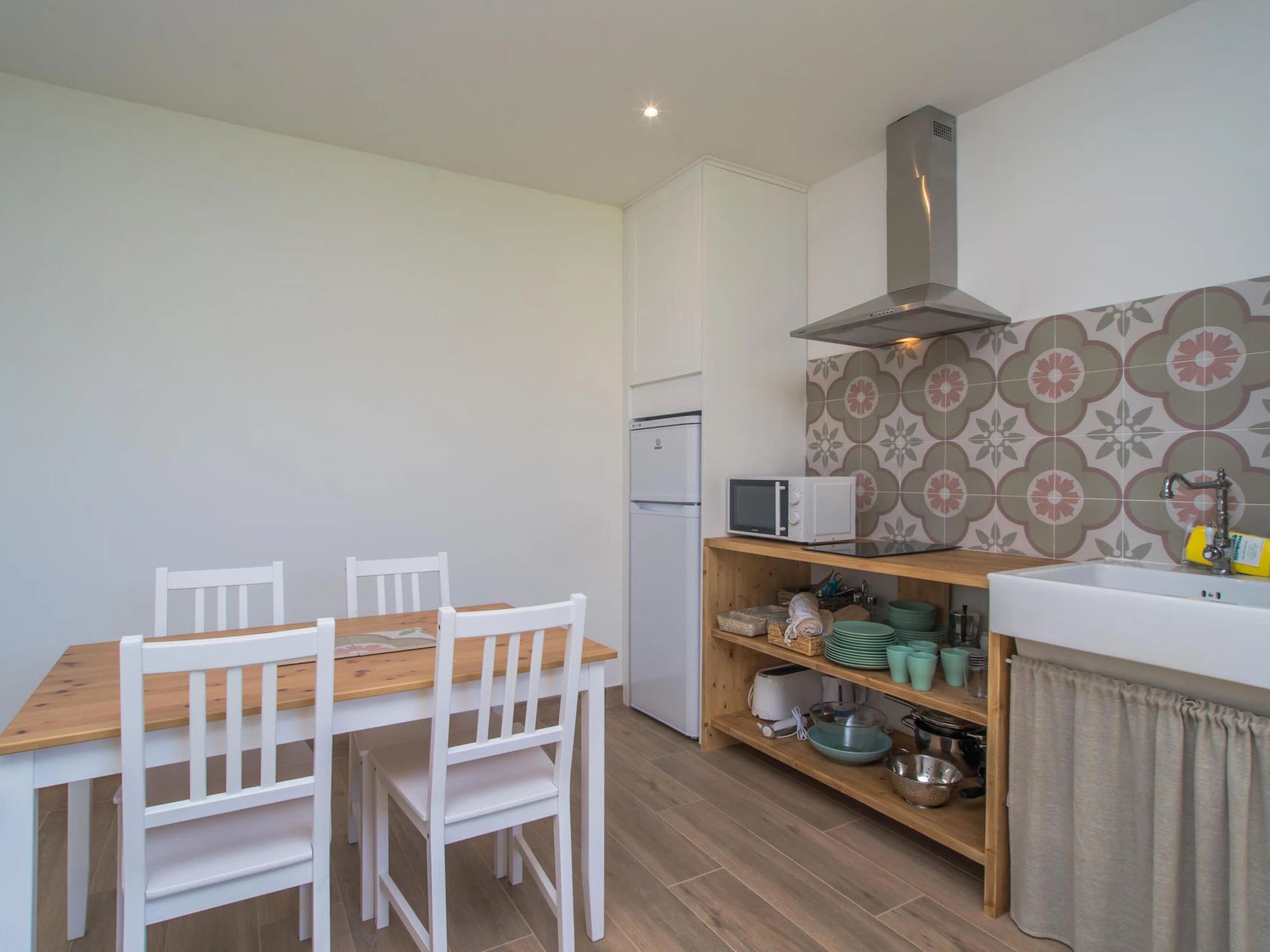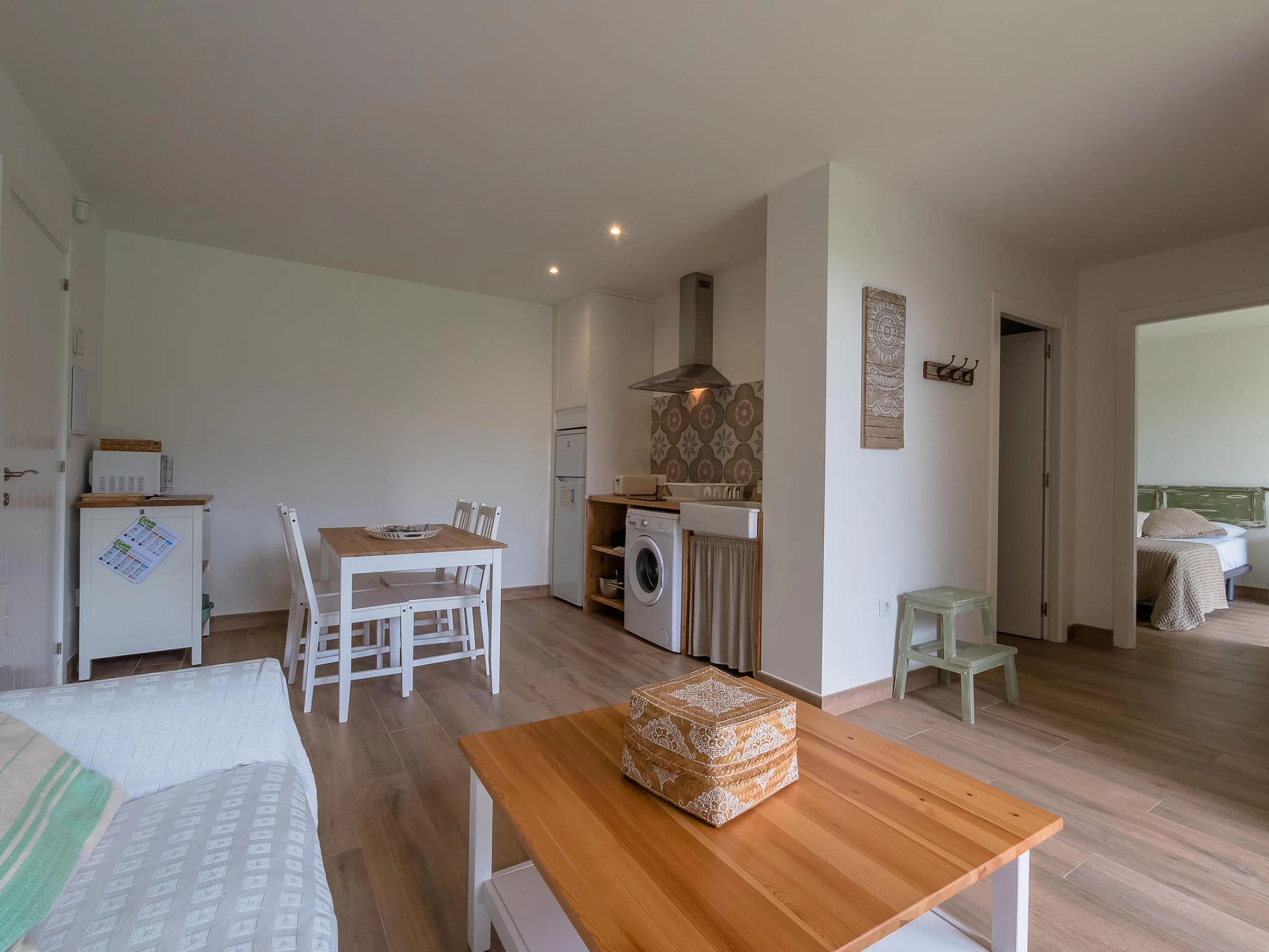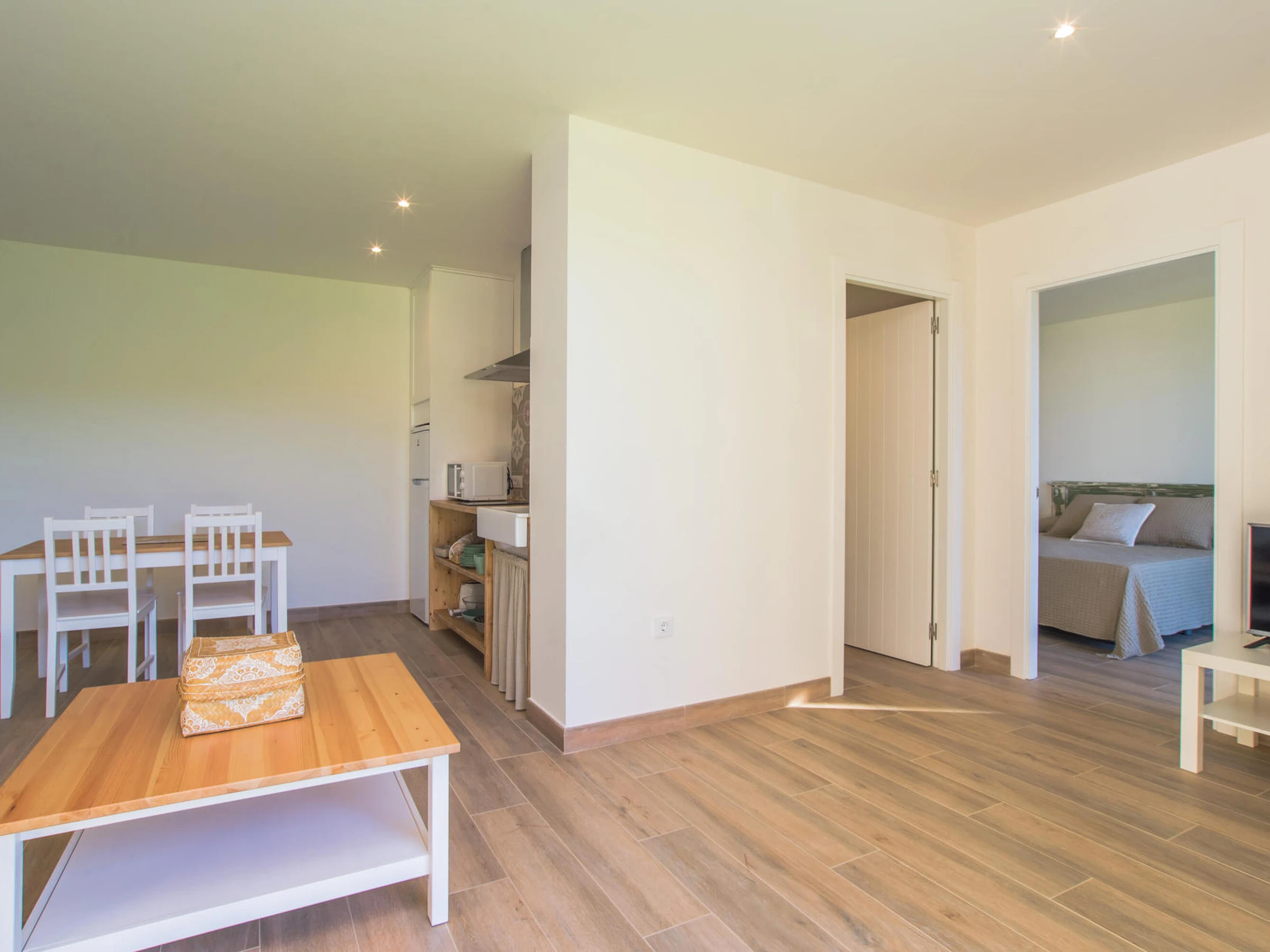 Nice brand new apartment. Located in a small community of three apartments that share a swimming pool. Begur, Costa Brava. 2 km from the center of Begur and 9 minutes by car from the beach of Sa Riera. Capacity 2 people, one room. It has a living room, open kitchen, bedroom with double bed and bathroom with shower. From the dining room there is access to the communal garden and pool. There are fans installed in the apartment. The kitchen is basically equipped. It does not have an oven. There is an extra cleaning included during your stay at no cost. You can park the vehicle inside the farm, outside parking. There is wifi on the property. TV and 3G internet service not guaranteed due to poor coverage in the area. Please let us know if you are interested, so we can have everything ready for you upon arrival. For any questions regarding this property, please do not hesitate to contact us.