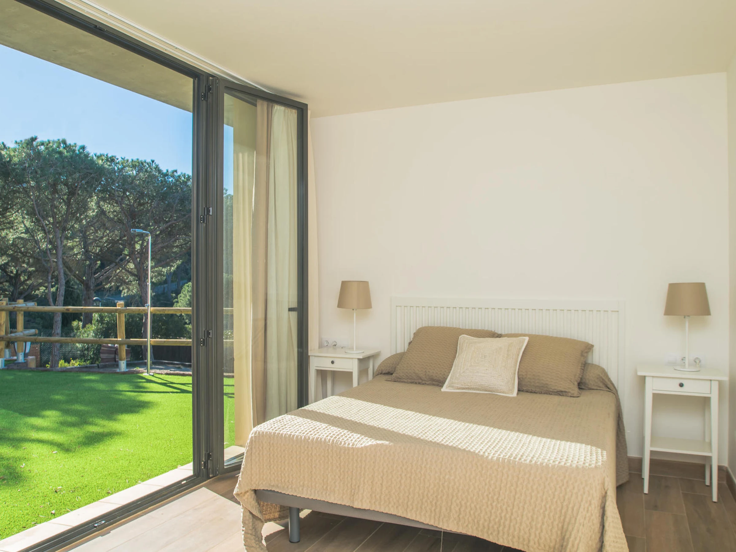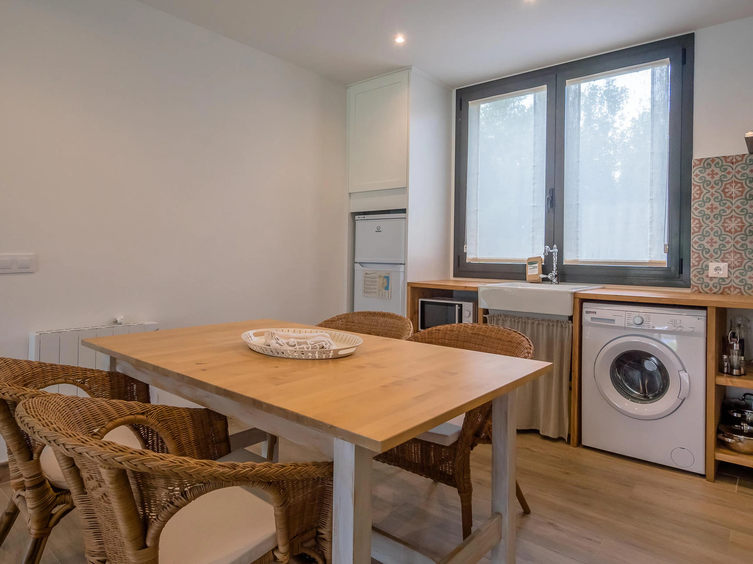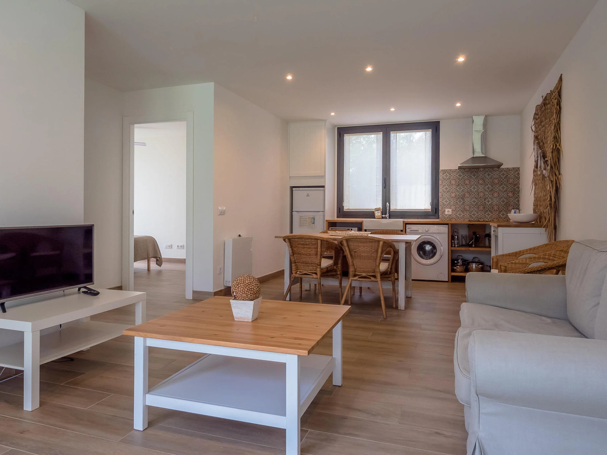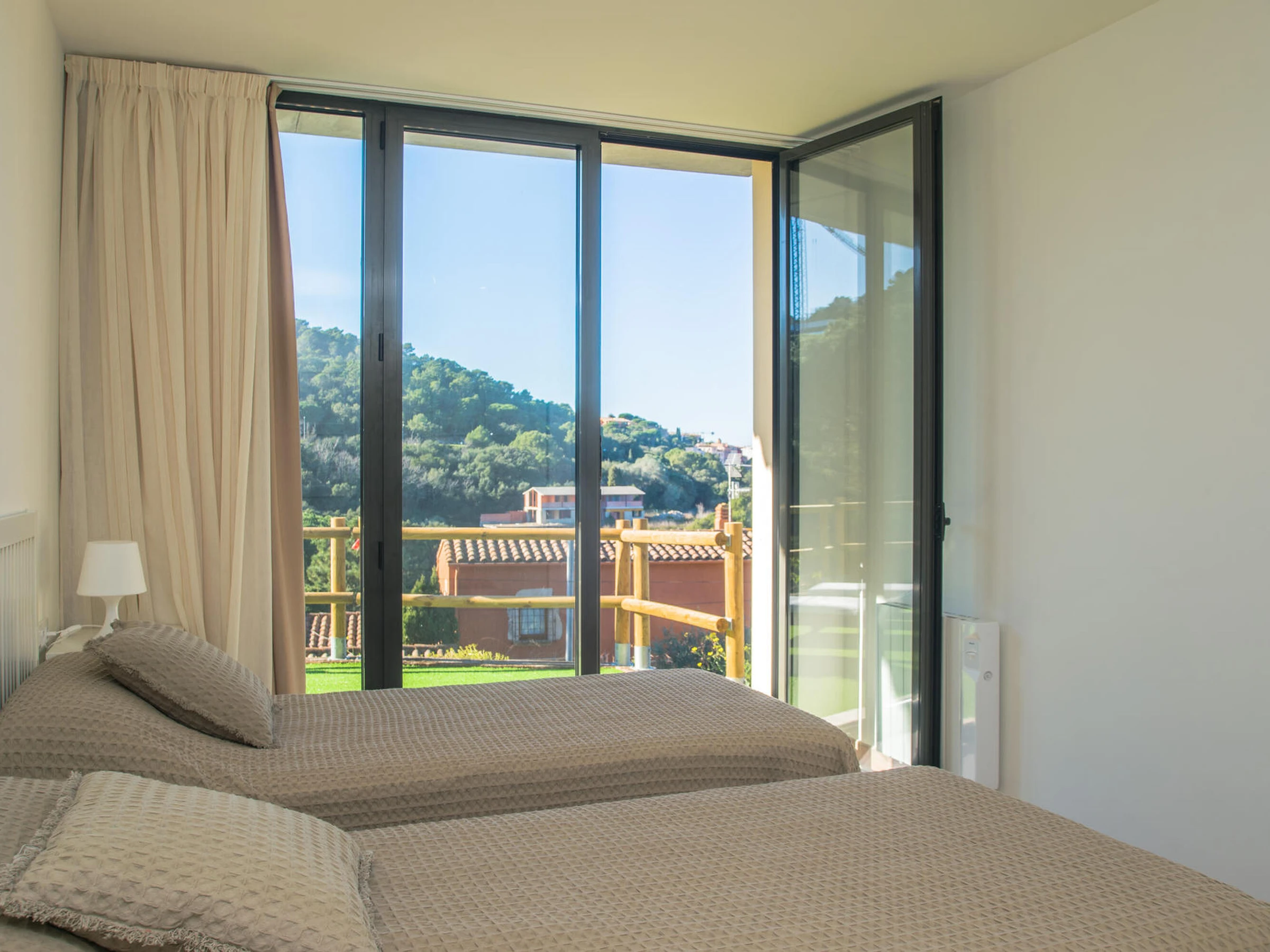 Nice brand new apartment. Located in a small community of three apartments that share a pool inBegur, Costa Brava. 2 km from the center of Begur and 9 minutes by car from the beach of Sa Riera. Capacity for 4 people, 2 bedrooms. It has an open kitchen living room, two double bedrooms, one with a double bed, the other with two single beds, a bathroom with a shower. From the dining room there is access to the communal garden and pool. There are fans installed in the apartment. The kitchen is basically equipped. It does not have an oven. There is an extra cleaning included during your stay at no cost. You can park the vehicle inside the farm, outside parking. There is wifi on the property. TV and 3G internet service not guaranteed due to poor coverage in the area. For any questions regarding this property, please do not hesitate to contact us.
