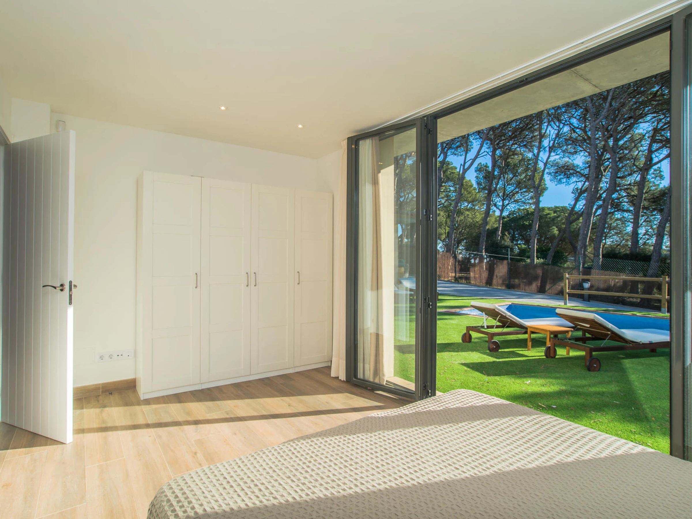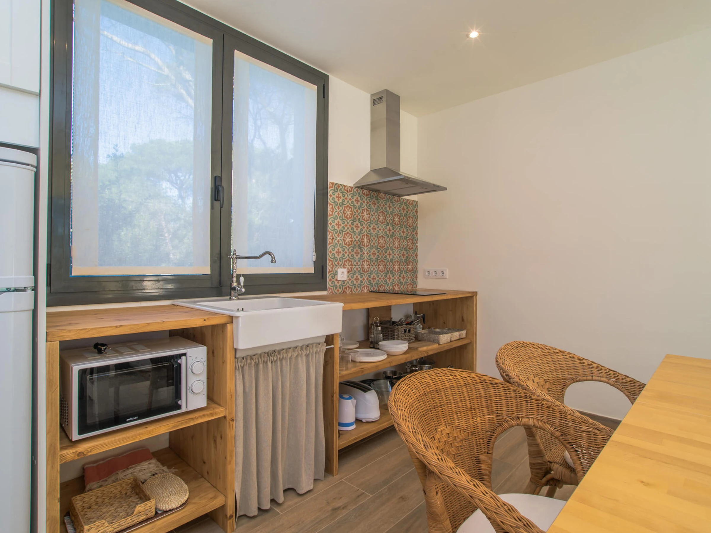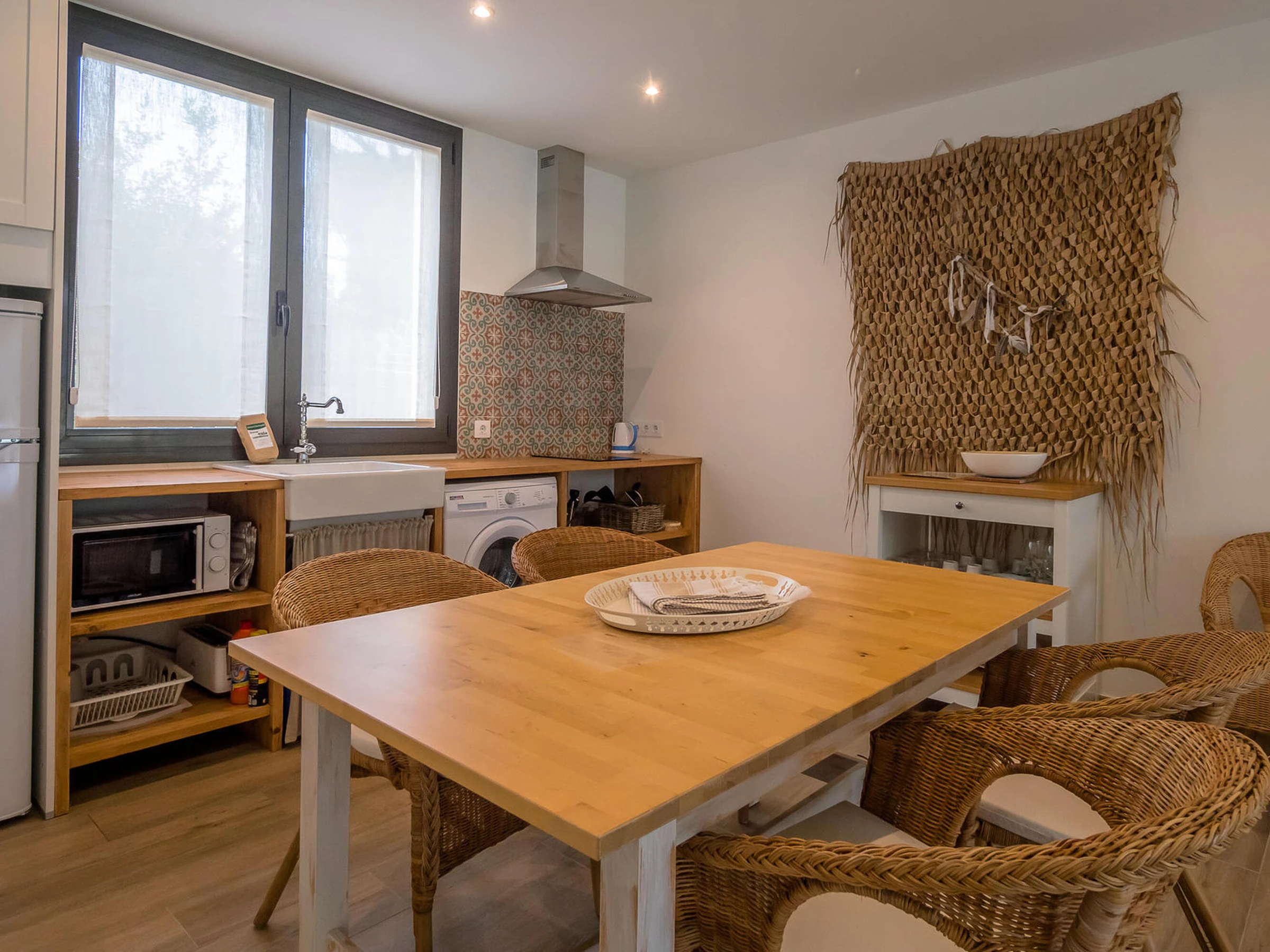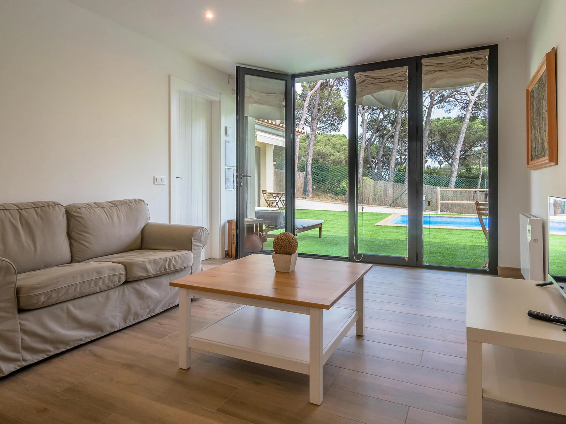 Nice brand new apartment. Located in a small community of three apartments that share a pool inBegur, Costa Brava. 2 km from the center of Begur and 9 minutes by car from the beach of Sa Riera. Capacity for 4 people, 2 bedrooms. It has an open kitchen living room, two double bedrooms, one with a double bed, the other with two single beds, a bathroom with a shower. From the dining room there is access to the communal garden and pool. There are fans installed in the apartment. The kitchen is basically equipped. It does not have an oven. There is an extra cleaning included during your stay at no cost. You can park the vehicle inside the farm, outside parking. There is wifi on the property. TV and 3G internet service not guaranteed due to poor coverage in the area. For any questions regarding this property, please do not hesitate to contact us.