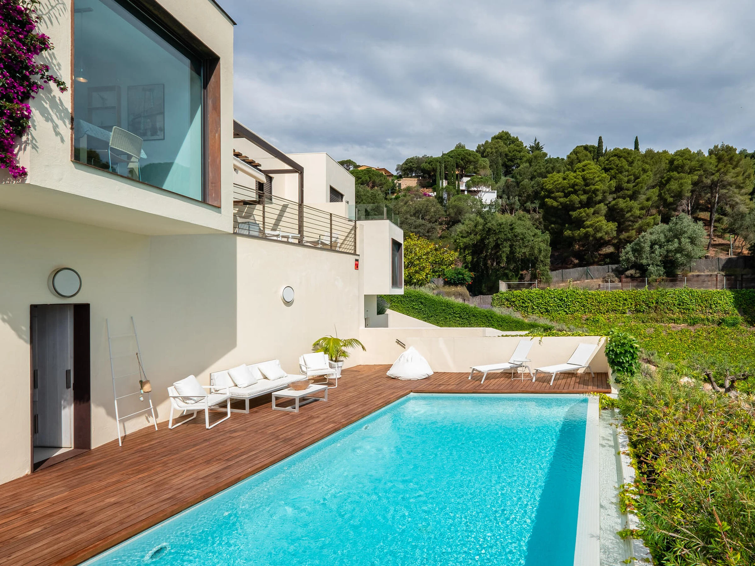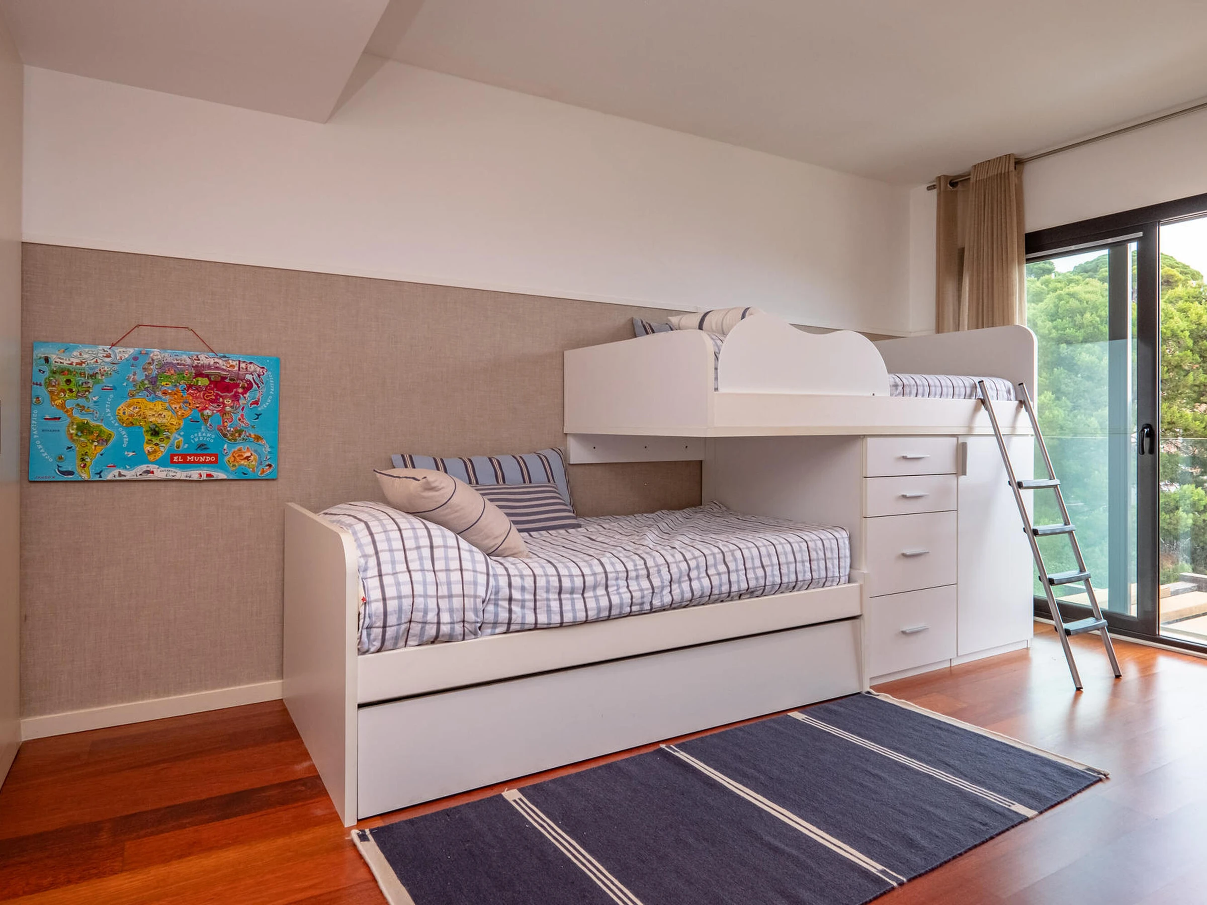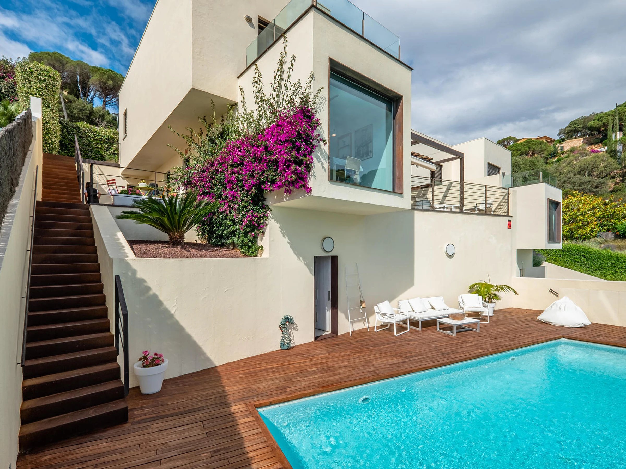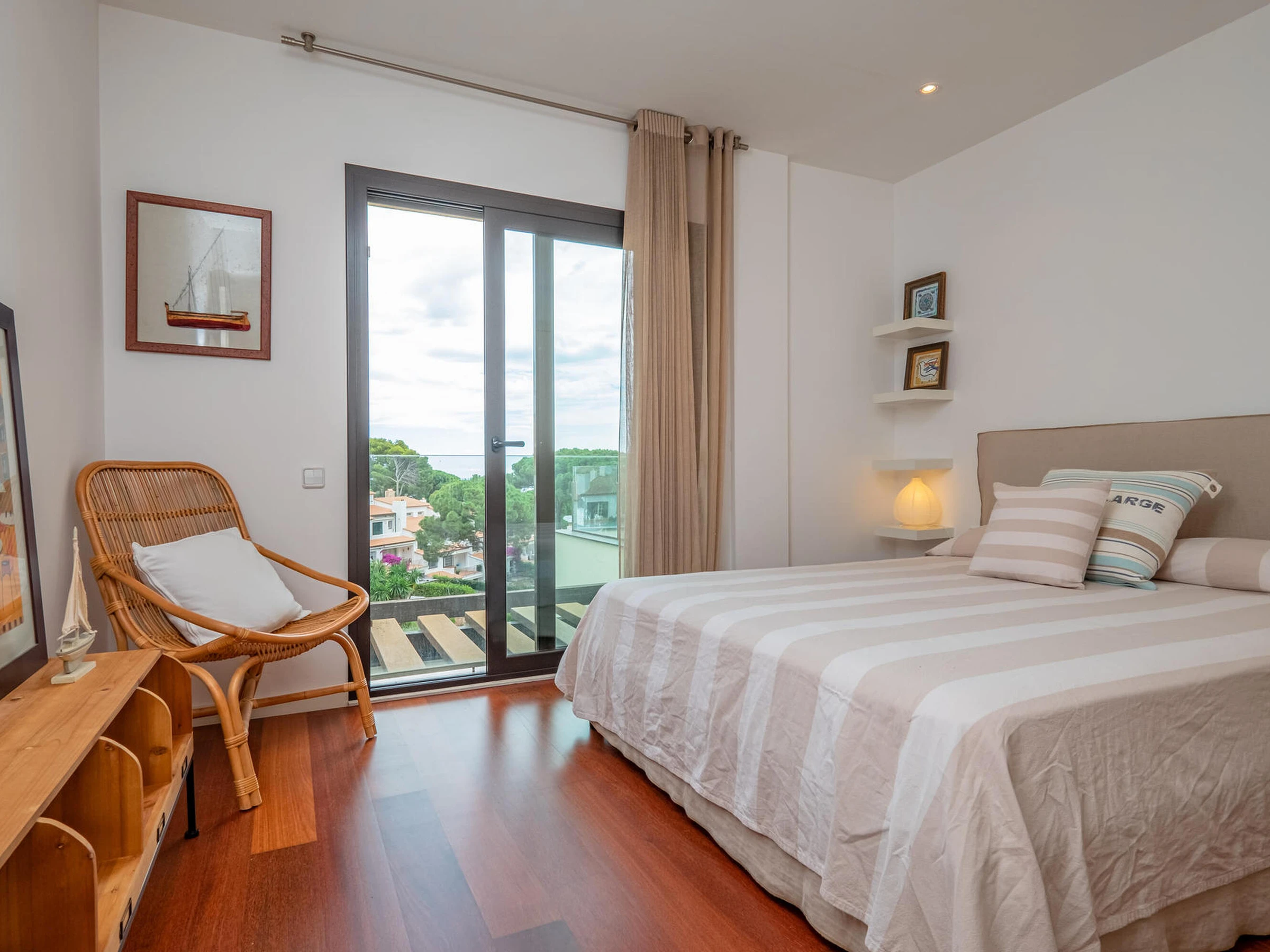 Magnificent semi-detached villa with private pool and beautiful views of Sa Riera, Costa Brava. It has a surface area of 209 m² and a capacity for 11 people, with several terraces overlooking the sea. Sa Riera beach is located 500 m from the house. It can be reached directly on foot via a private neighborhood path located at the end of the garden. The house is distributed over two floors. On the first floor there are 4 bedrooms: one with two trundle beds and an en-suite bathroom with shower, two double bedrooms, one with a double bed and one with bunk beds, a bathroom with shower, and a master suite with a double bed, bathroom with shower and bathtub, and a dressing room. On the second floor, going down the stairs, there is a large living-dining room with access to the terrace, a fully equipped open-plan kitchen with osmosis system, one double bedroom with bunk beds, a bathroom with shower, and a guest toilet. There is also a terrace with a laundry area. Going down some exterior stairs, you reach the overflowing saltwater pool and the garden. This area also features a chill-out sofa and table, as well as a dressing room equipped with a shower area and a refrigerator. The property offers WIFI and air conditioning throughout the house. Outdoor parking for 2 cars. Groups of young people are not allowed. Bed linen, towels, kitchen cloths, and final cleaning are included. For any questions regarding this property, please do not hesitate to contact us.