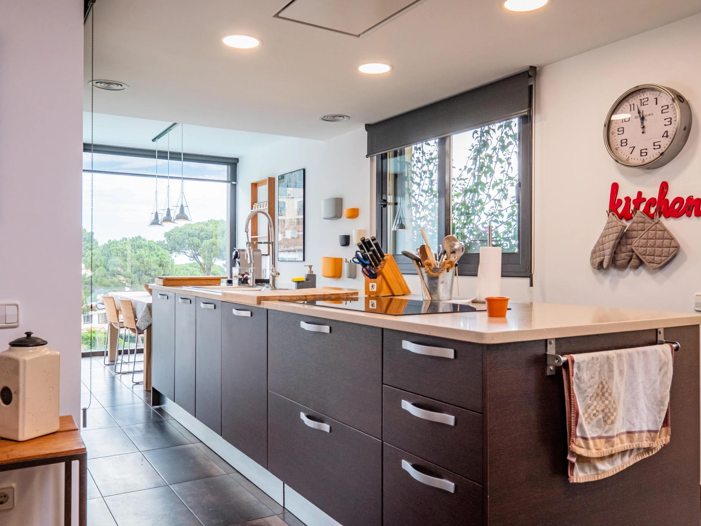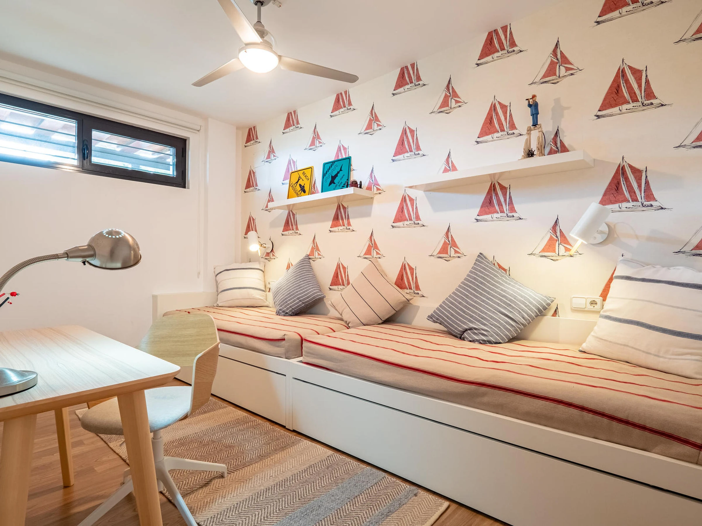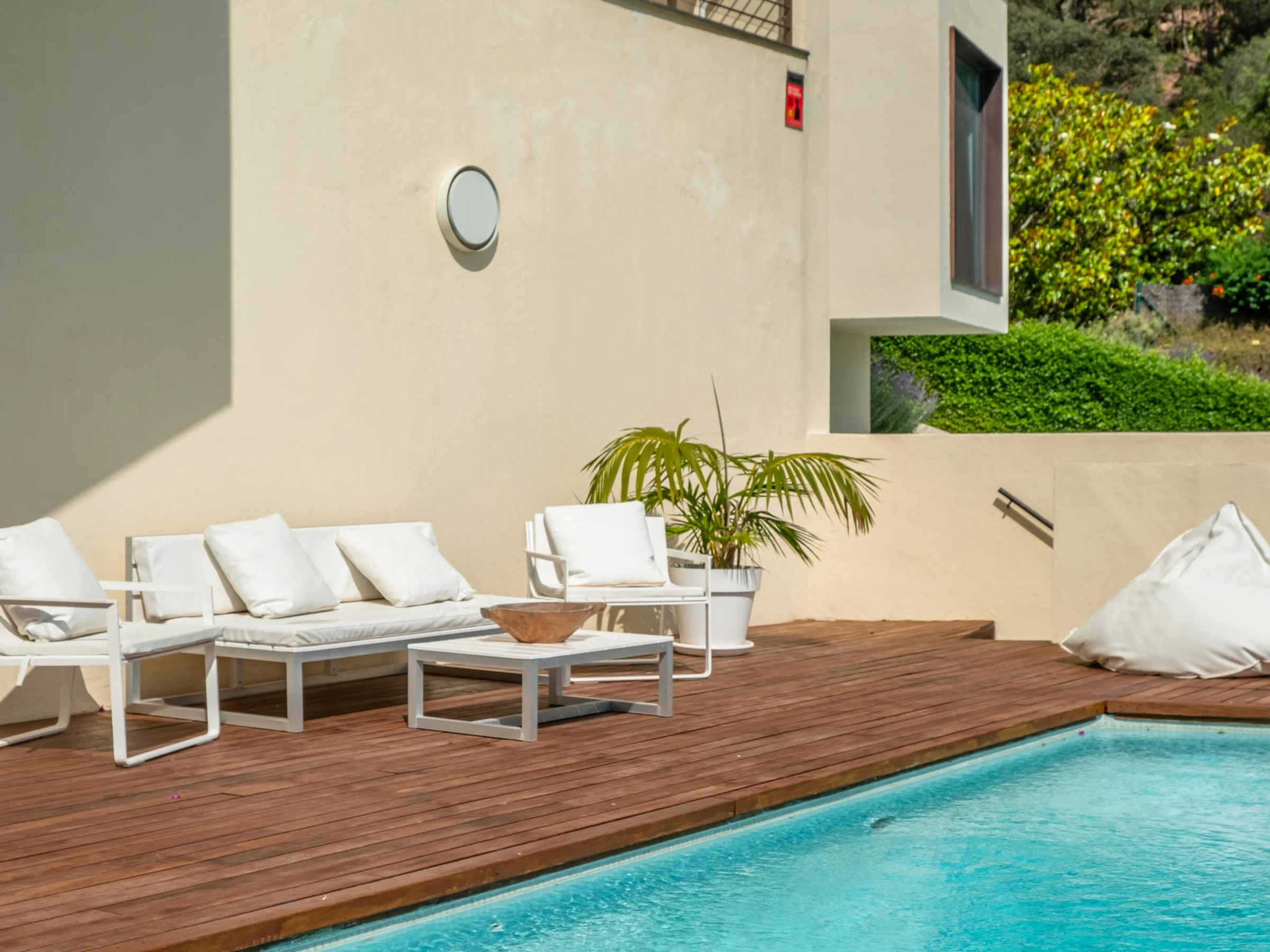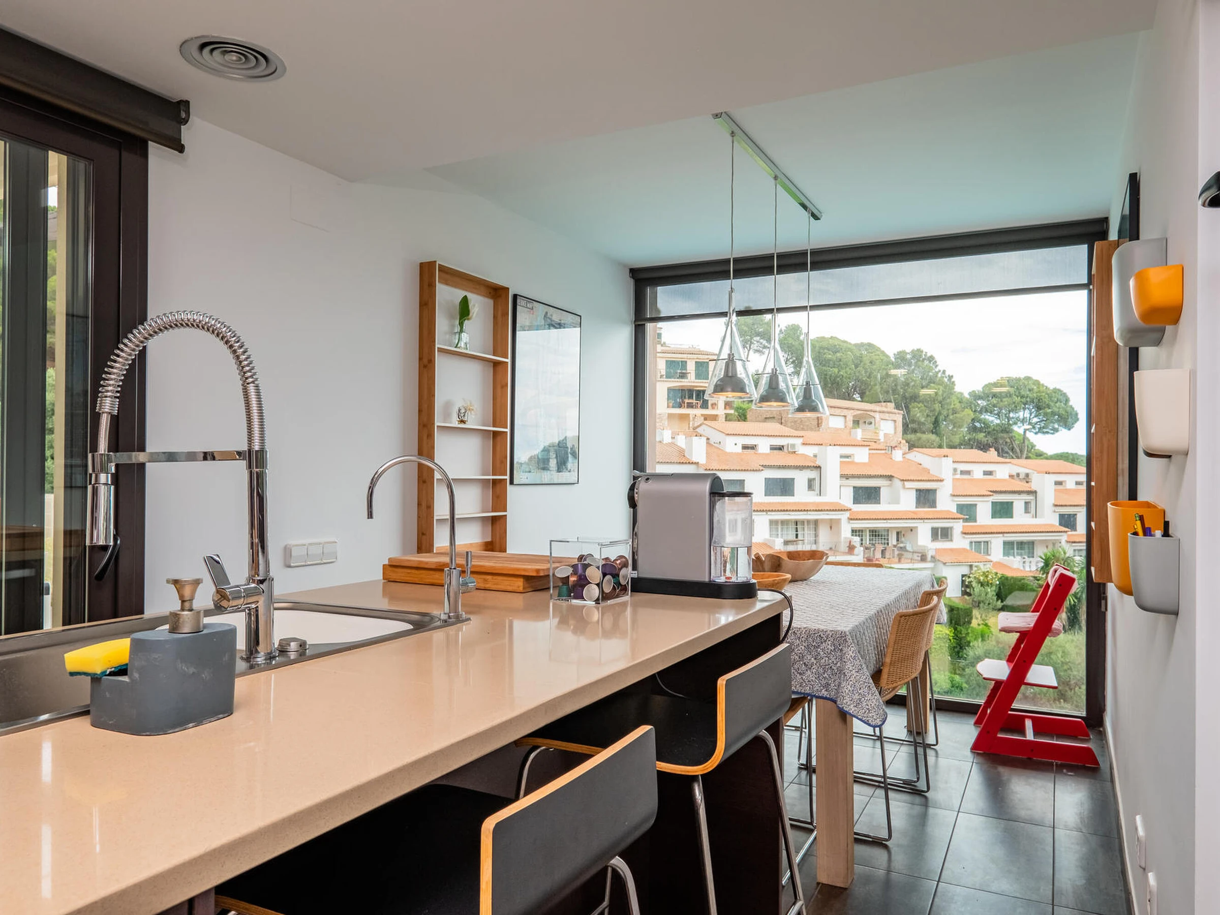 Magnificent semi-detached villa with private pool and beautiful views of Sa Riera, Costa Brava. It has a surface area of 209 m² and a capacity for 11 people, with several terraces overlooking the sea. Sa Riera beach is located 500 m from the house. It can be reached directly on foot via a private neighborhood path located at the end of the garden. The house is distributed over two floors. On the first floor there are 4 bedrooms: one with two trundle beds and an en-suite bathroom with shower, two double bedrooms, one with a double bed and one with bunk beds, a bathroom with shower, and a master suite with a double bed, bathroom with shower and bathtub, and a dressing room. On the second floor, going down the stairs, there is a large living-dining room with access to the terrace, a fully equipped open-plan kitchen with osmosis system, one double bedroom with bunk beds, a bathroom with shower, and a guest toilet. There is also a terrace with a laundry area. Going down some exterior stairs, you reach the overflowing saltwater pool and the garden. This area also features a chill-out sofa and table, as well as a dressing room equipped with a shower area and a refrigerator. The property offers WIFI and air conditioning throughout the house. Outdoor parking for 2 cars. Groups of young people are not allowed. Bed linen, towels, kitchen cloths, and final cleaning are included. For any questions regarding this property, please do not hesitate to contact us.