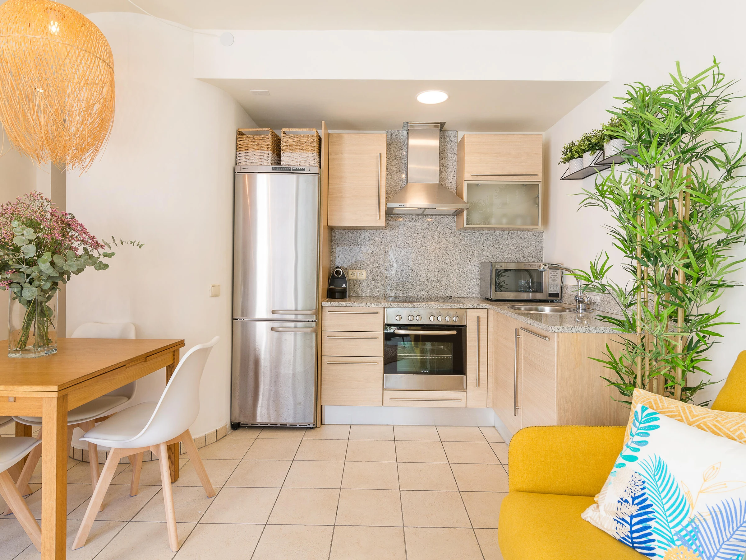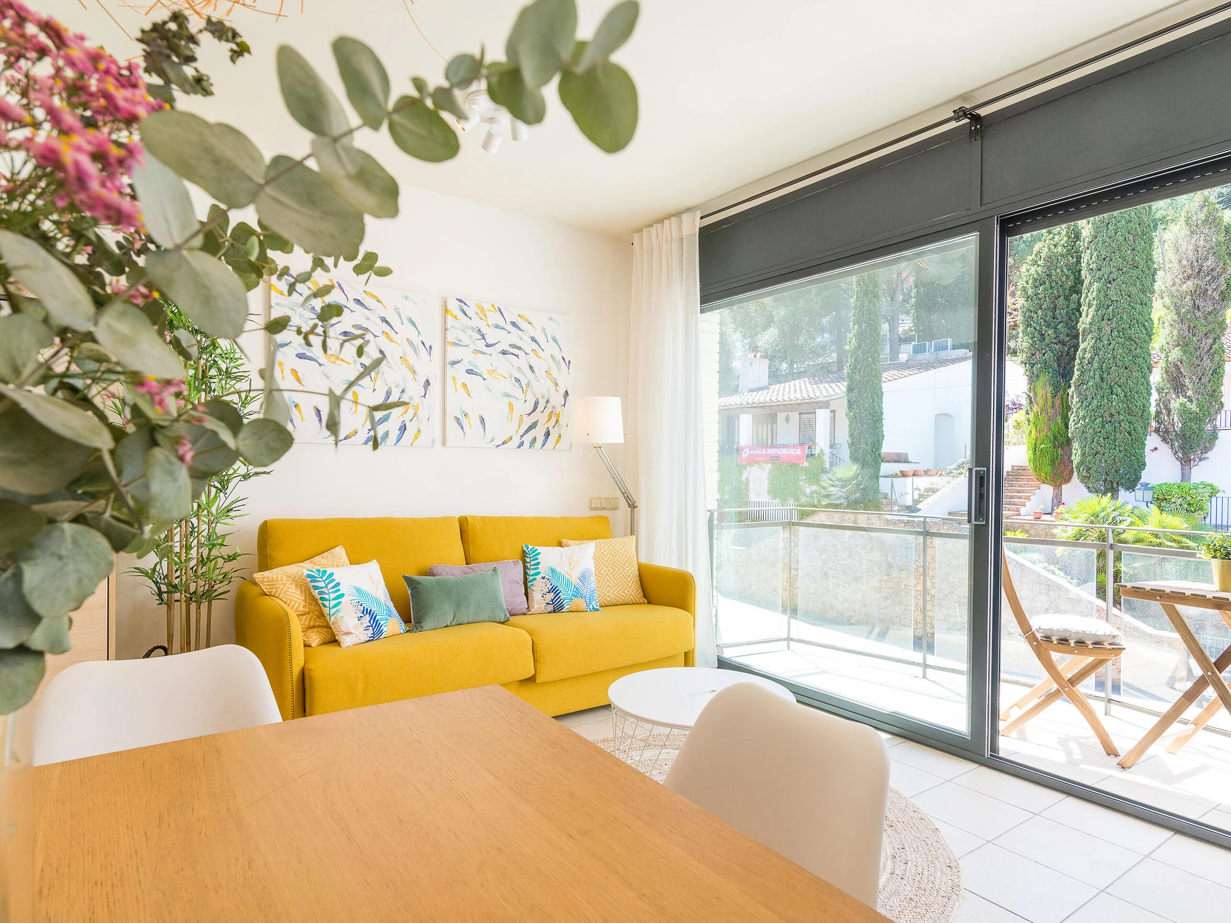 Cozy apartment with excellent decoration, ideal for sea lovers, located in the heart of Tamariu, just a 2-minute walk from the beach. Thanks to its prime location, the property enjoys plenty of natural light throughout the day, creating a warm and welcoming atmosphere in every room. The apartment features a double bedroom with TV, a full bathroom, and an open-plan kitchen connected to the dining area, fully equipped with a dishwasher, oven, and Nespresso machine. The living room includes a large TV and air conditioning (only in the living room), with a sofa that converts into a comfortable double bed, providing additional sleeping space. The small terrace is perfect for enjoying summer evenings in a quiet and charming environment. The building has an elevator and offers the comfort of only one neighbor per floor, ensuring privacy and tranquility.